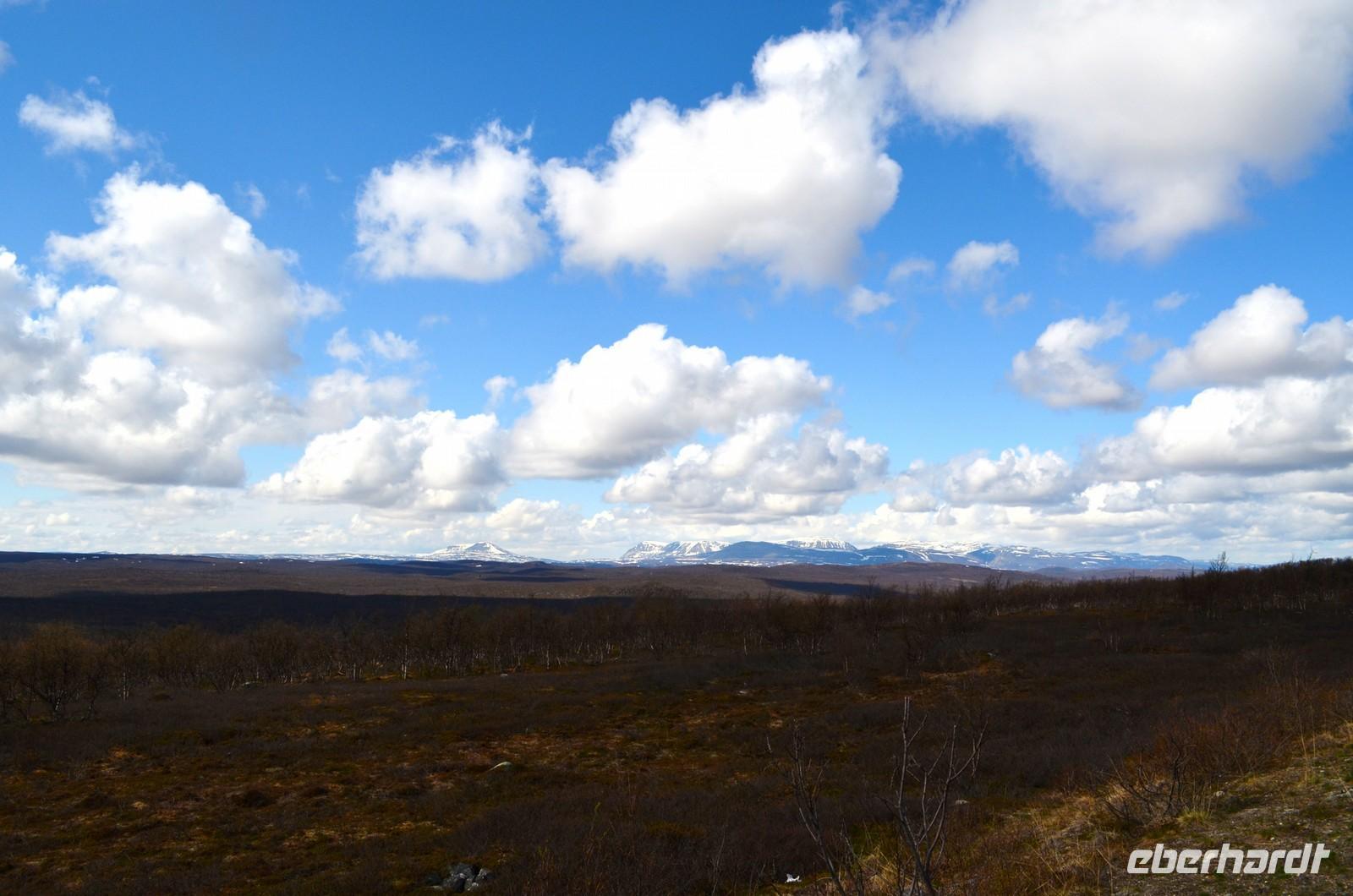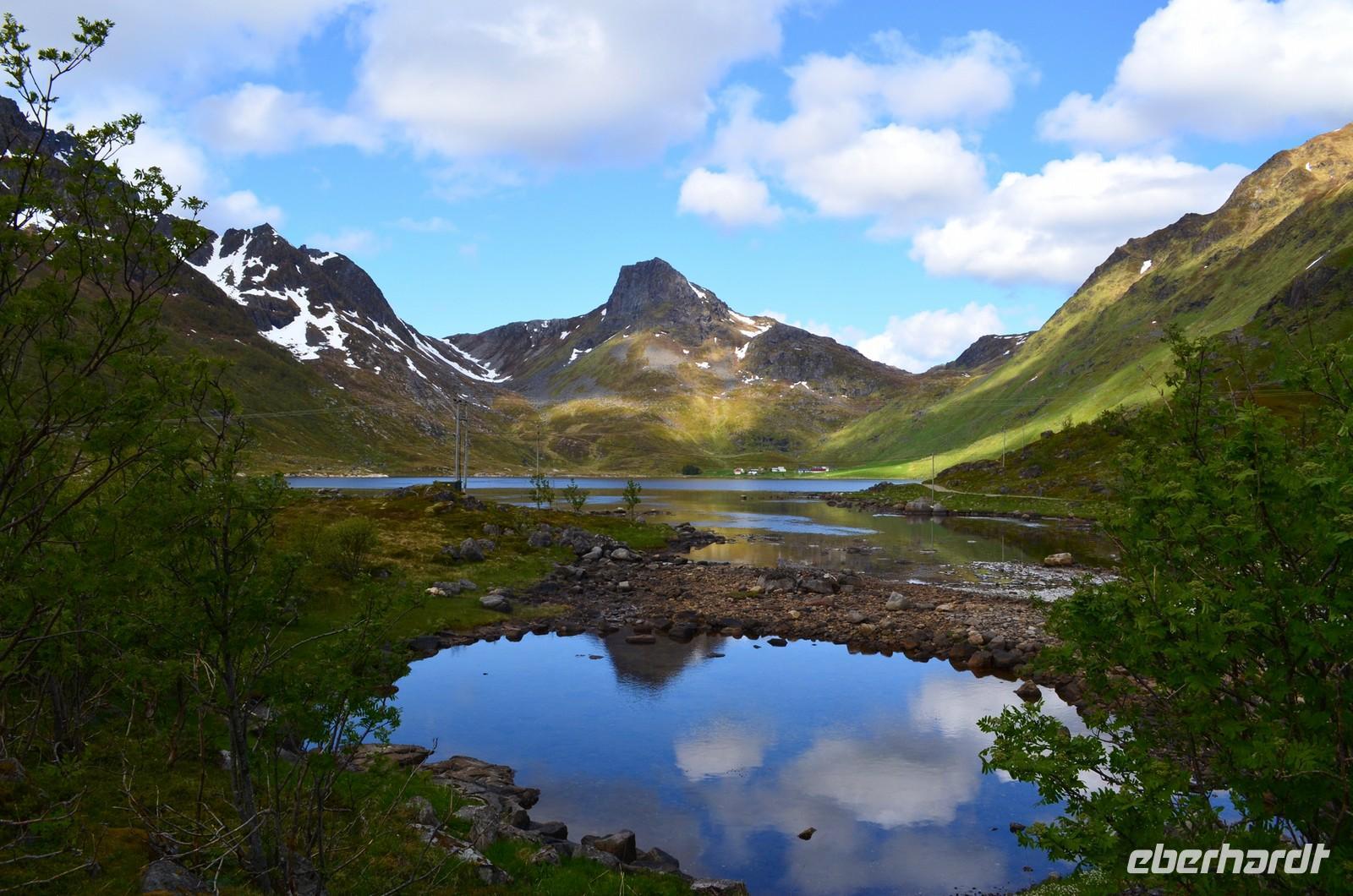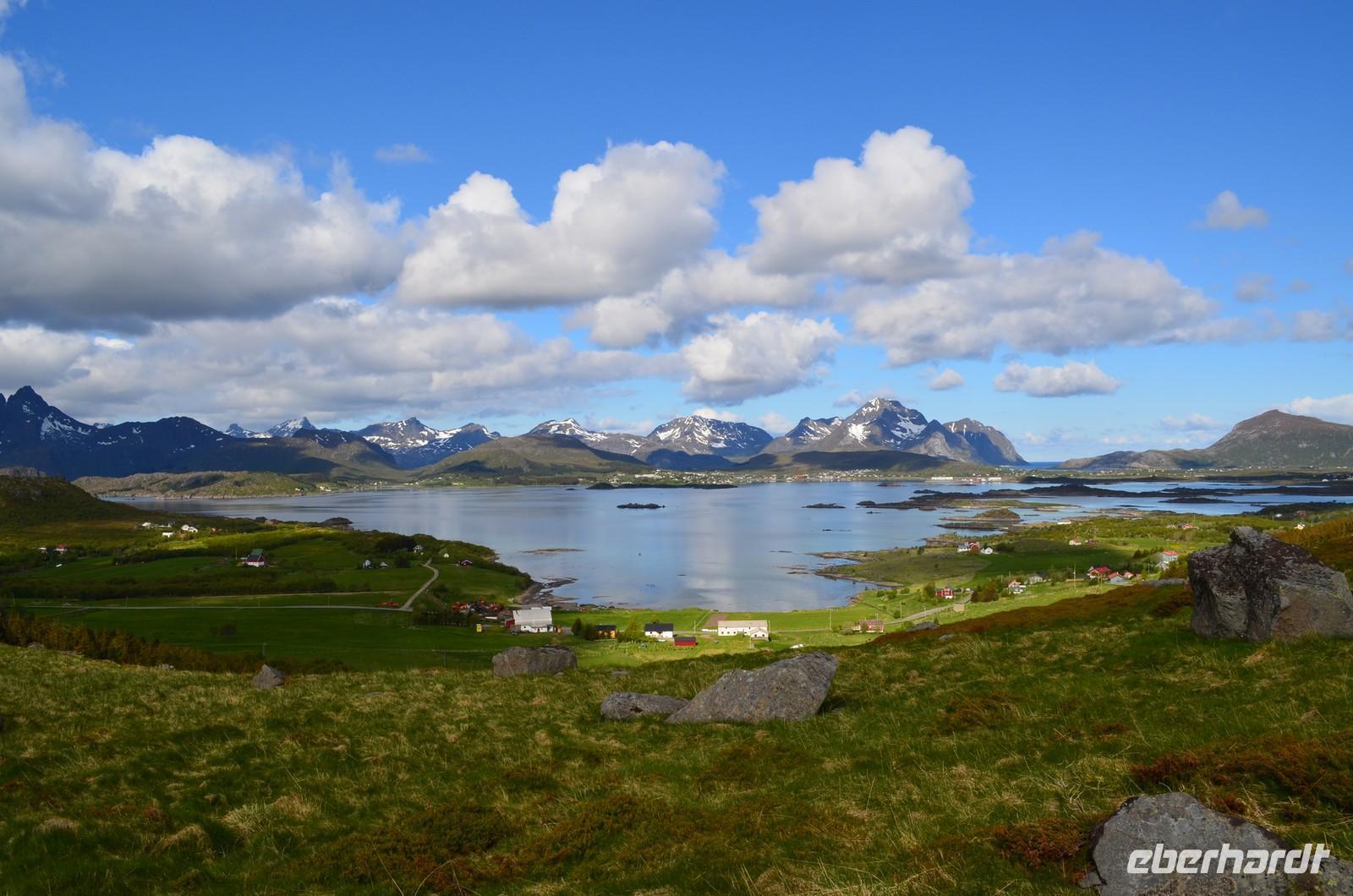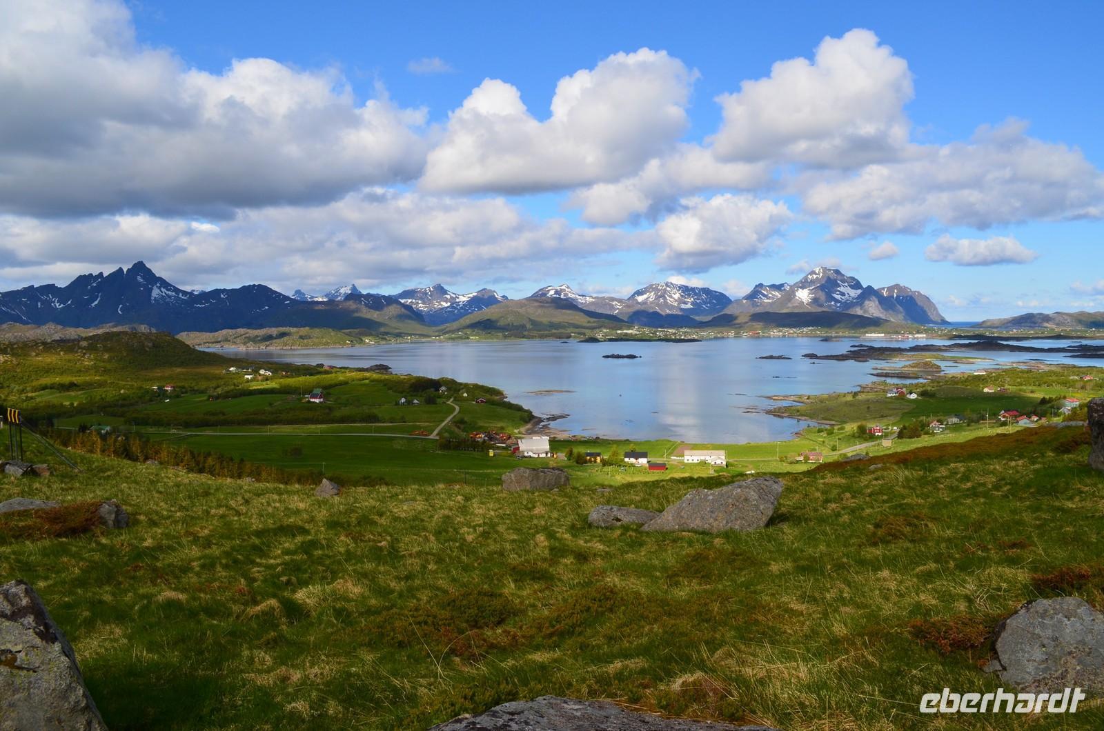 Traumhafte Panoramen um und über dem Ofotfjord, die Täler in den leuchtenden Farben des Frühlings, auf den Pässen die Seen noch eisüberzogen.