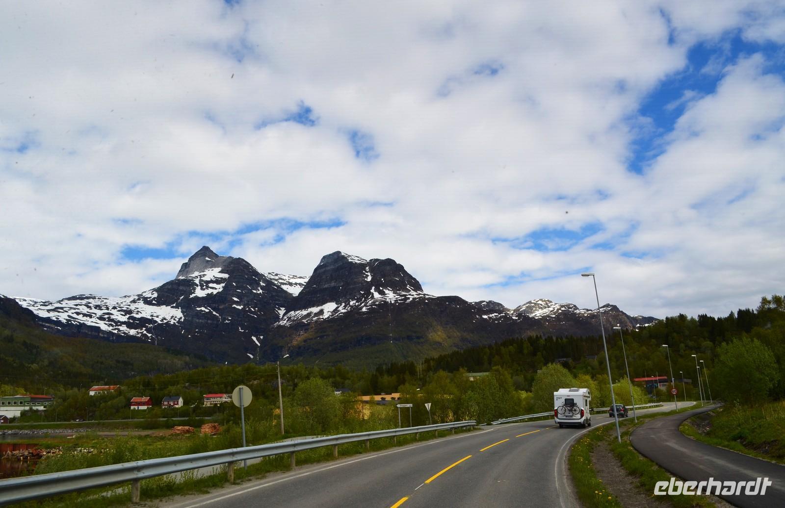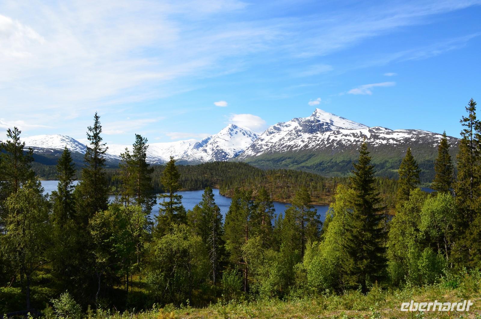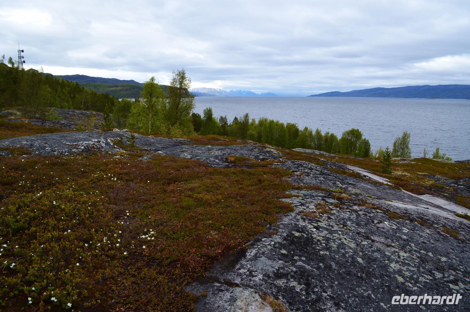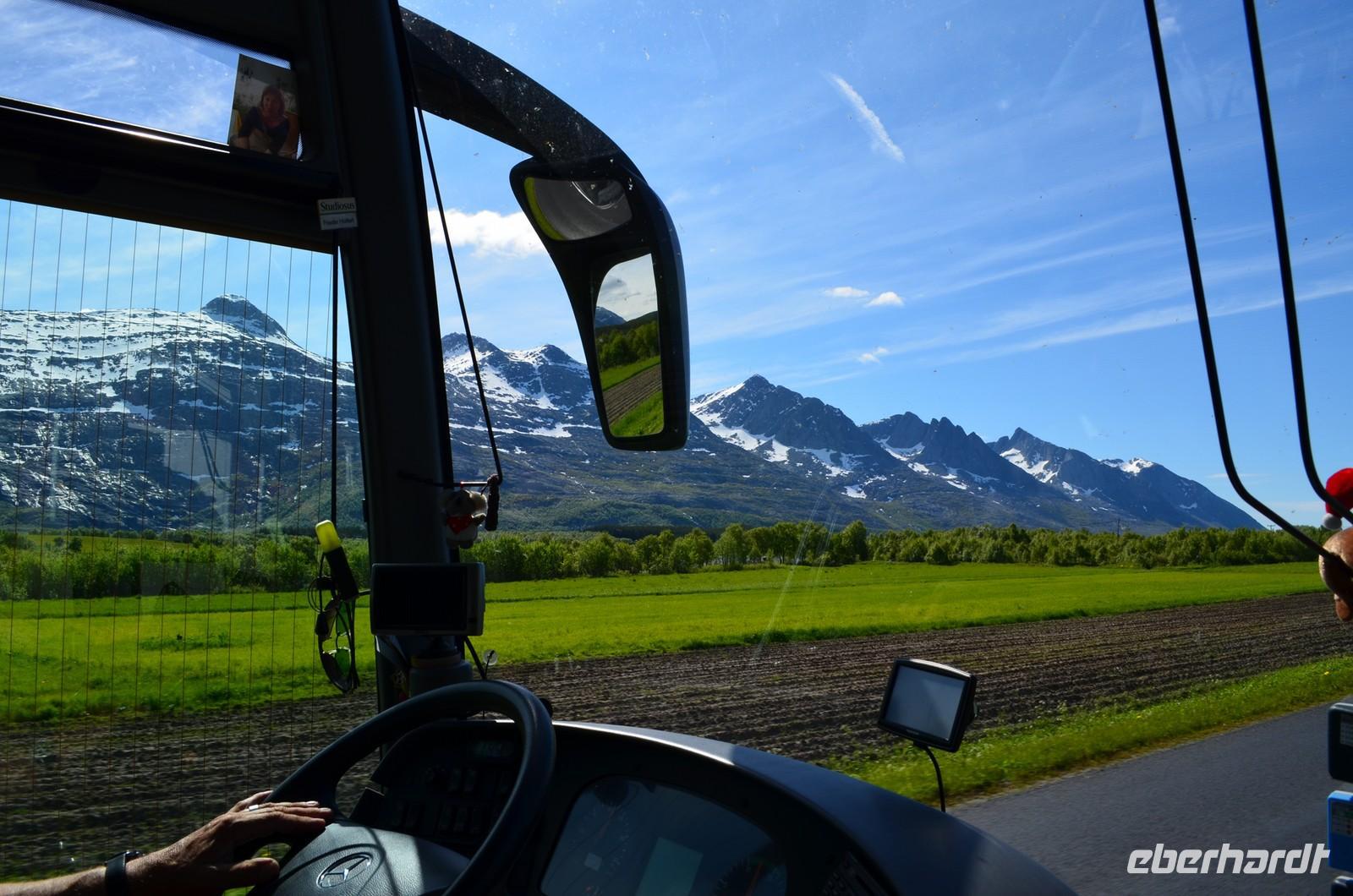 Traumhafte Panoramen um und über dem Ofotfjord, die Täler in den leuchtenden Farben des Frühlings, auf den Pässen die Seen noch eisüberzogen.
