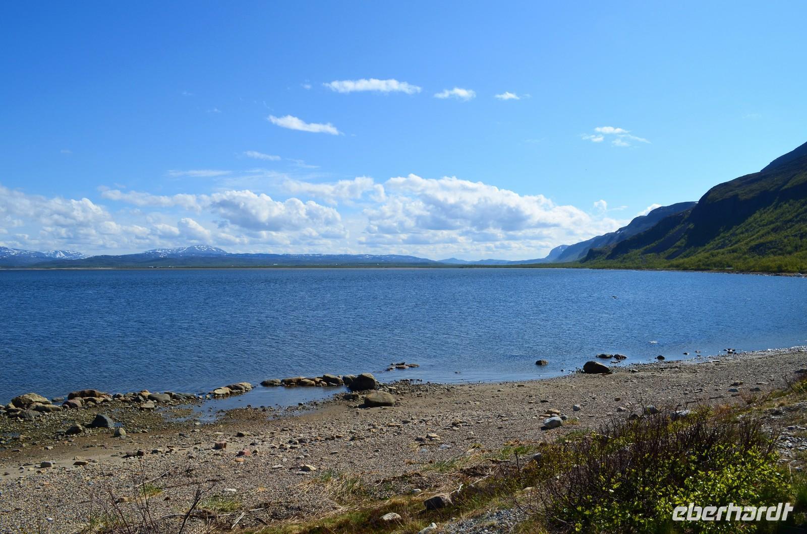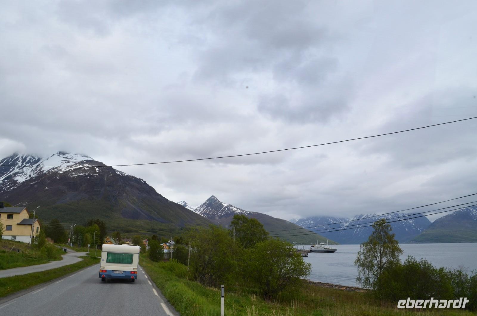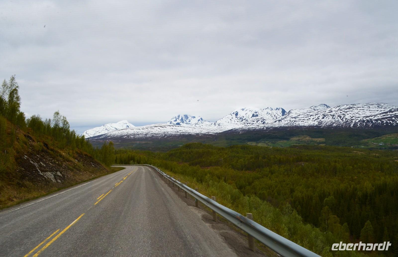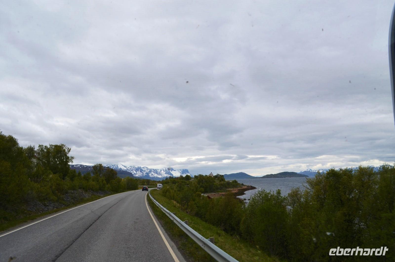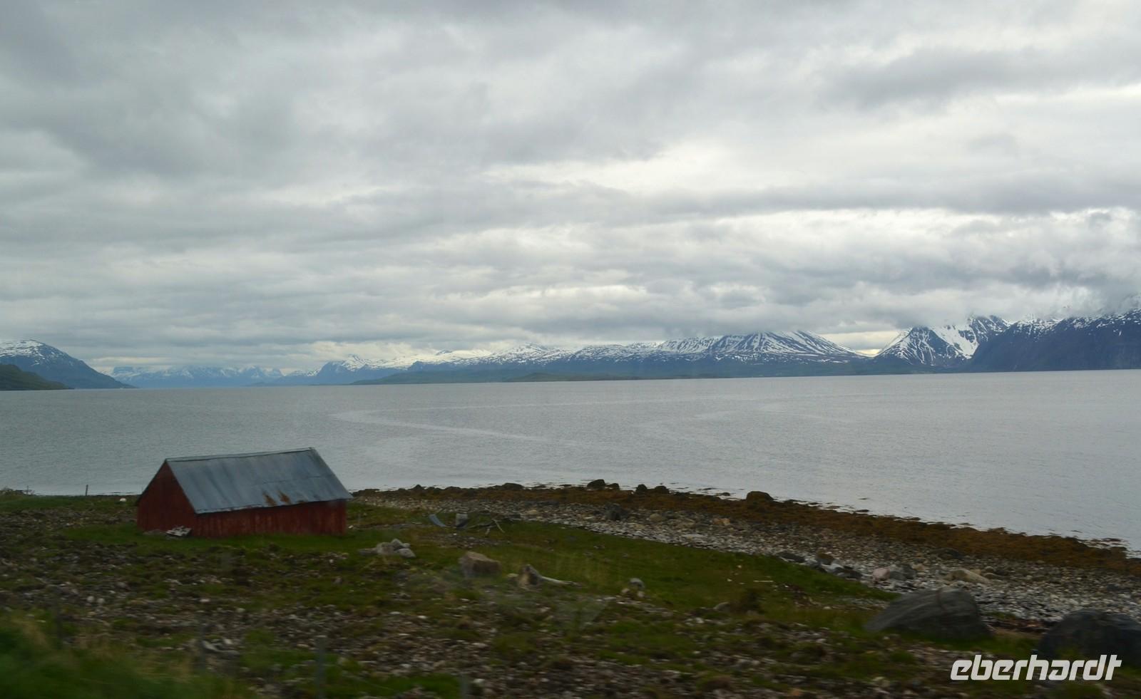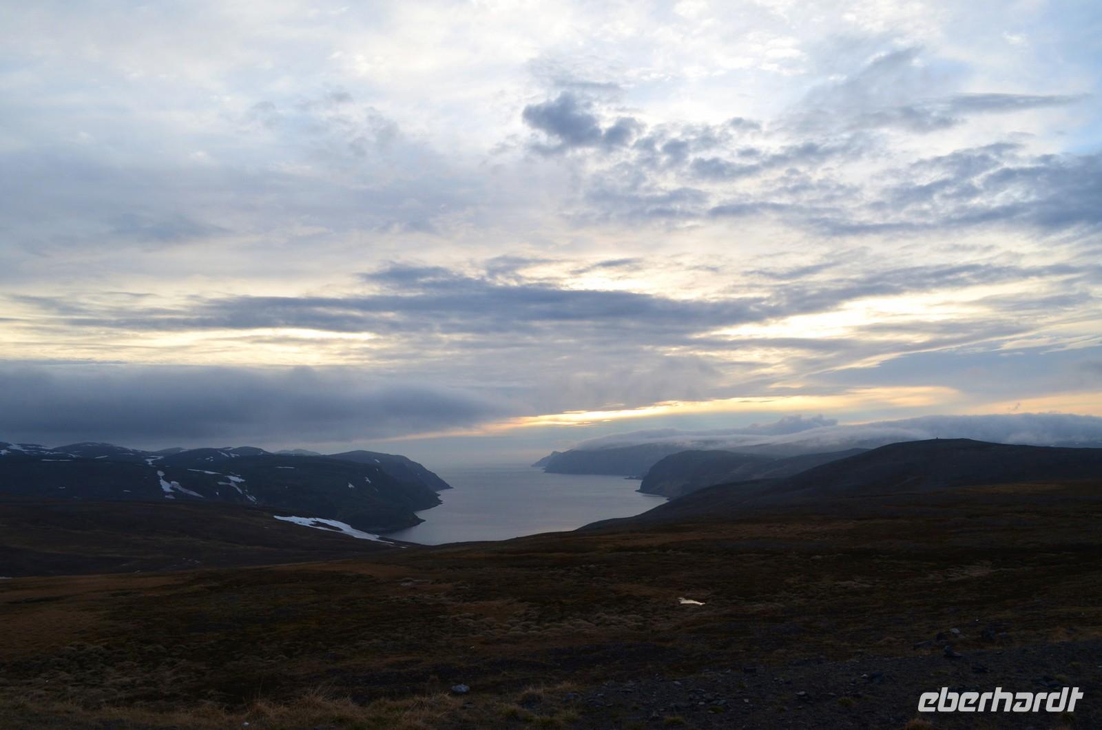 Ganz im Norden angekommen, erreichen wir die ersten hohen Berge - schneebedeckt - und die ersten Fjorde mit dem Porsanger- und dem Olderfjord.