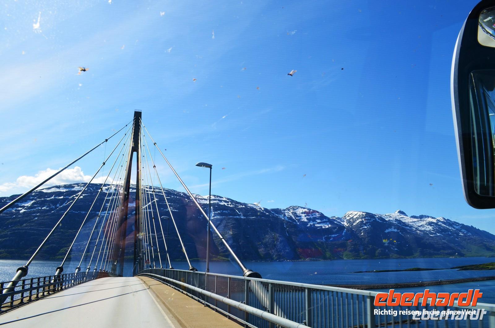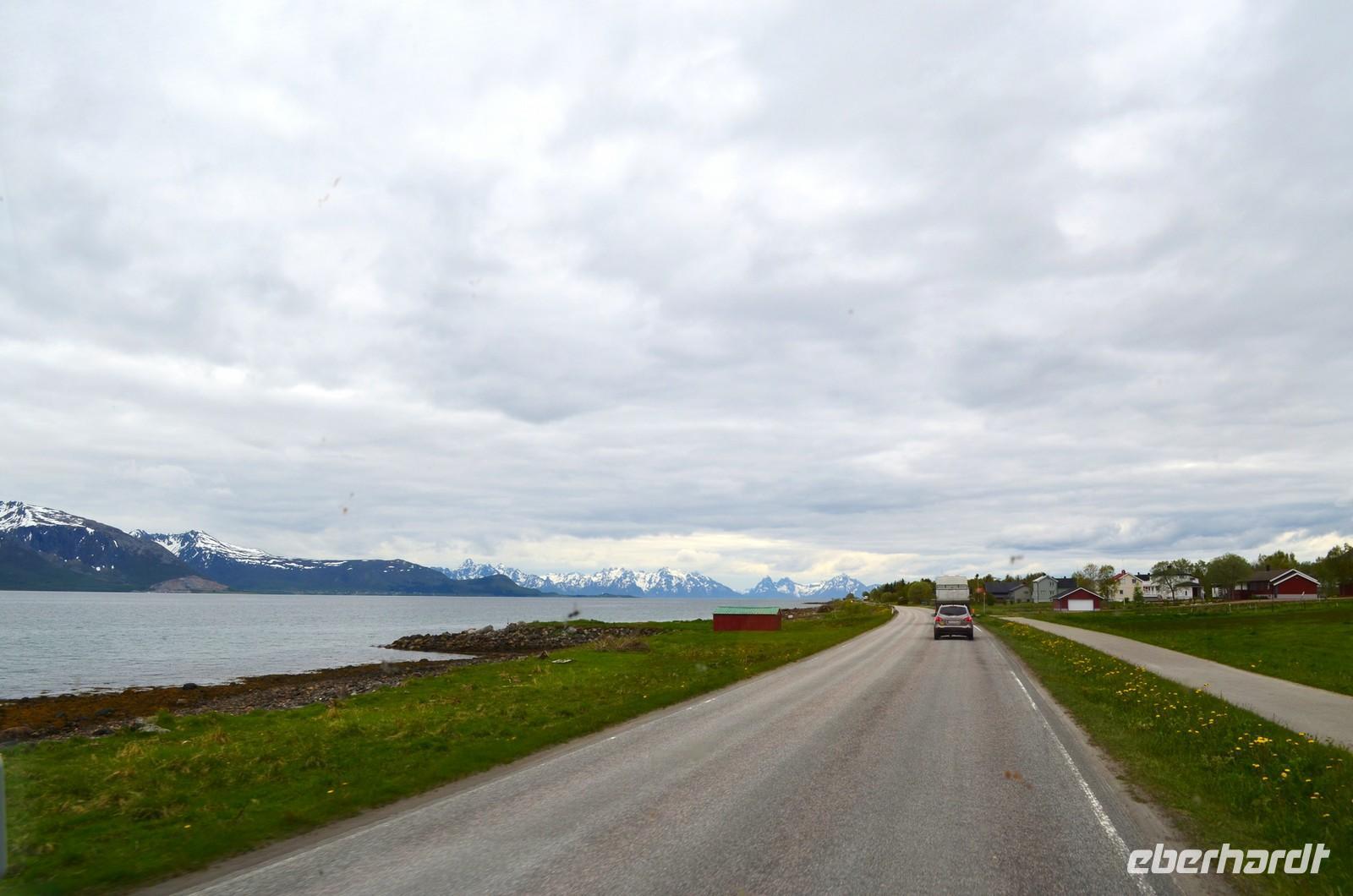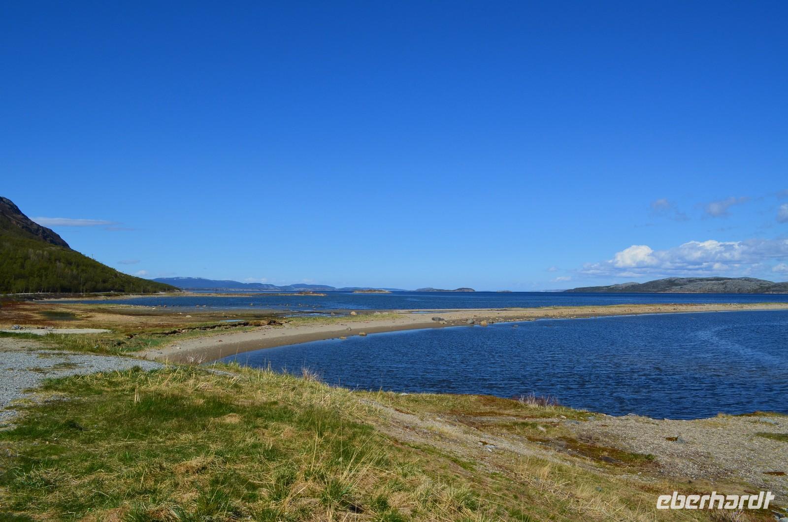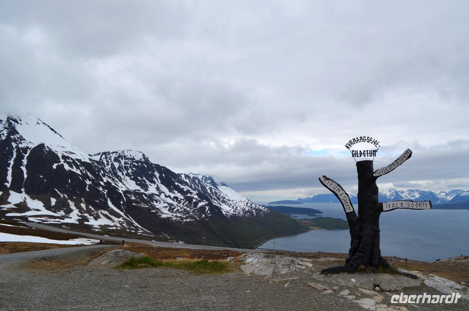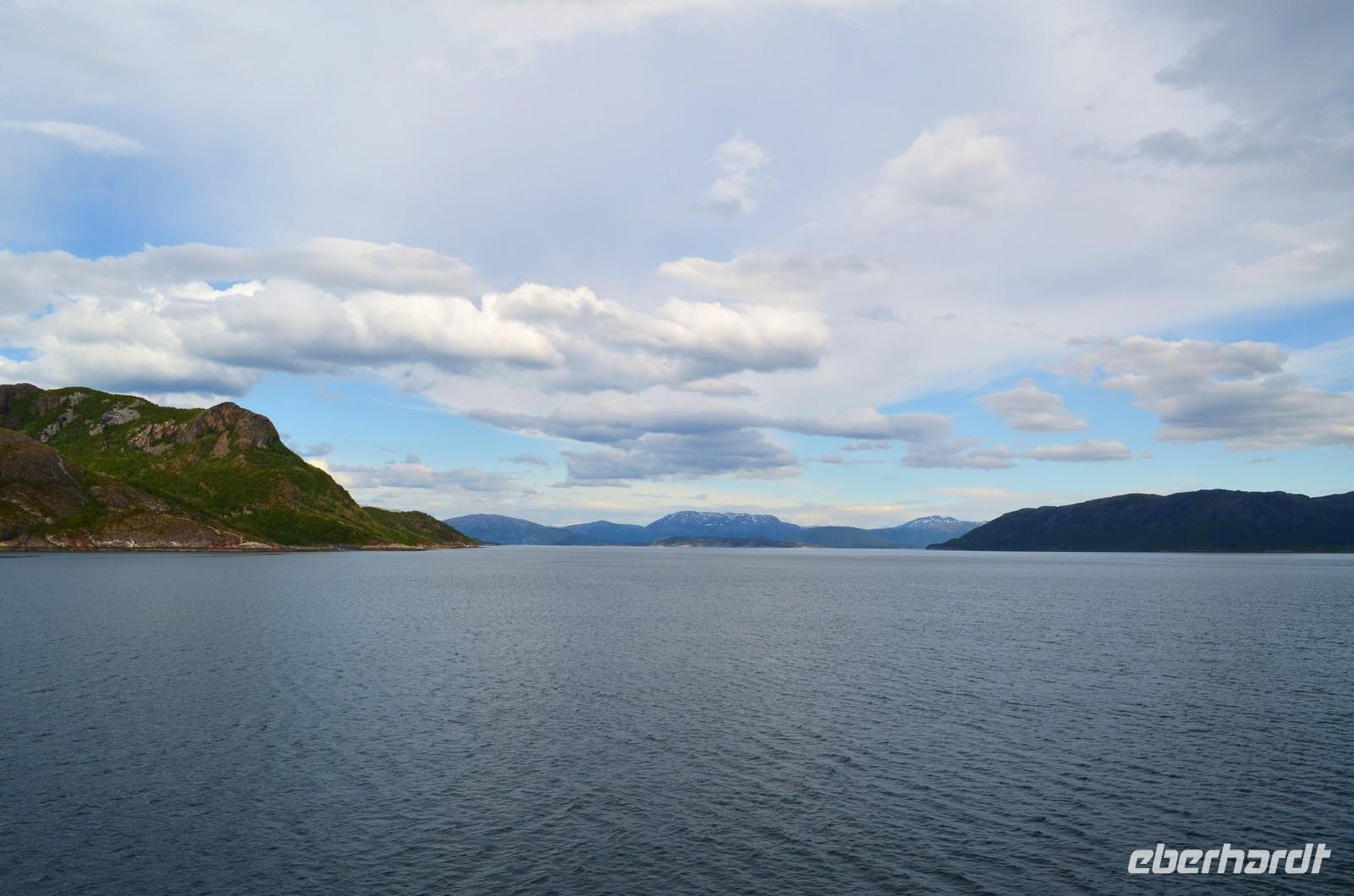 Ganz im Norden angekommen, erreichen wir die ersten hohen Berge - schneebedeckt - und die ersten Fjorde mit dem Porsanger- und dem Olderfjord.