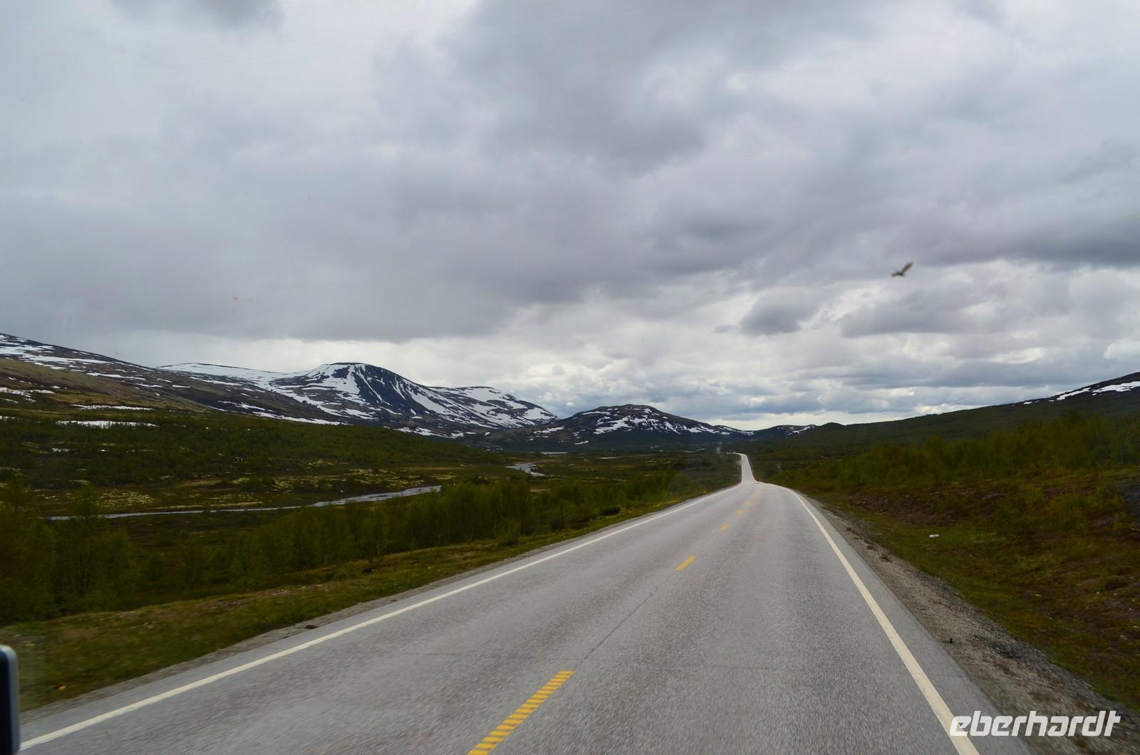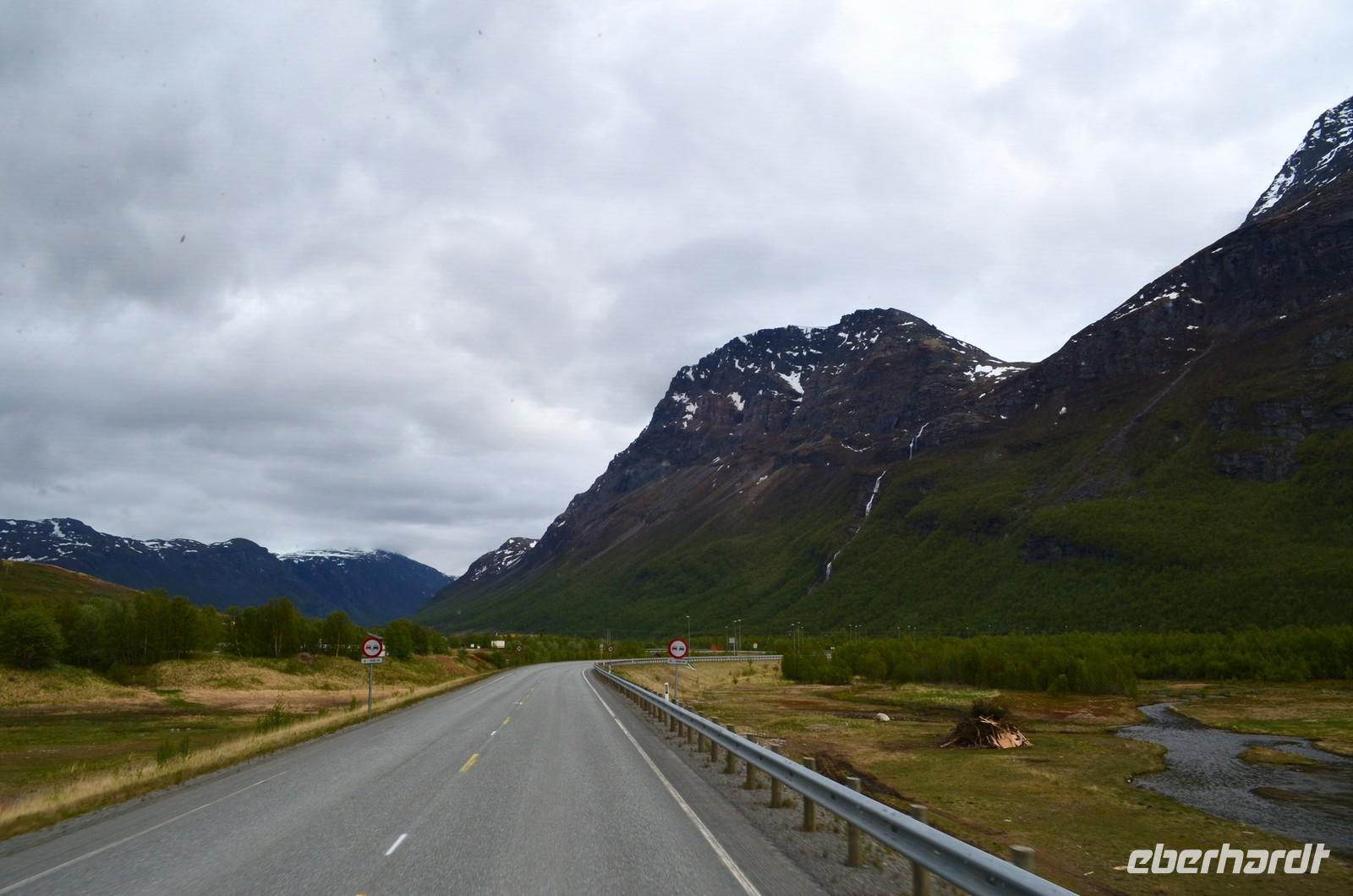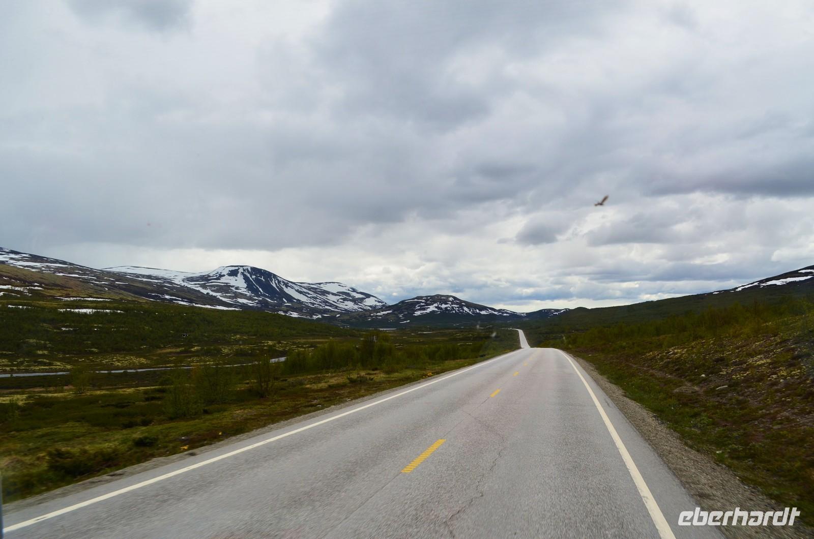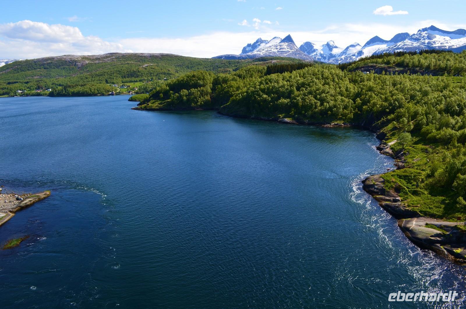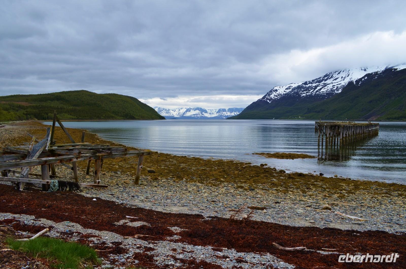 Ganz im Norden angekommen, erreichen wir die ersten hohen Berge - schneebedeckt - und die ersten Fjorde mit dem Porsanger- und dem Olderfjord.
