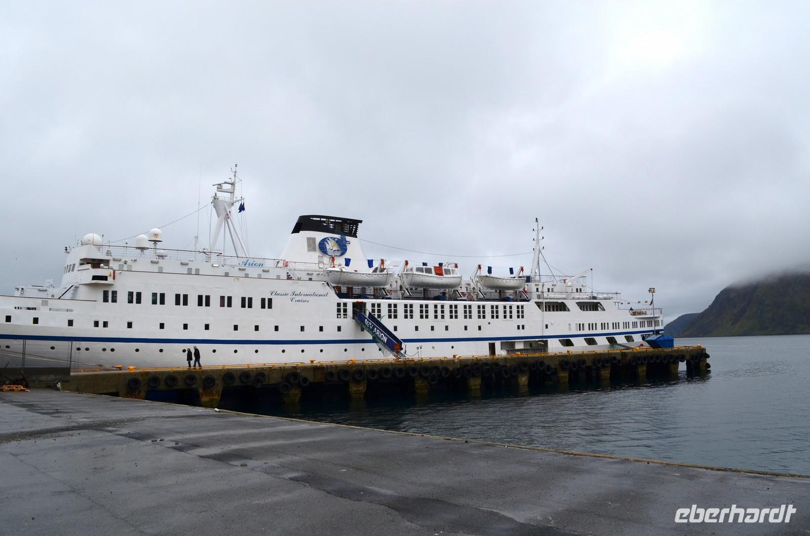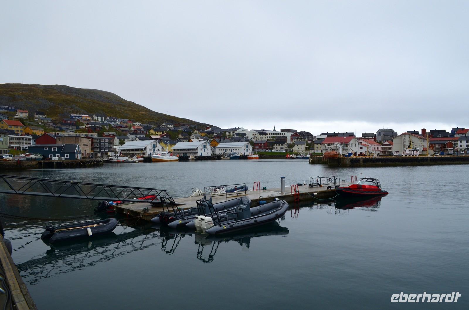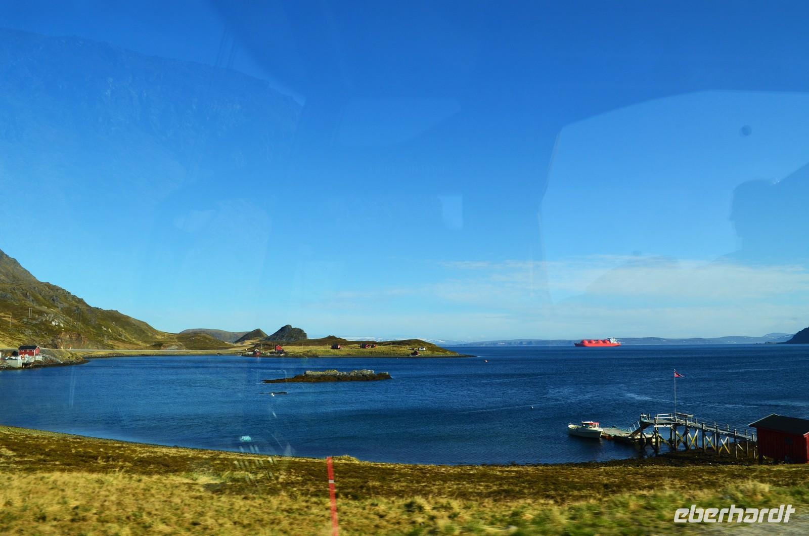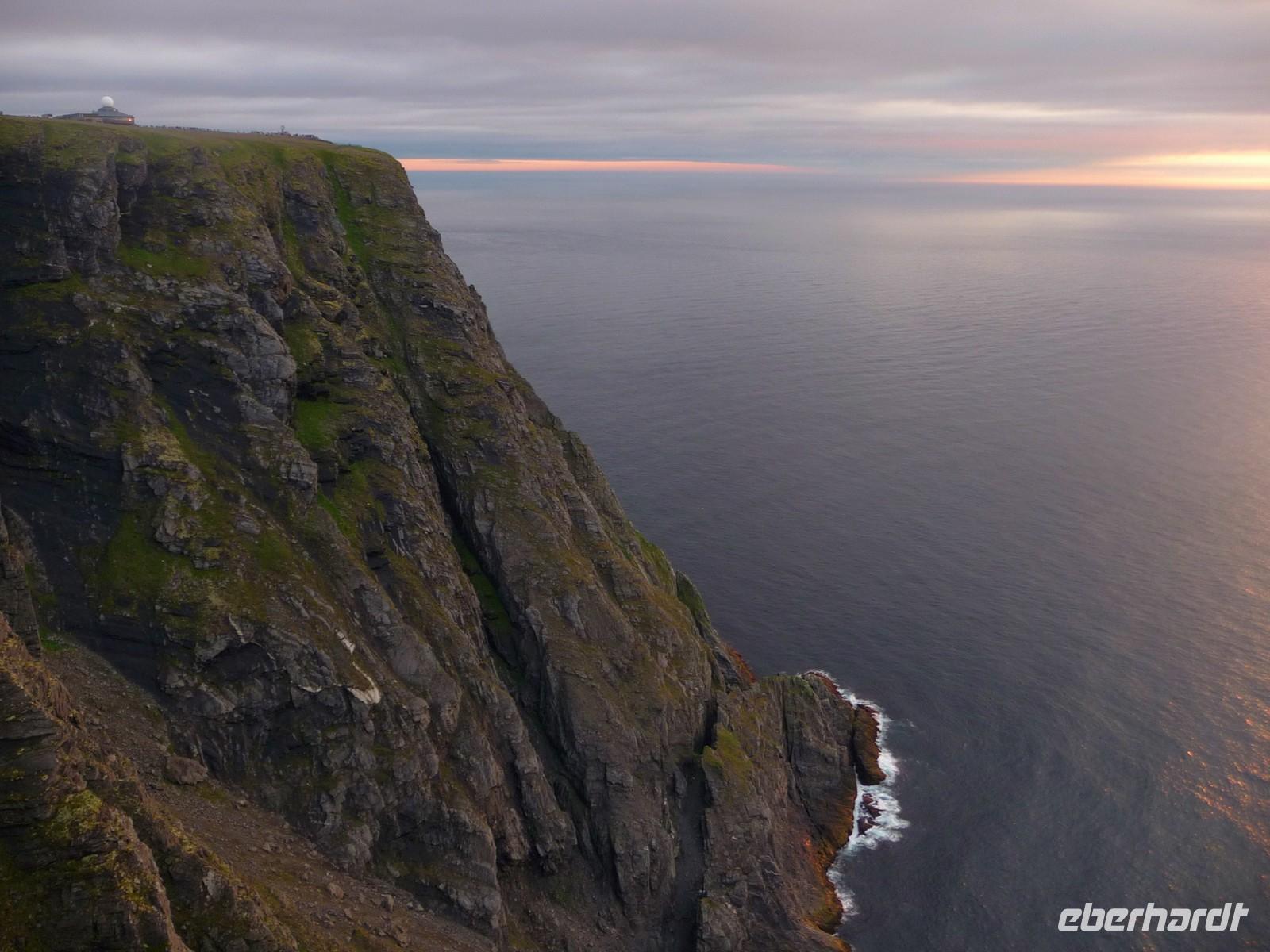 Eigentlich hatten wir alle uns den Aufenthalt hier anders vorgestellt, am nördlichsten Punkt unserer Reise. Eben bei Mitternachtssonne und mit einem wunderschönen Blick vom felsigen Steilufer auf das im Licht leuchtende Nordmeer.
