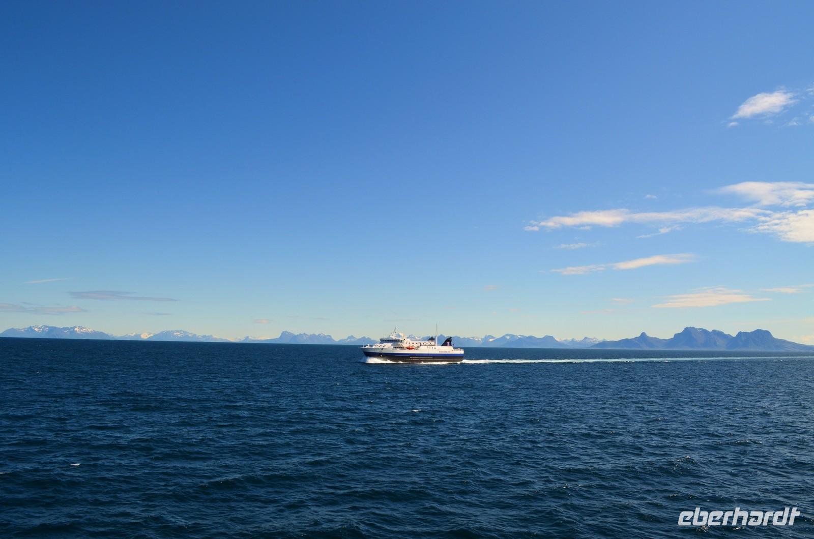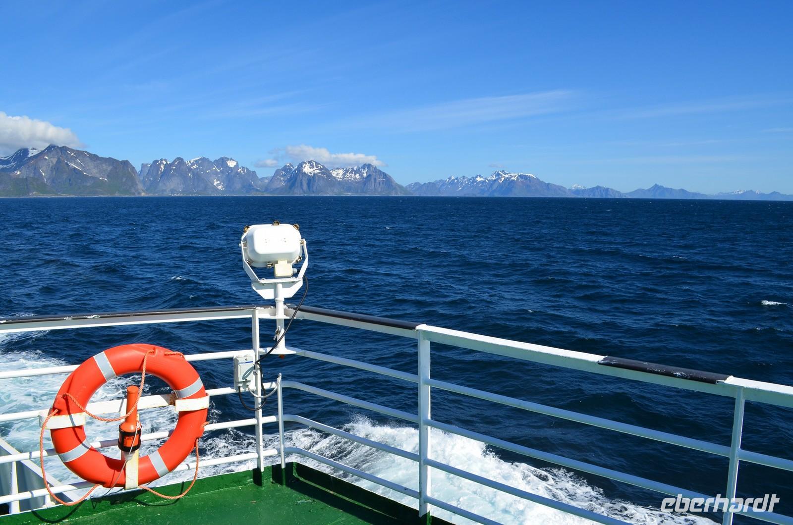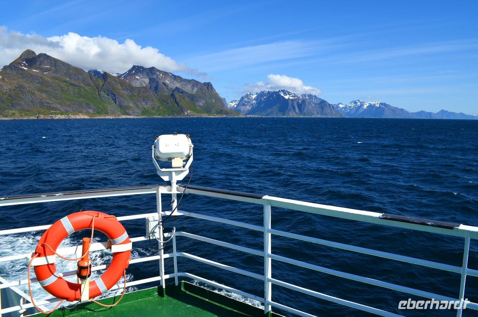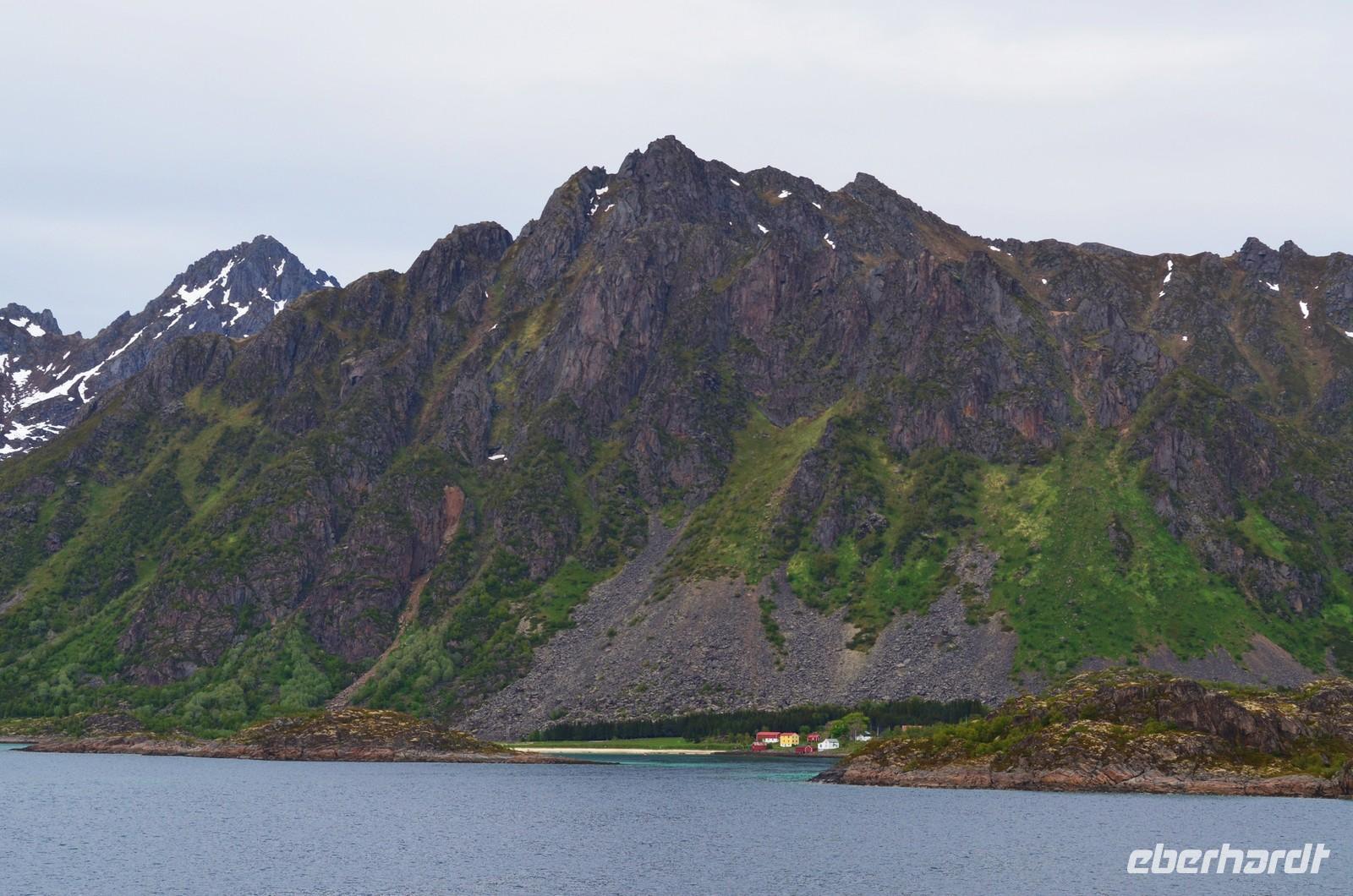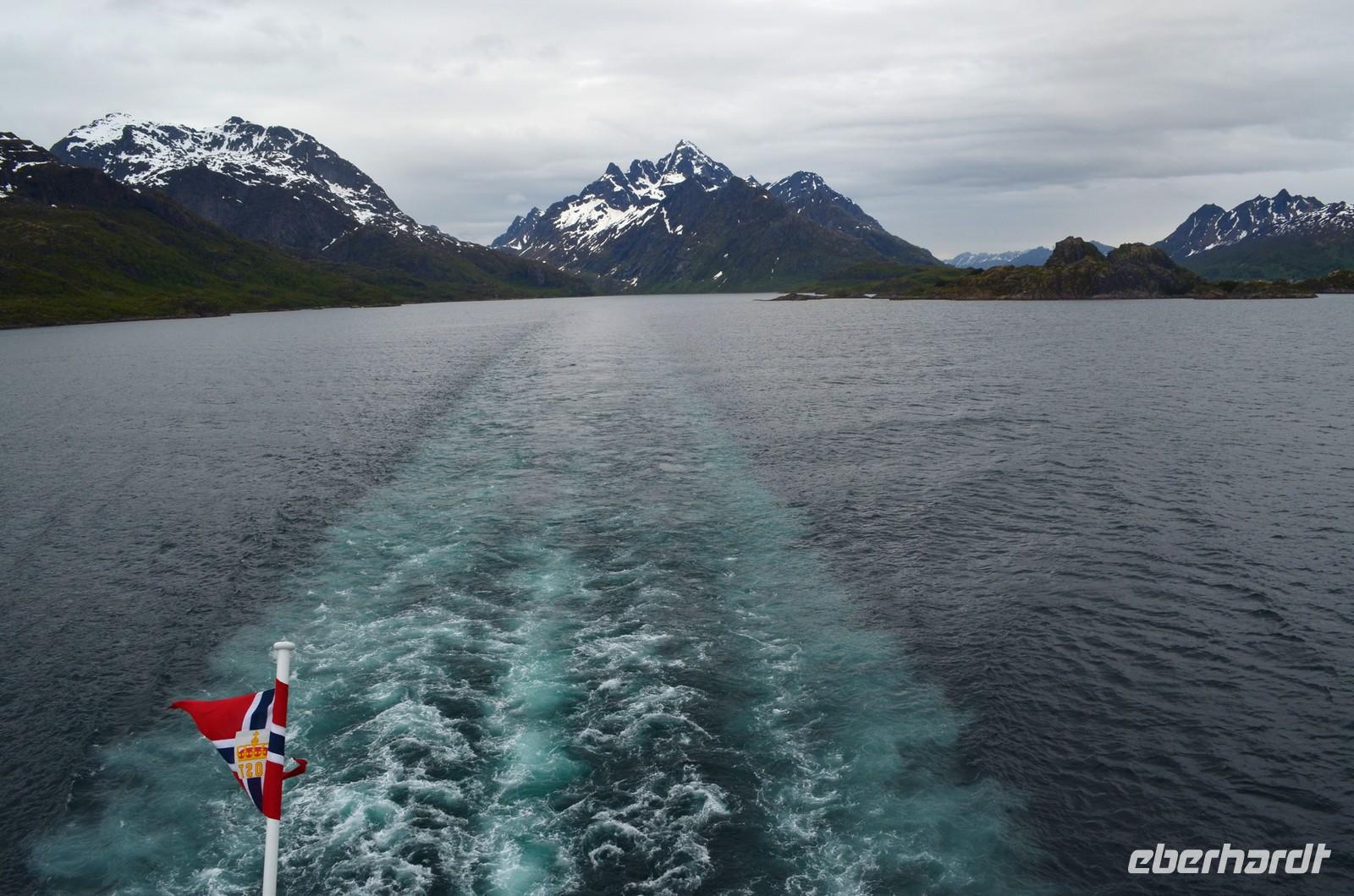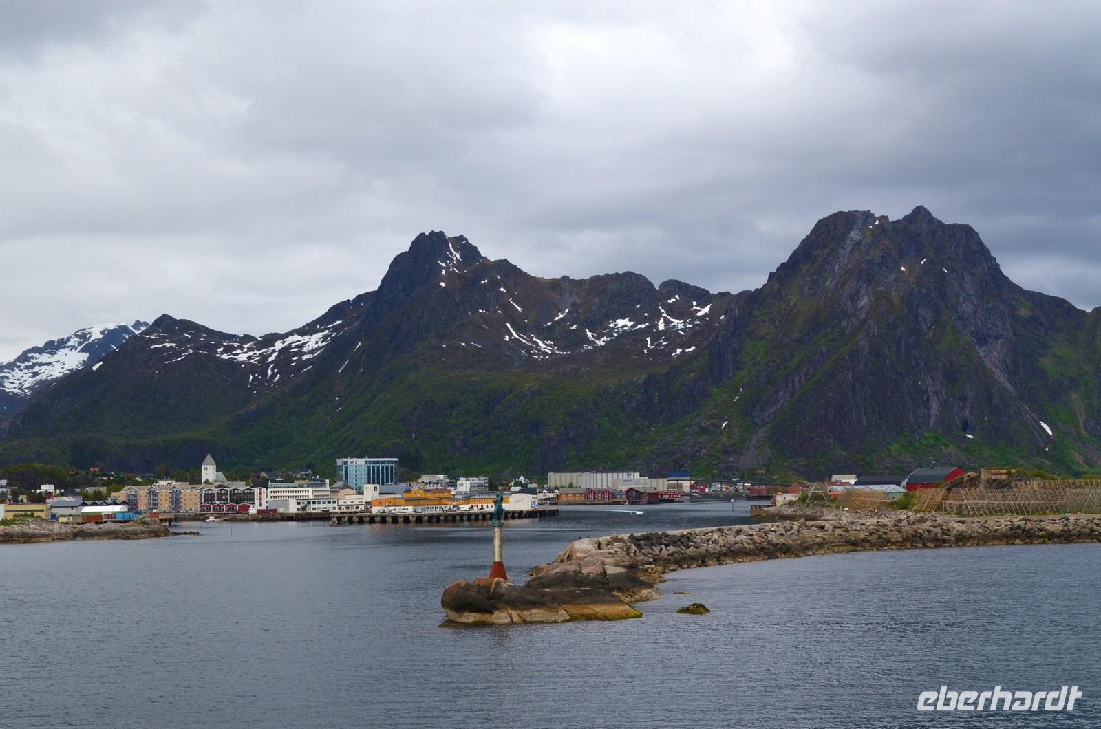 Dann die Vesteralen mit Stockmarknes - das gleiche Bild: Grüne, erblühende Landschaft darüber schneebedeckte Gipfelriesen mit immer bizarreren Formen. Anschließend die Fahrt mit der MS „Richard With“, einem der modernen Schiffe der Hurtigroutenflotte, das uns nach Svolvár auf die Lofoten bringt. Die Fahrt durch den Raftsündet, mit dem Abstecher in den engen Tollfjord und durch die Inseln der Lofoten ist ein besonderes Erlebnis, auch wenn gleichzeitig Wasserflugzeuge den Fjord besuchen.