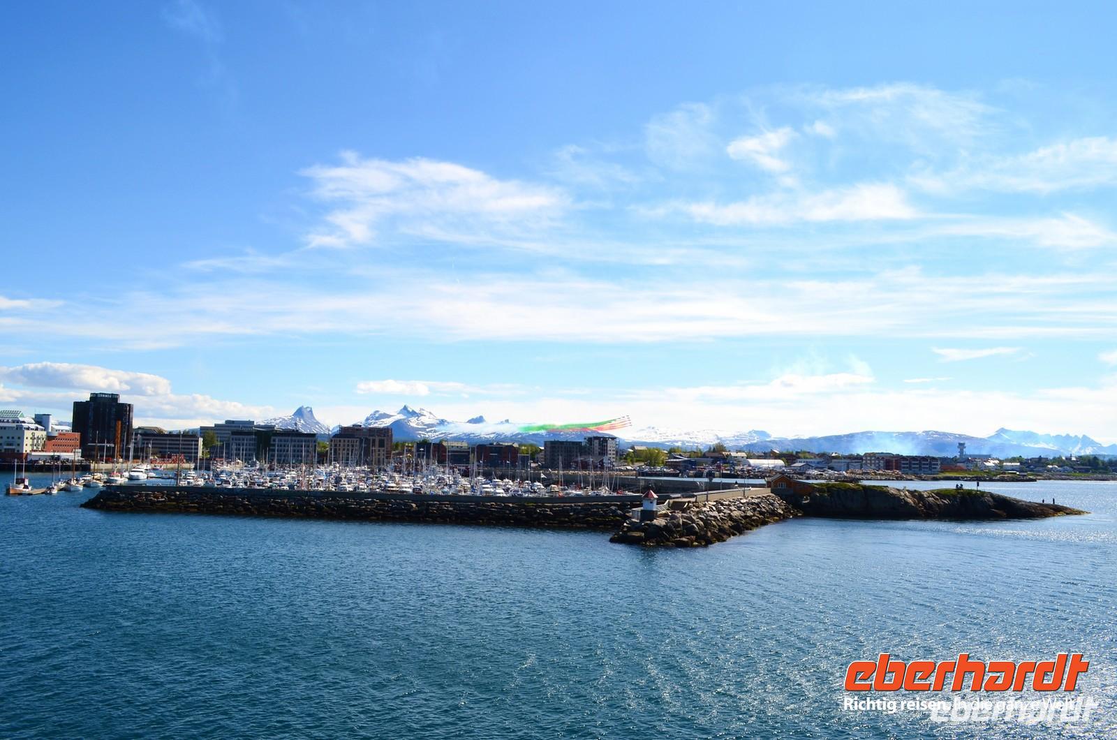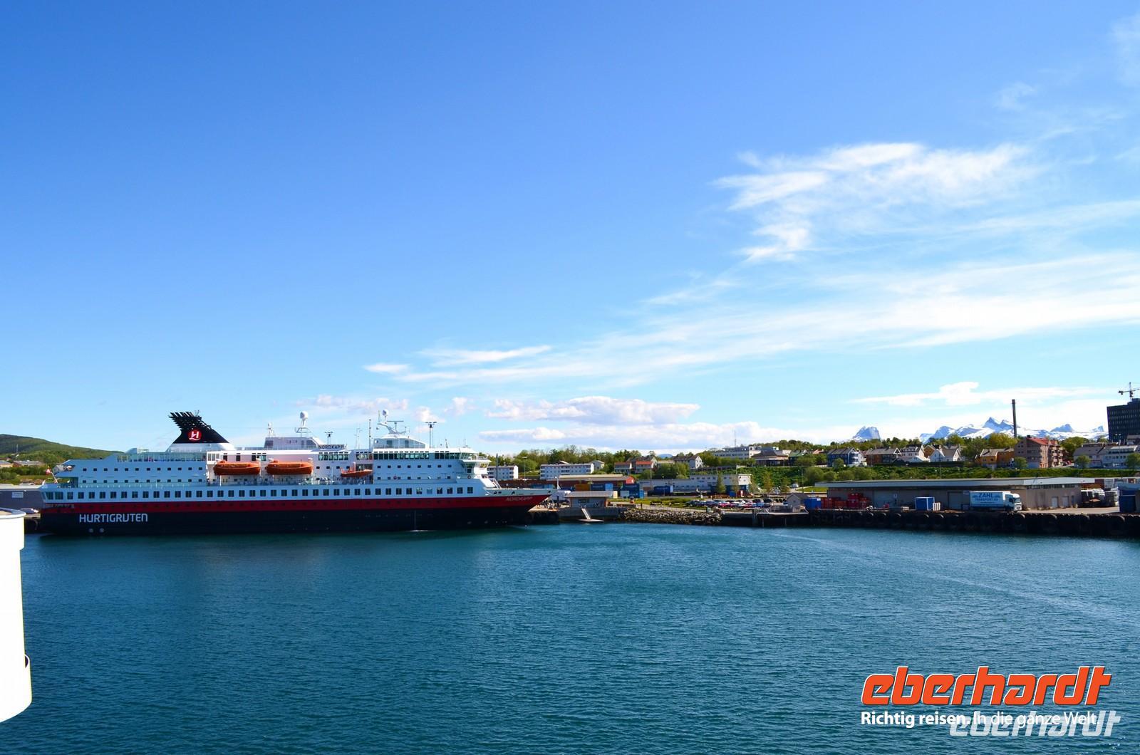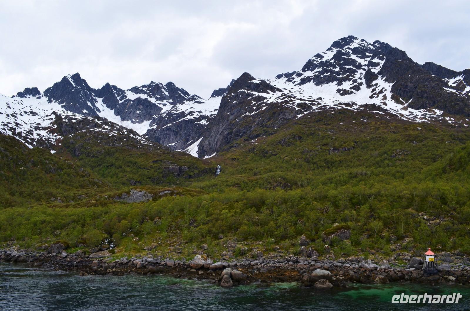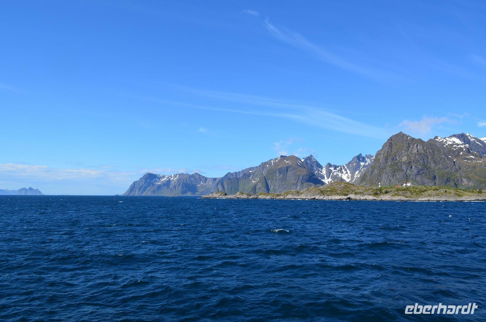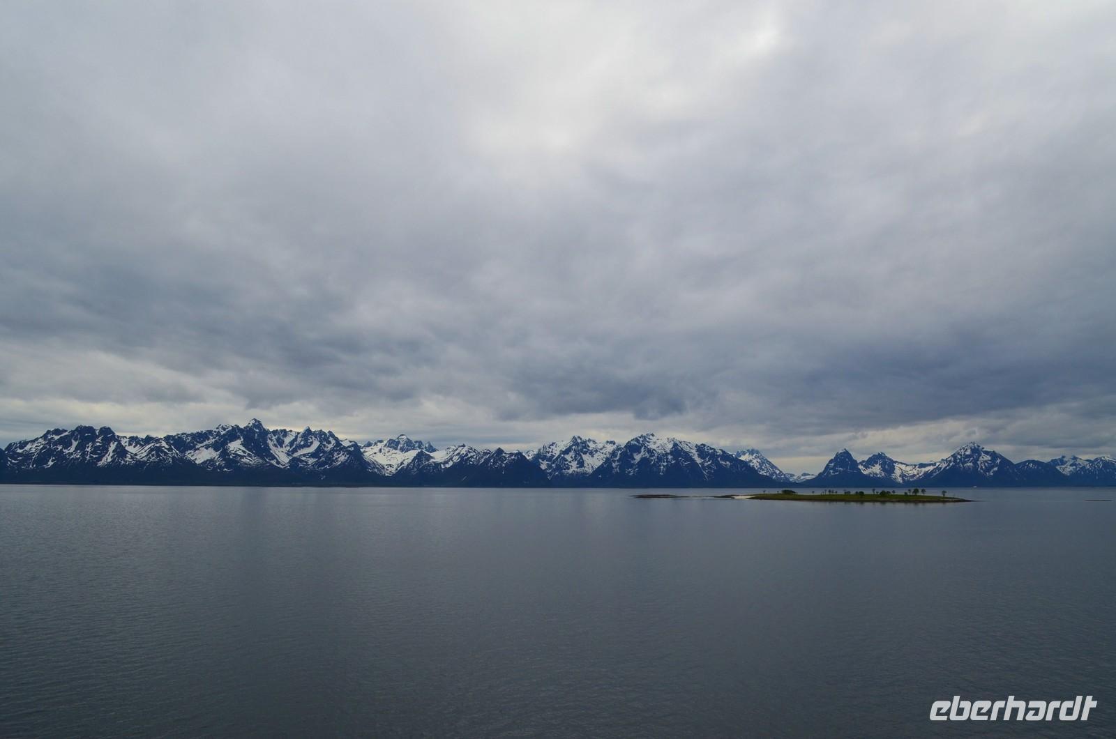 Dann die Vesteralen mit Stockmarknes - das gleiche Bild: Grüne, erblühende Landschaft darüber schneebedeckte Gipfelriesen mit immer bizarreren Formen. Anschließend die Fahrt mit der MS „Richard With“, einem der modernen Schiffe der Hurtigroutenflotte, das uns nach Svolvár auf die Lofoten bringt. Die Fahrt durch den Raftsündet, mit dem Abstecher in den engen Tollfjord und durch die Inseln der Lofoten ist ein besonderes Erlebnis, auch wenn gleichzeitig Wasserflugzeuge den Fjord besuchen.