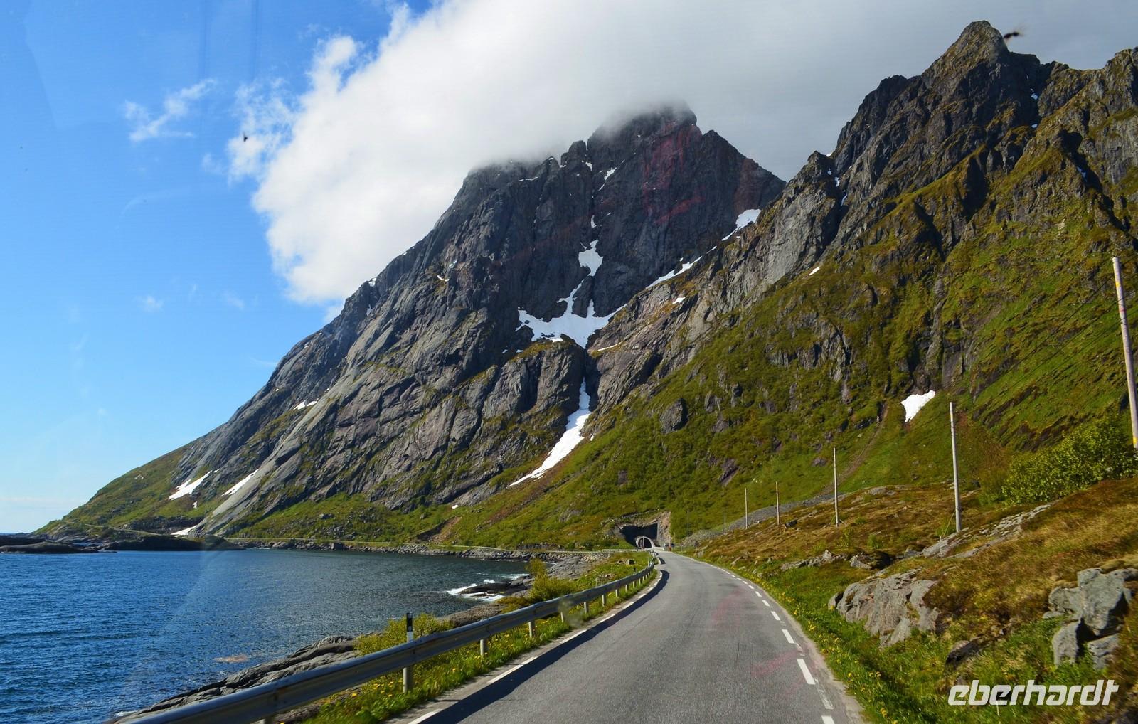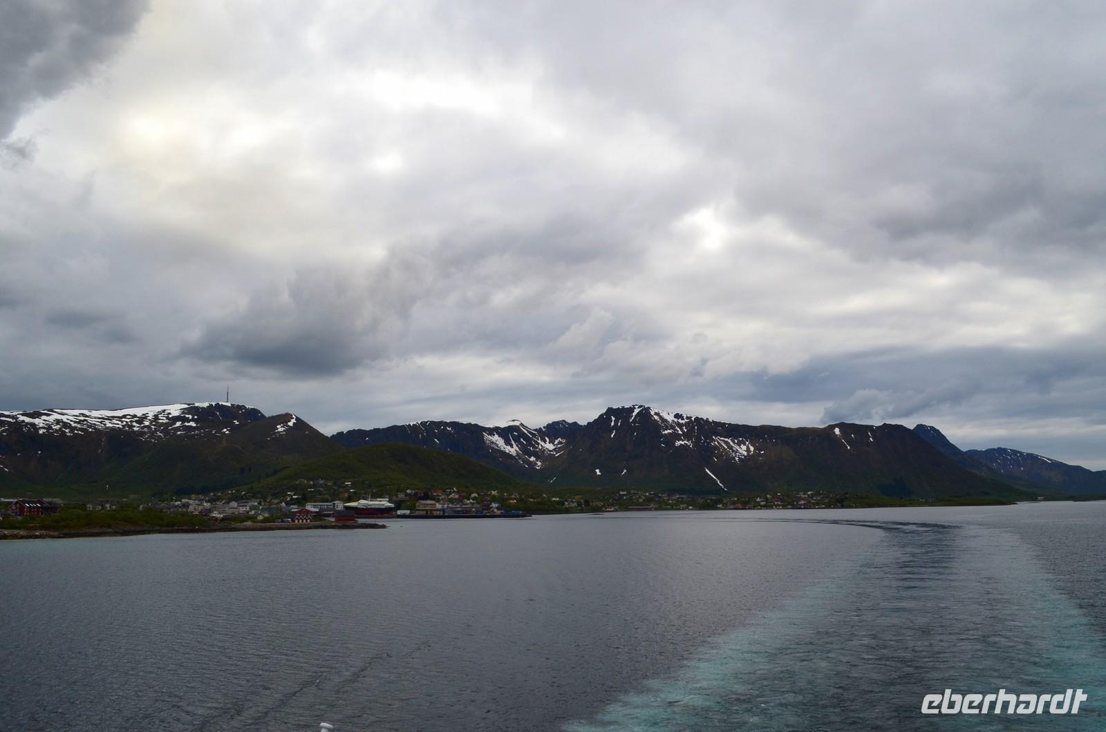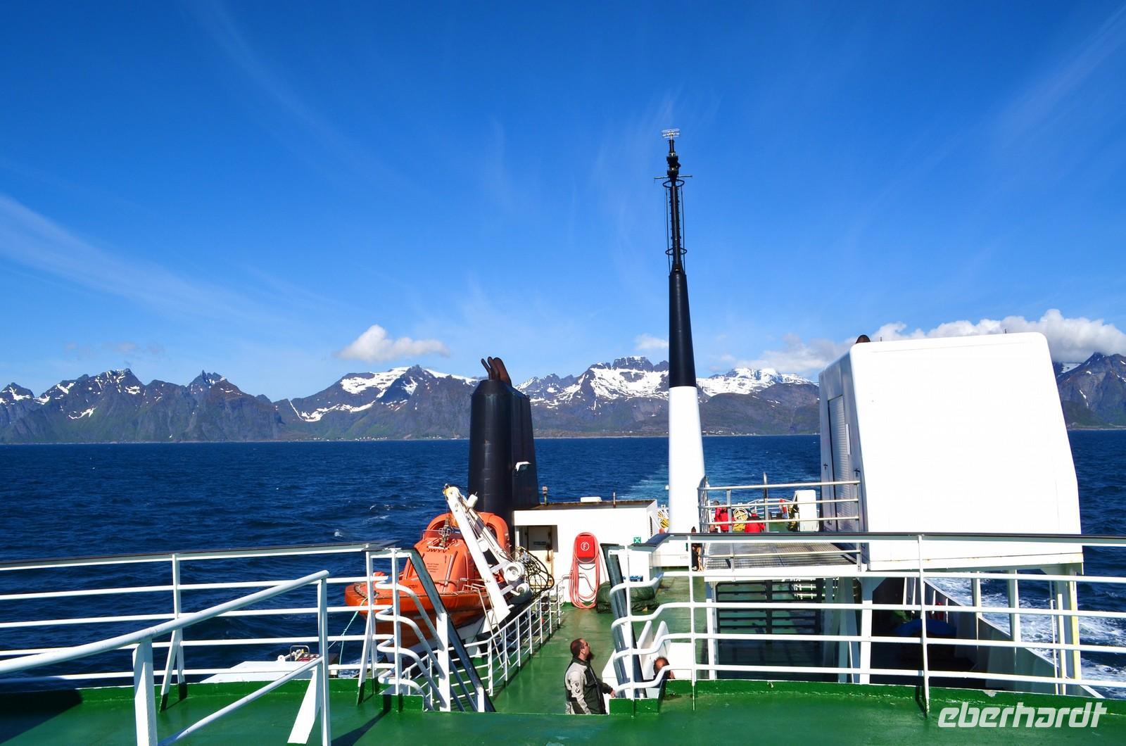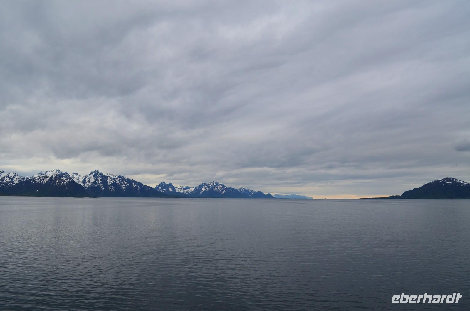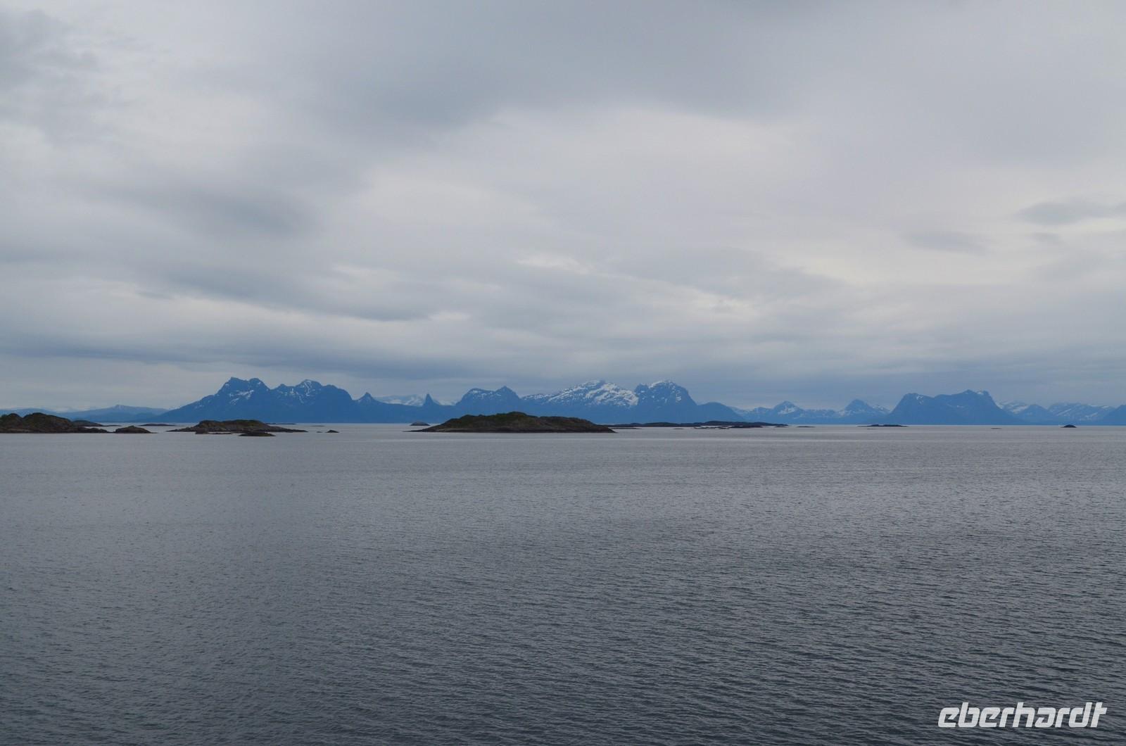 Dann die Vesteralen mit Stockmarknes - das gleiche Bild: Grüne, erblühende Landschaft darüber schneebedeckte Gipfelriesen mit immer bizarreren Formen. Anschließend die Fahrt mit der MS „Richard With“, einem der modernen Schiffe der Hurtigroutenflotte, das uns nach Svolvár auf die Lofoten bringt. Die Fahrt durch den Raftsündet, mit dem Abstecher in den engen Tollfjord und durch die Inseln der Lofoten ist ein besonderes Erlebnis, auch wenn gleichzeitig Wasserflugzeuge den Fjord besuchen.
