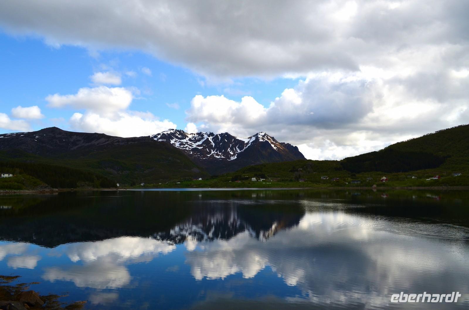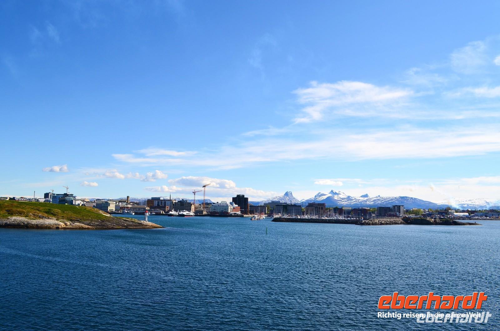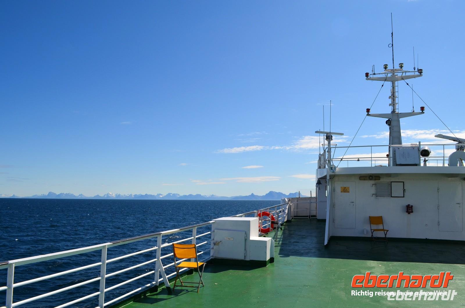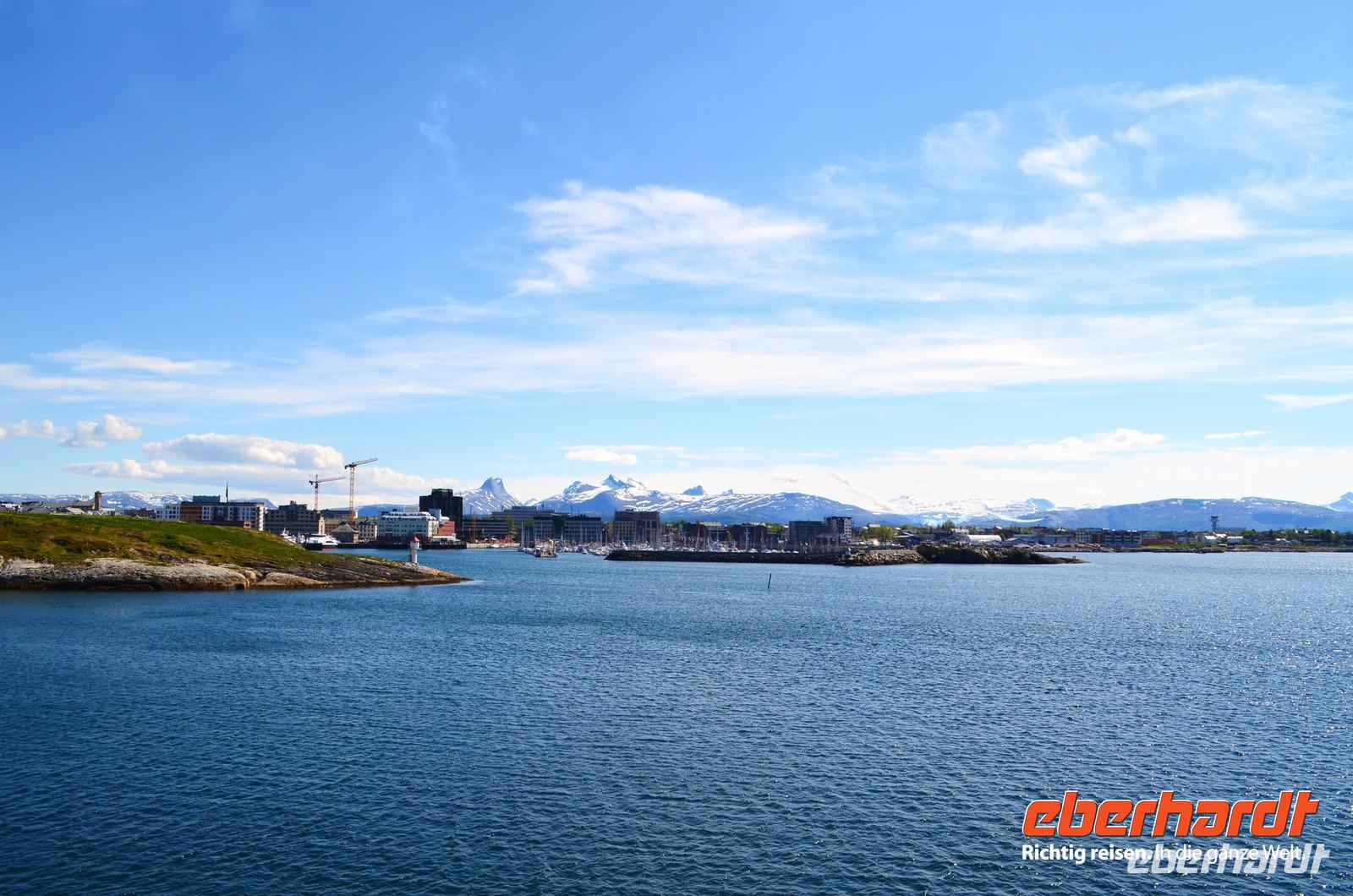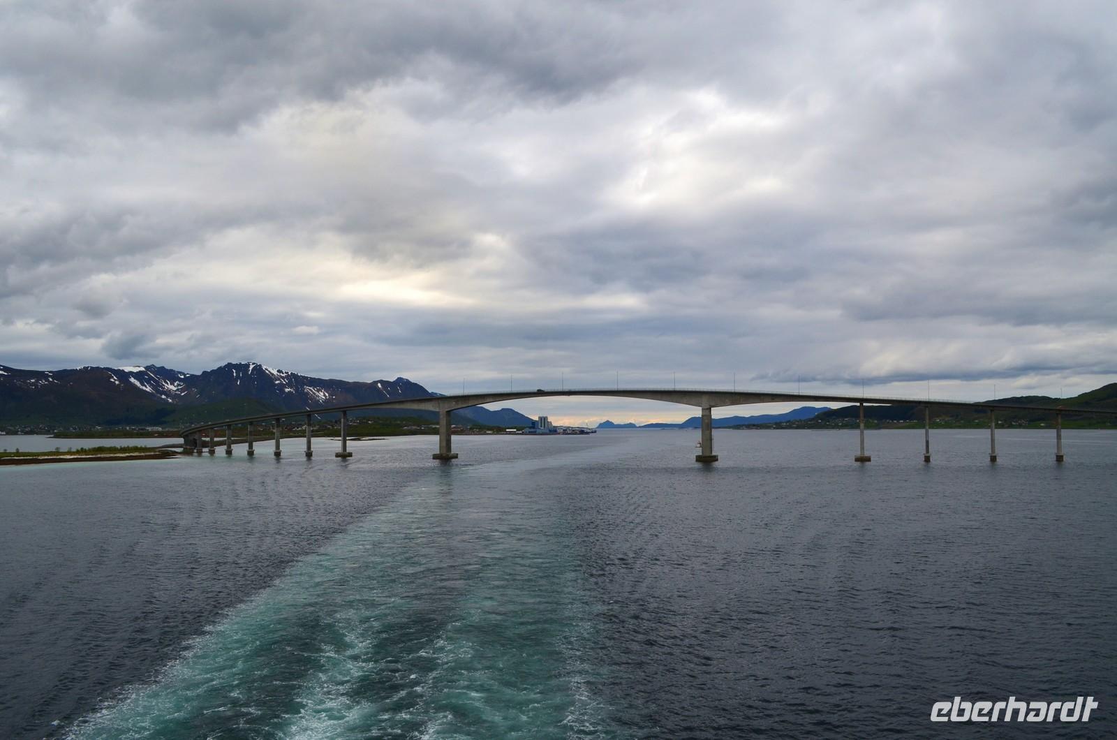 Dann die Vesteralen mit Stockmarknes - das gleiche Bild: Grüne, erblühende Landschaft darüber schneebedeckte Gipfelriesen mit immer bizarreren Formen. Anschließend die Fahrt mit der MS „Richard With“, einem der modernen Schiffe der Hurtigroutenflotte, das uns nach Svolvár auf die Lofoten bringt. Die Fahrt durch den Raftsündet, mit dem Abstecher in den engen Tollfjord und durch die Inseln der Lofoten ist ein besonderes Erlebnis, auch wenn gleichzeitig Wasserflugzeuge den Fjord besuchen.