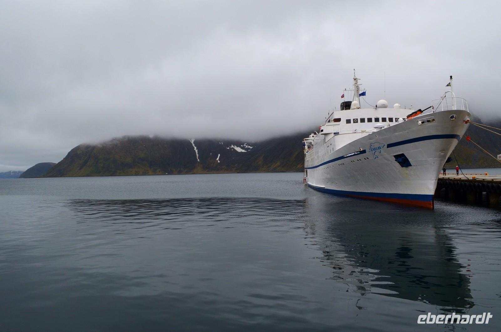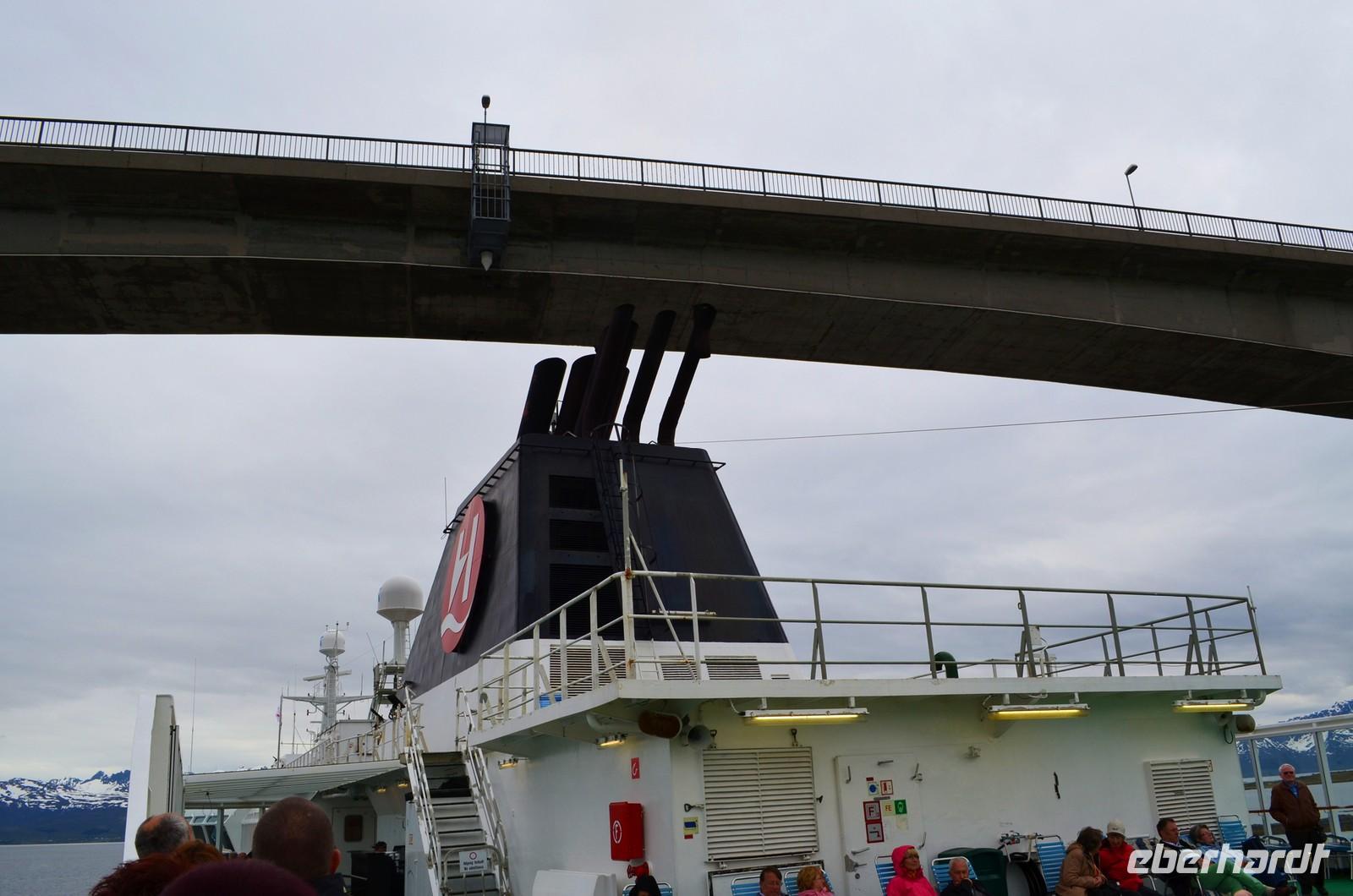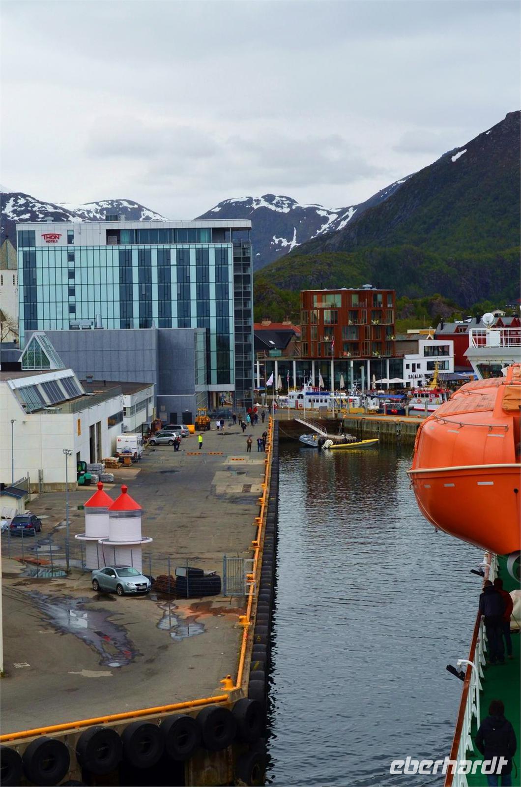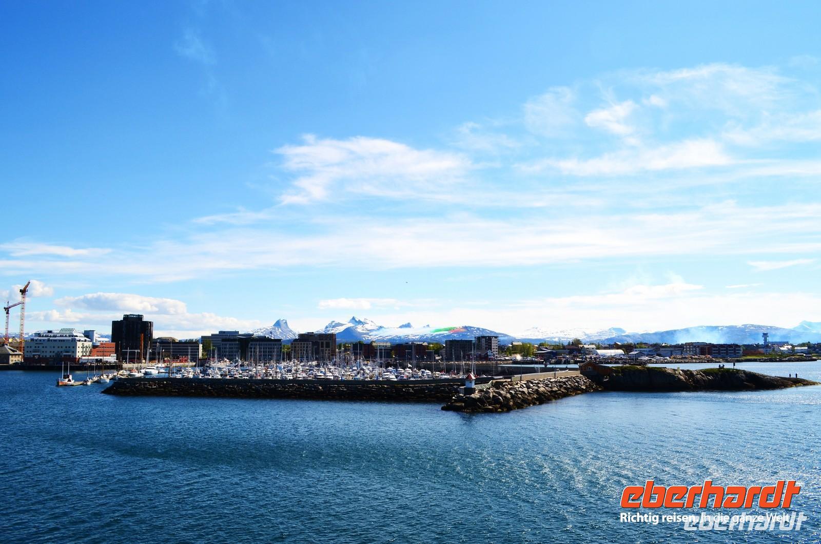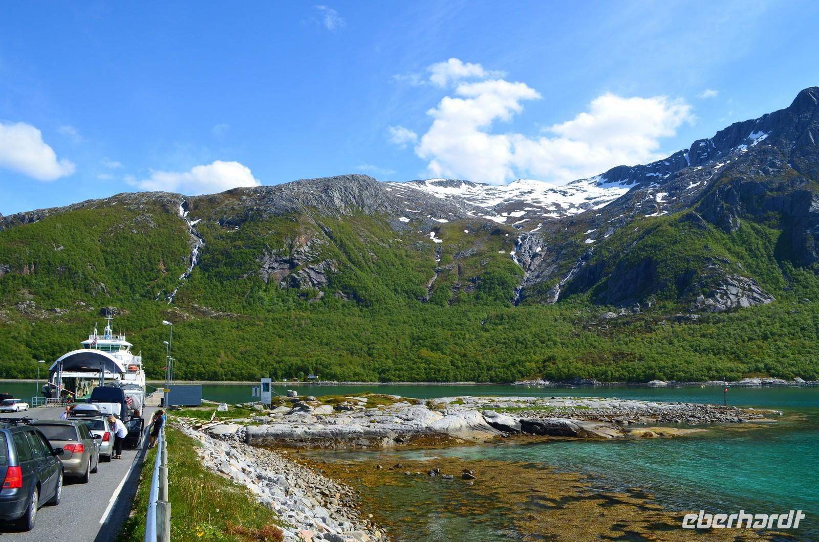 Dann die Vesteralen mit Stockmarknes - das gleiche Bild: Grüne, erblühende Landschaft darüber schneebedeckte Gipfelriesen mit immer bizarreren Formen. Anschließend die Fahrt mit der MS „Richard With“, einem der modernen Schiffe der Hurtigroutenflotte, das uns nach Svolvár auf die Lofoten bringt. Die Fahrt durch den Raftsündet, mit dem Abstecher in den engen Tollfjord und durch die Inseln der Lofoten ist ein besonderes Erlebnis, auch wenn gleichzeitig Wasserflugzeuge den Fjord besuchen.