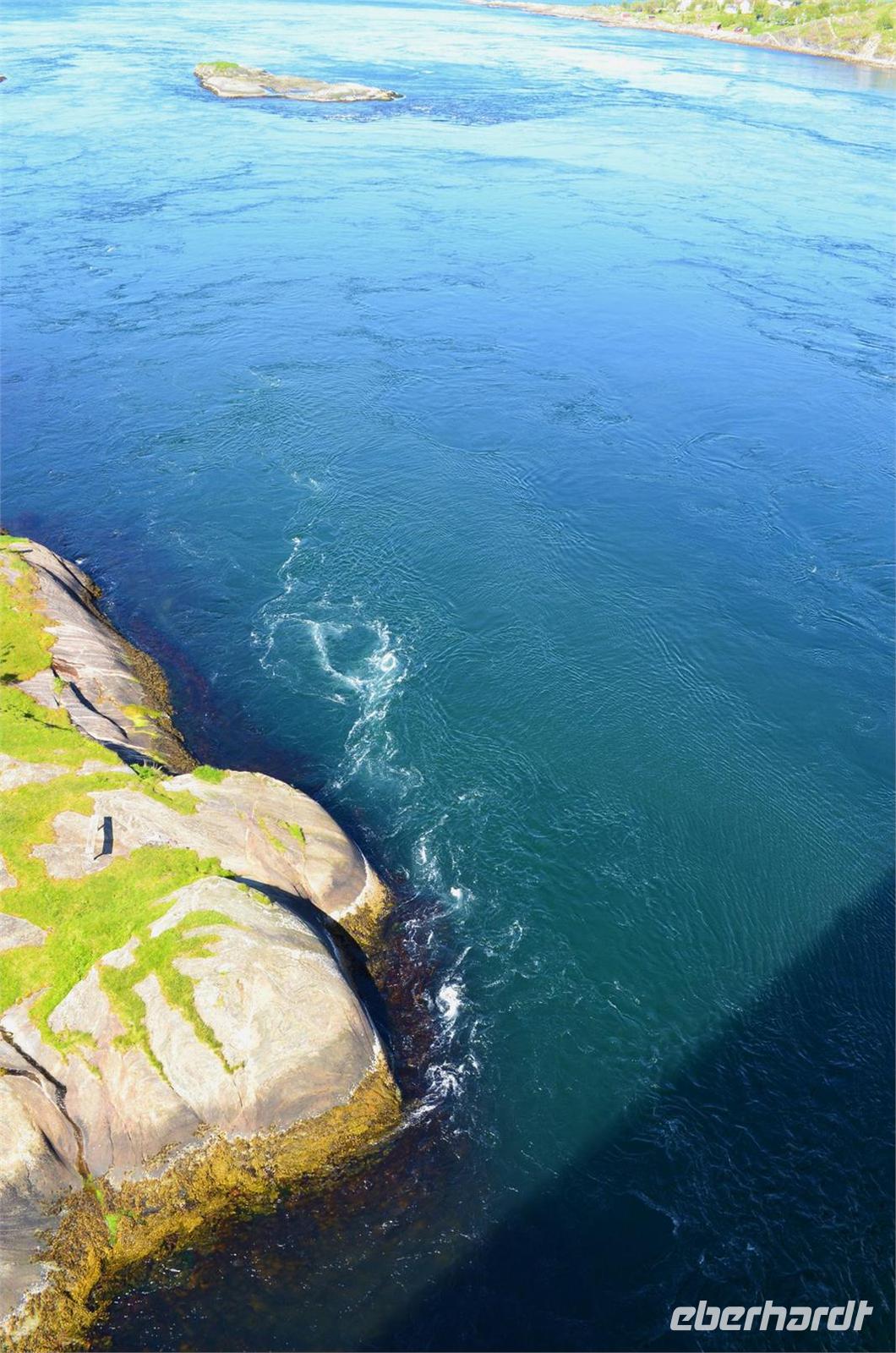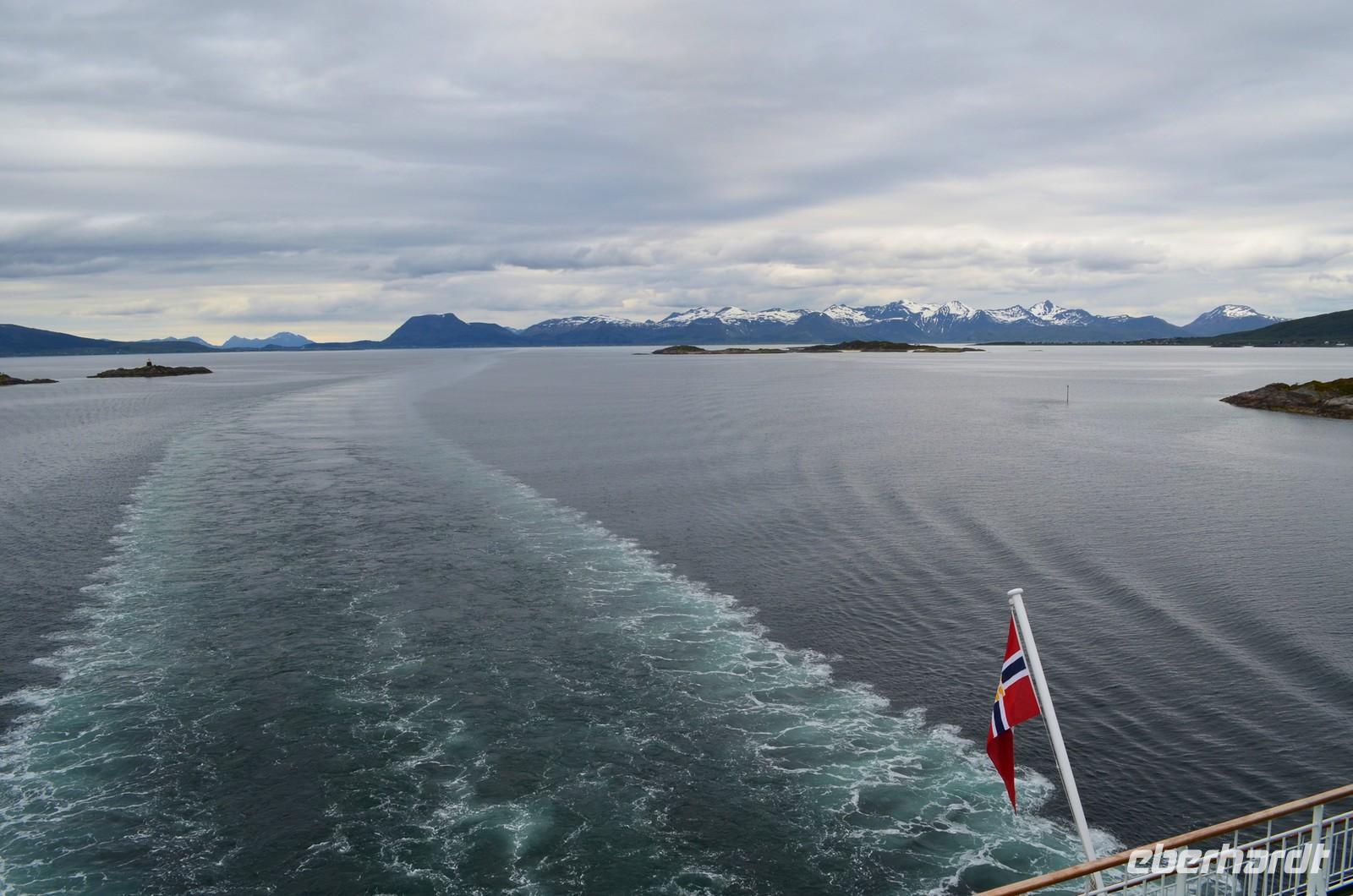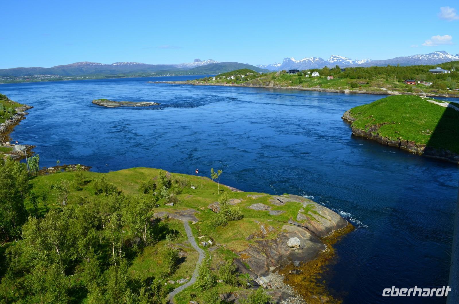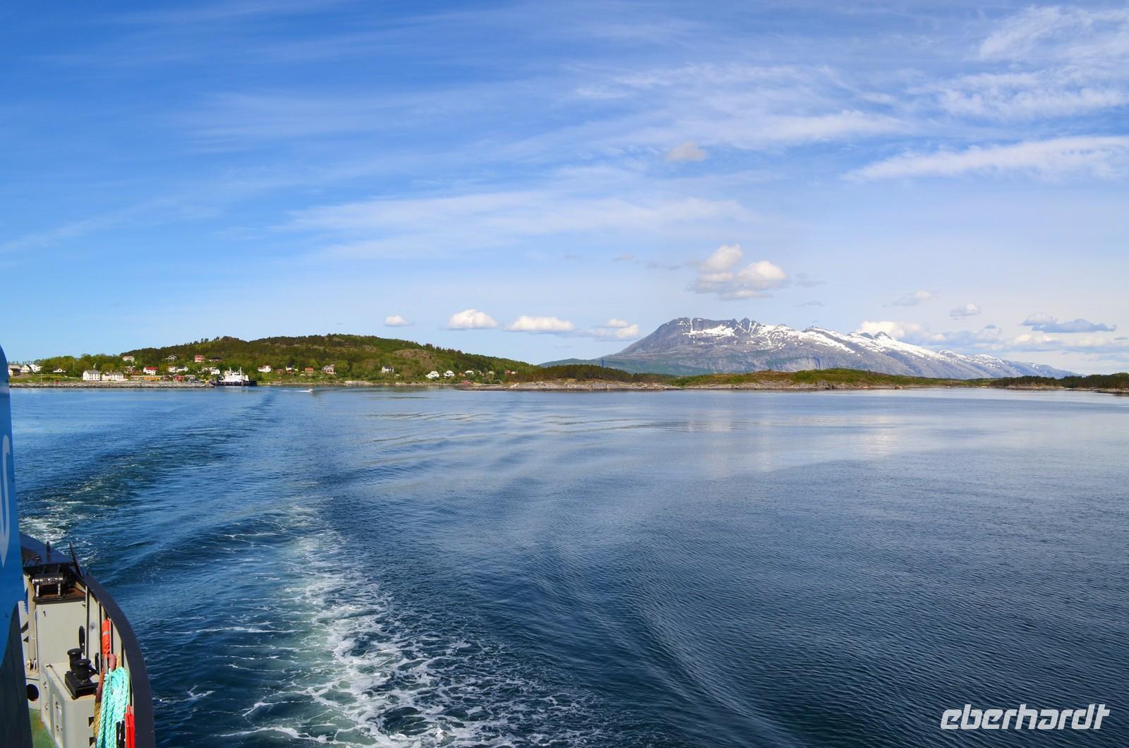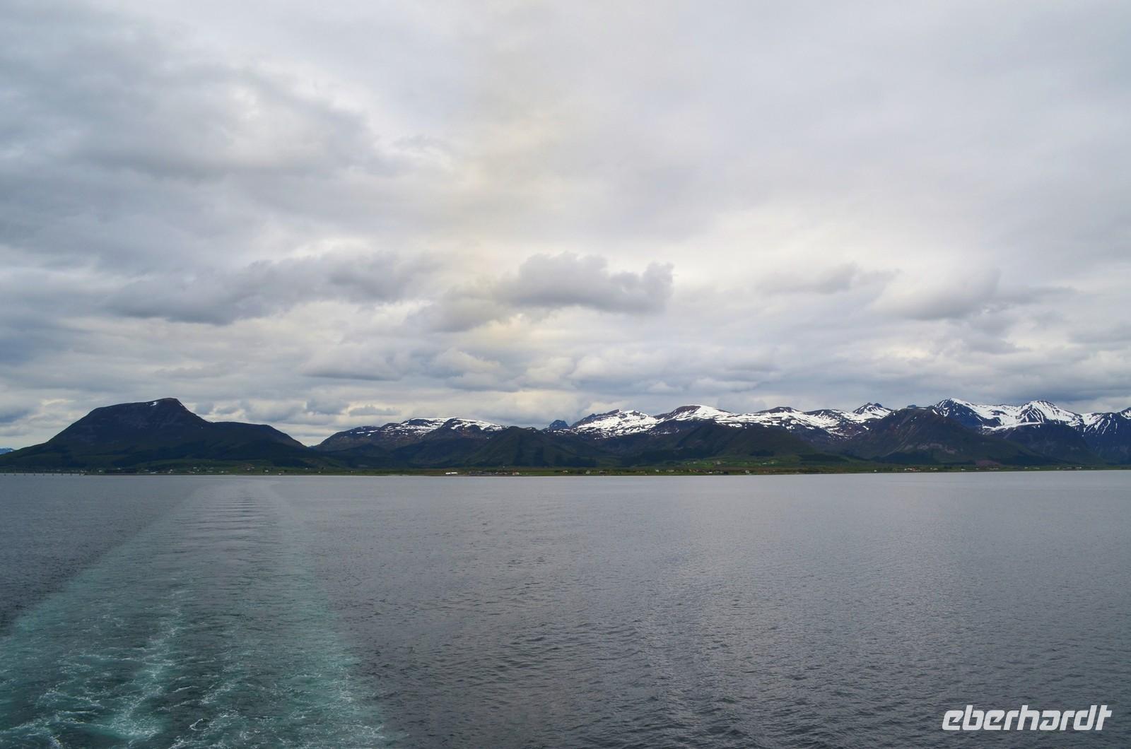 Die weitere Fahrt abwechselnd mit Bus und Fähren entlang der Küste, hinüber nach Bodö, was uns mit einer tollen Flugshow von 9 Jets empfängt, hin zu den Strudeln des Saltstraumen, vorbei an der Marmorstadt Fauske nach Mo i Rana, durch das Helgeland - mit dem prägnanten Bergmassiv der Sieben Schwestern, dem Torghatten, einem Bilderbuchelch auf einer Blumenwiese und am Abend nochmals 4 Elchen (endlich einmal auf der rechten Seite! - nach Steinkjer. Hier blühen Flieder, Tulpen und Narzissen.
