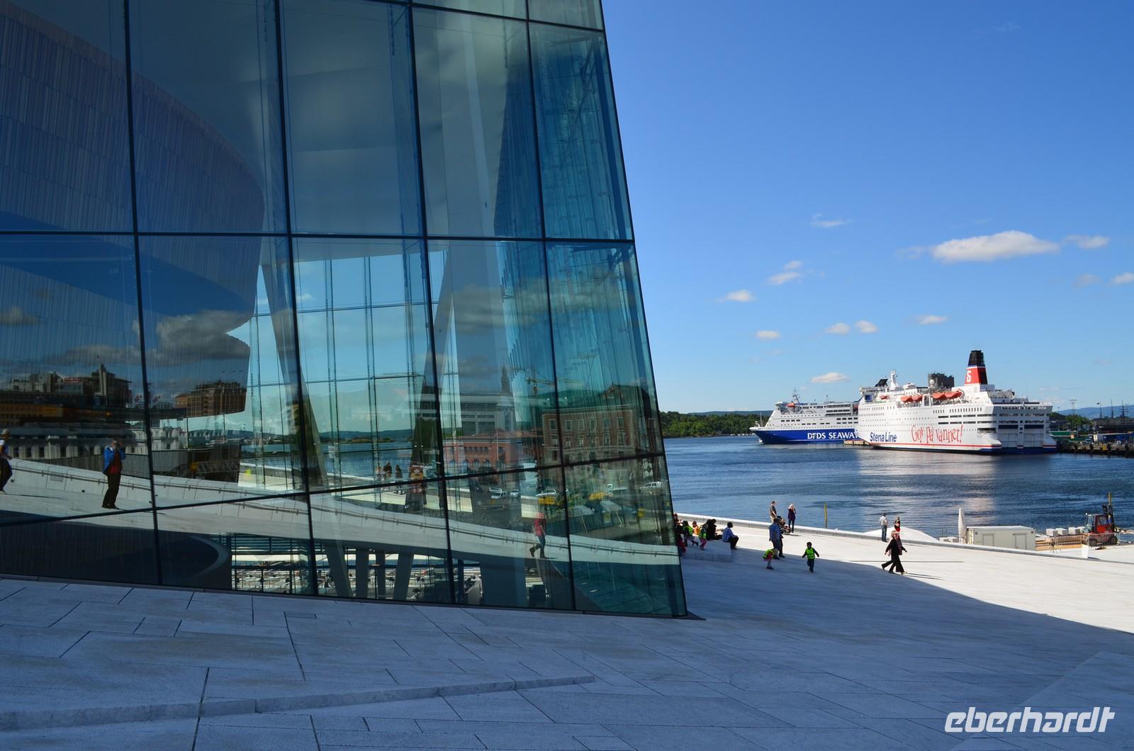 Zur Krönung Oslo - die Hauptstadt, historische Altstadt und moderne City, geschichtliches und künstlerisches Zentrum des Landes. Wir stehen auf den weißen Marmor-Terrassen der Neuen Oper, blicken über Stadt und Hafen, wir spazieren durch den berühmten Vigelandpark, nehmen den Schreihals an die Hand, besichtigen das Rathaus - und sind beeindruckt.