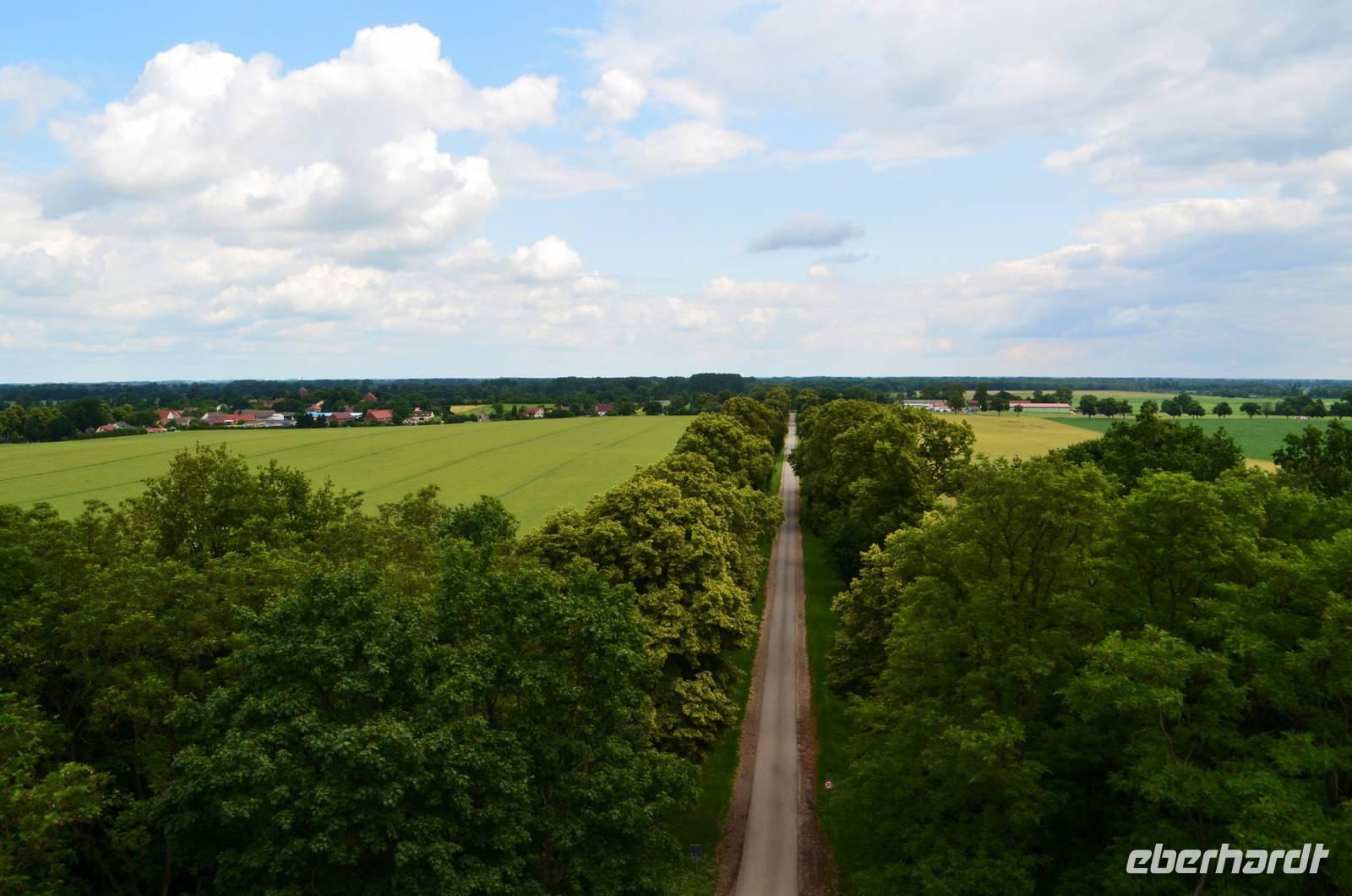 Unser erstes Ziel an der Strecke sind das Kleine und das Große Denkmal in Hakenberg. Dahin machen wir den ersten Abstecher - hin zum Denkmal des alten Kurfürsten Friedrich Wilhelm dem Großen von Brandenburg. Er hat hier 1675 mit seinen Truppen in der „Schlacht von Fehrbellin" die Schweden geschlagen, die in seinem Land plünderten. Wir klettern auf die Aussicht im Denkmal und genießen den schönen Ausblick ins brandenburgische Land.