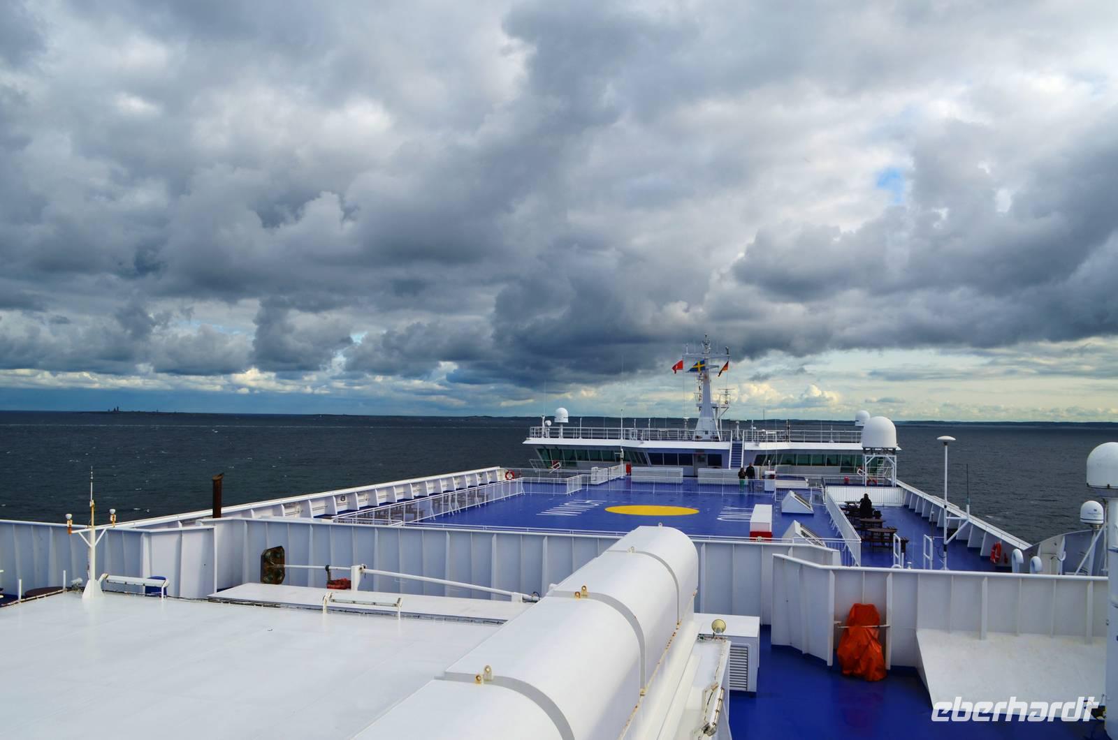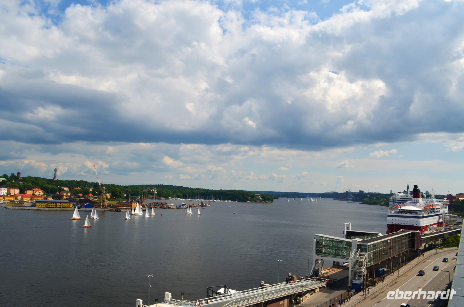 Die Weiterfahrt verläuft zügig und am frühen Nachmittag erreichen wir die Hafenstadt Kiel, wo die Stenaline-Fähre „Germanica" am neuen Schwedenkai schon auf uns wartet. Wir können das Schiff in Ruhe erobern und unsere Kabinen beziehen. Die gerade stattfindende Kieler Woche macht die Szenerie besonders interessant, auch wenn es leider regnet.