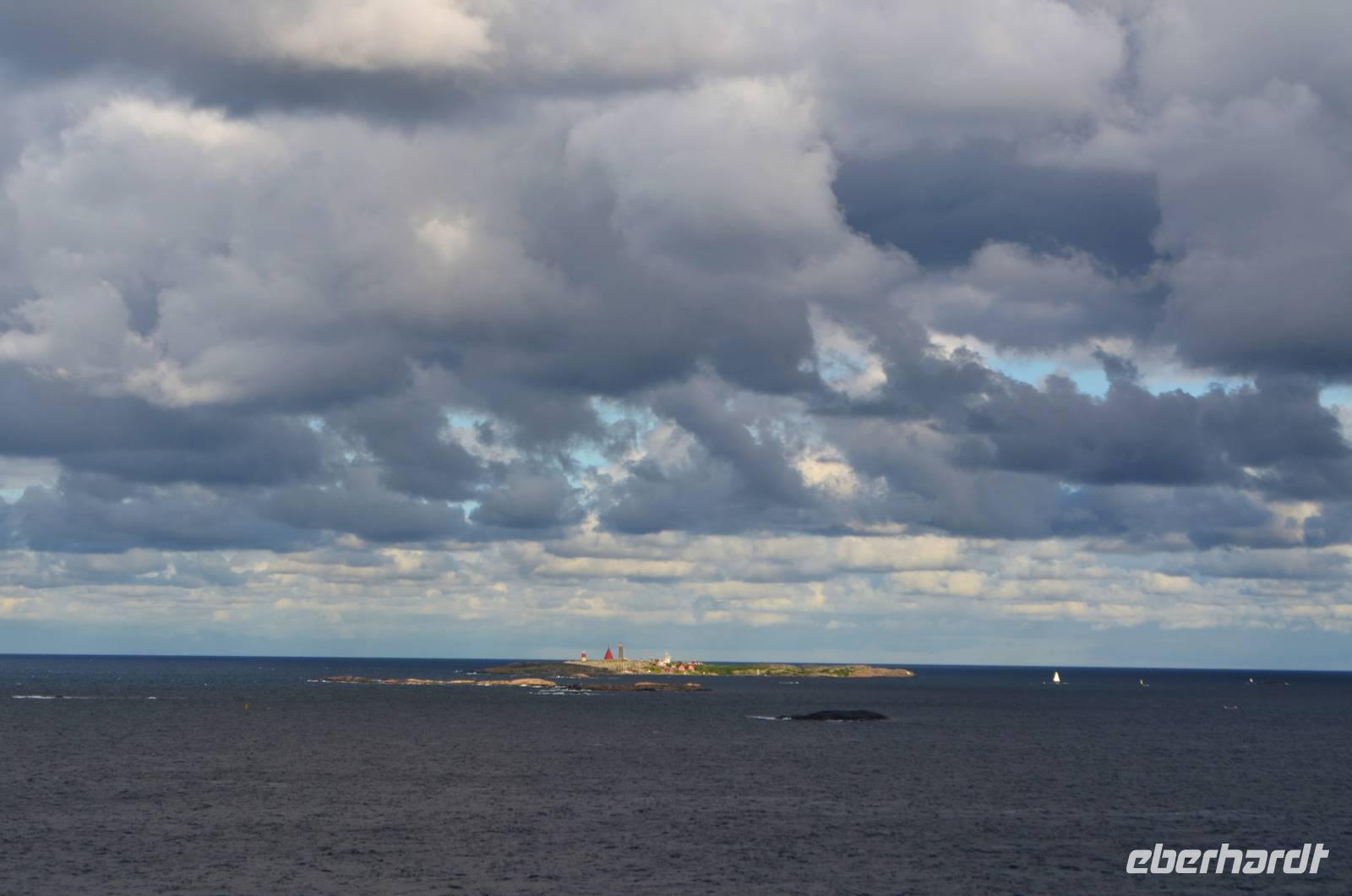 Am nächsten Morgen lacht die Sonne bei der Einfahrt durch die Schären vor Göteborg.