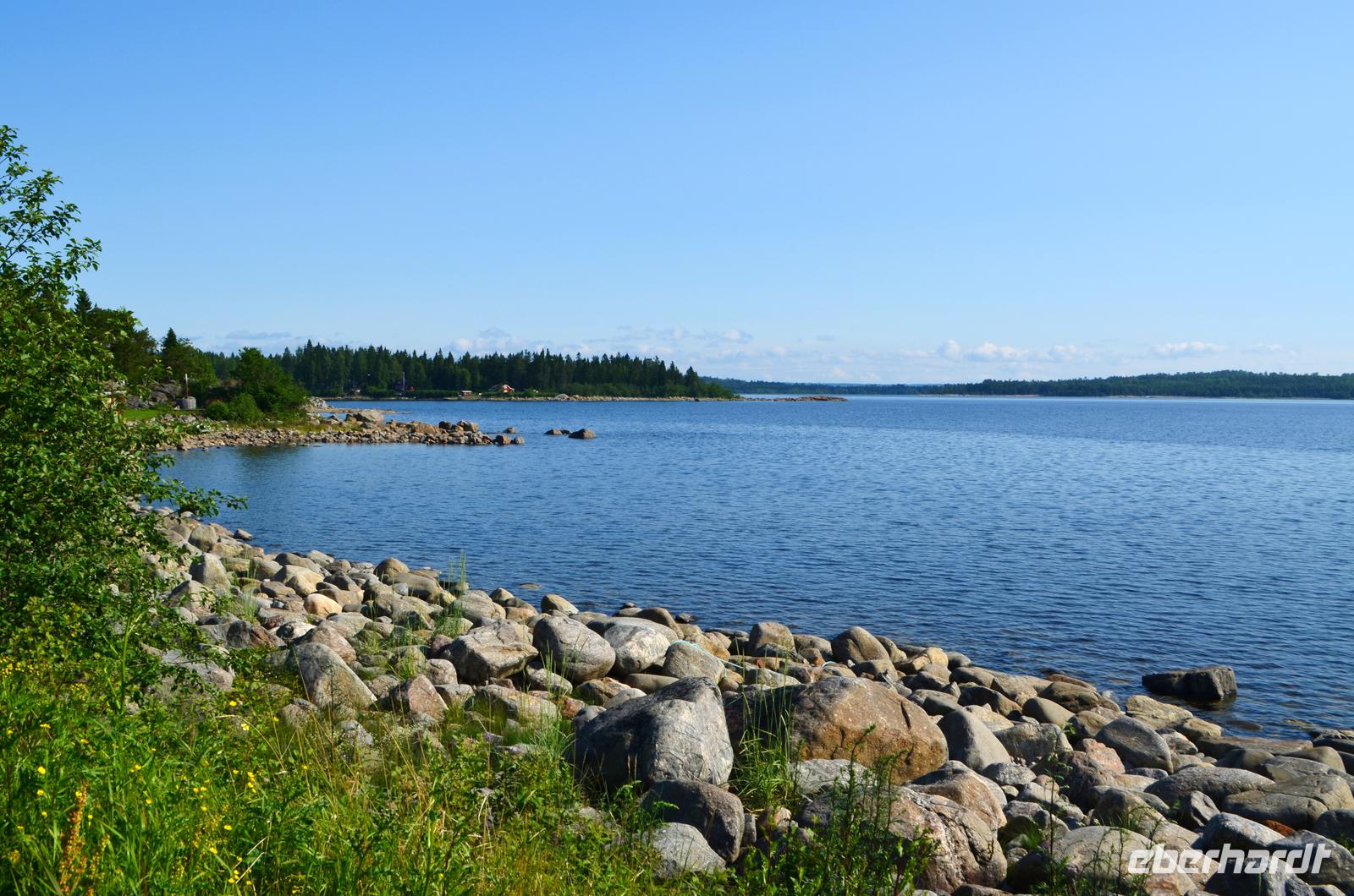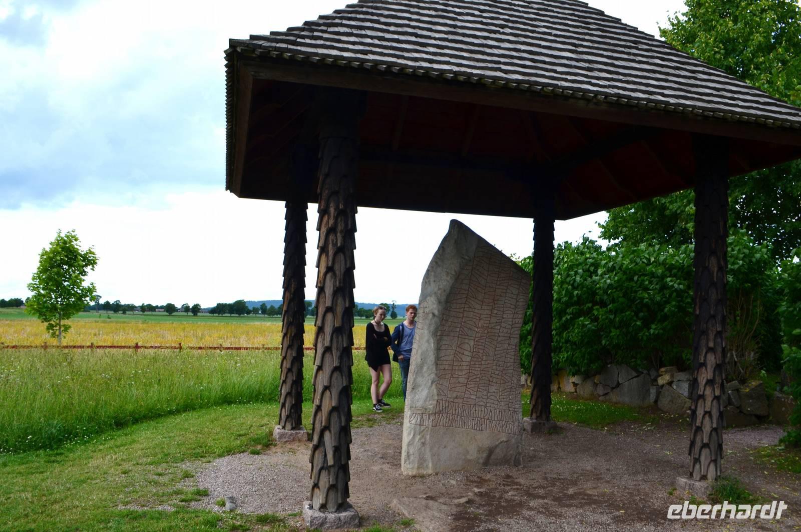 Weiter geht es dann mit unserem Bus - quer durch Göteborg und hinaus in die Landschaft des sommerlichen Südschwedens. Über Jönköping, den alten Handelsplatz am Südzipfel des Vätternsees, wo die Streichhölzer erfunden wurden, geht es weiter zum Runenstein von Rök, dem Stein mit der längsten Runenschrift der Welt - schön gelegen bei der Kirche von Rök, in der ländlichen Idylle Südschwedens.