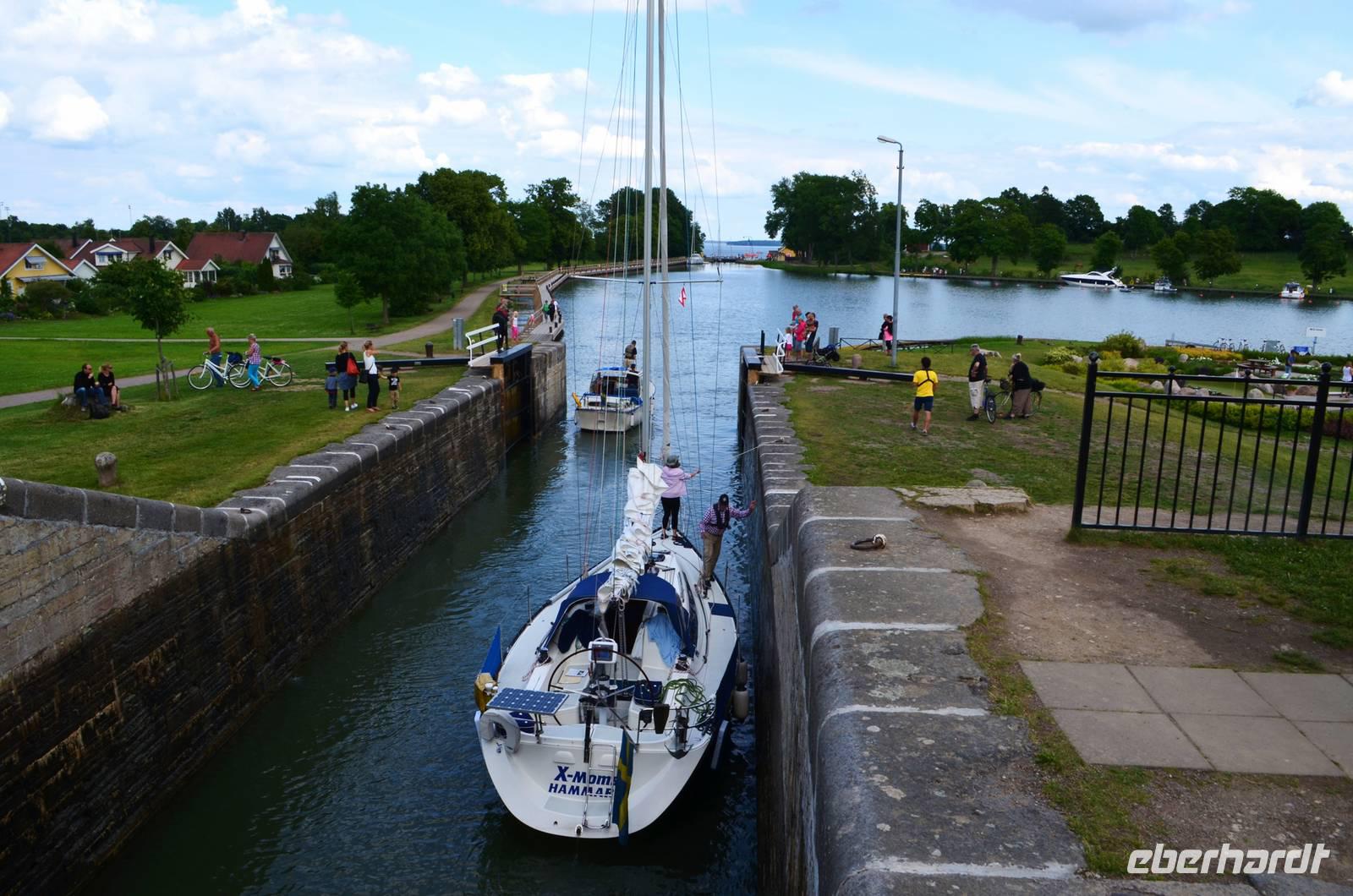 Dann geht es weiter Richtung Linköping, entlang dem Götakanal, mit Besuch der Schleusenstufen bei Berg. Immer wieder beeindruckend die technischen und arbeitsmäßigen Leistungen der Menschen, die diesen Kanal in Handarbeit aushoben. Wir haben Glück und sehen zwei große Yachten, die die Schleuse zum See hinunter überwinden.