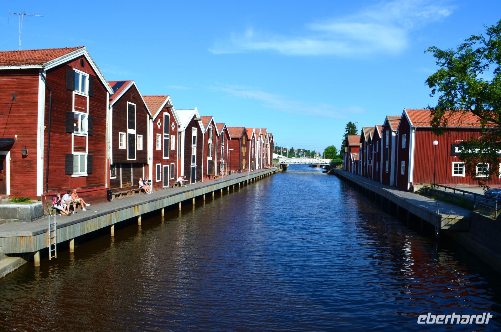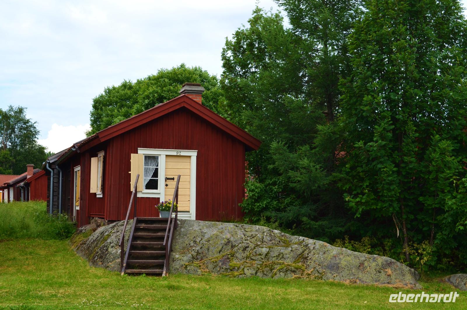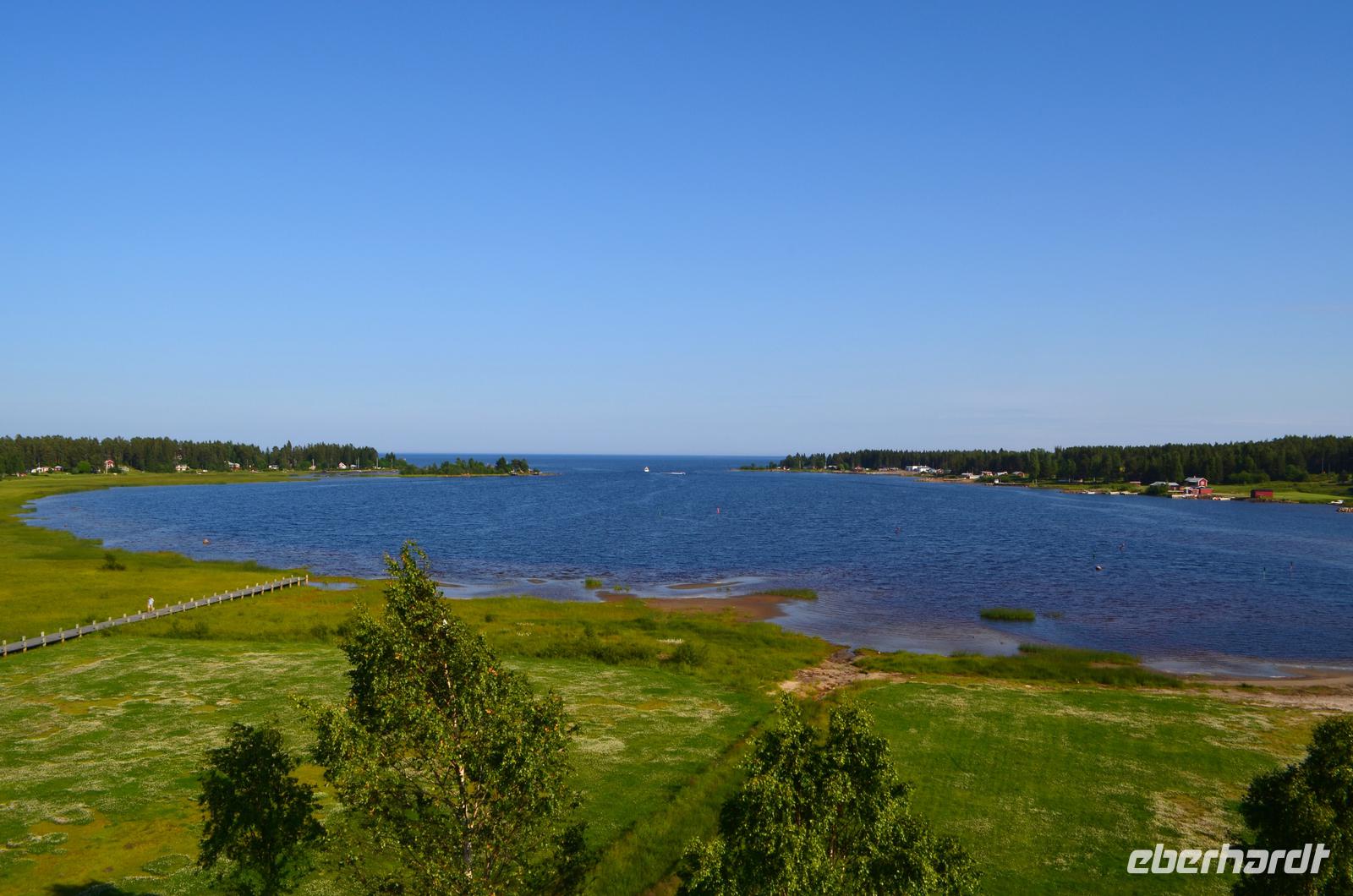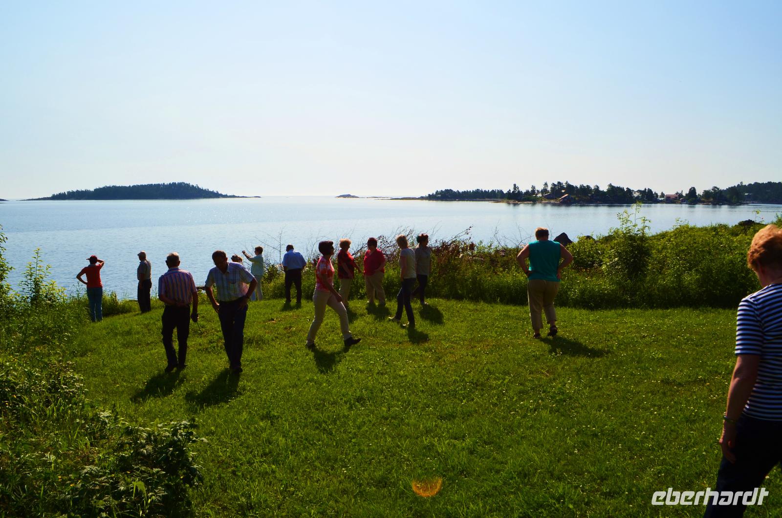Bei herrlichem Sommerwetter fahren wir zuerst auf die Insel Alnö, machen eine kleine Rundfahrt, um die Ferienhäuser, Strände und die Schäreninseln dieser Küste zu sehen. Bei der Weiterfahrt entlang der Hohen Küste geht es durch Felsenlandschaften, durch Wälder und über Flüsse, vorbei an kleinen Dörfern mit ihren Kirchen und den daneben extra stehenden Glockentürmen.