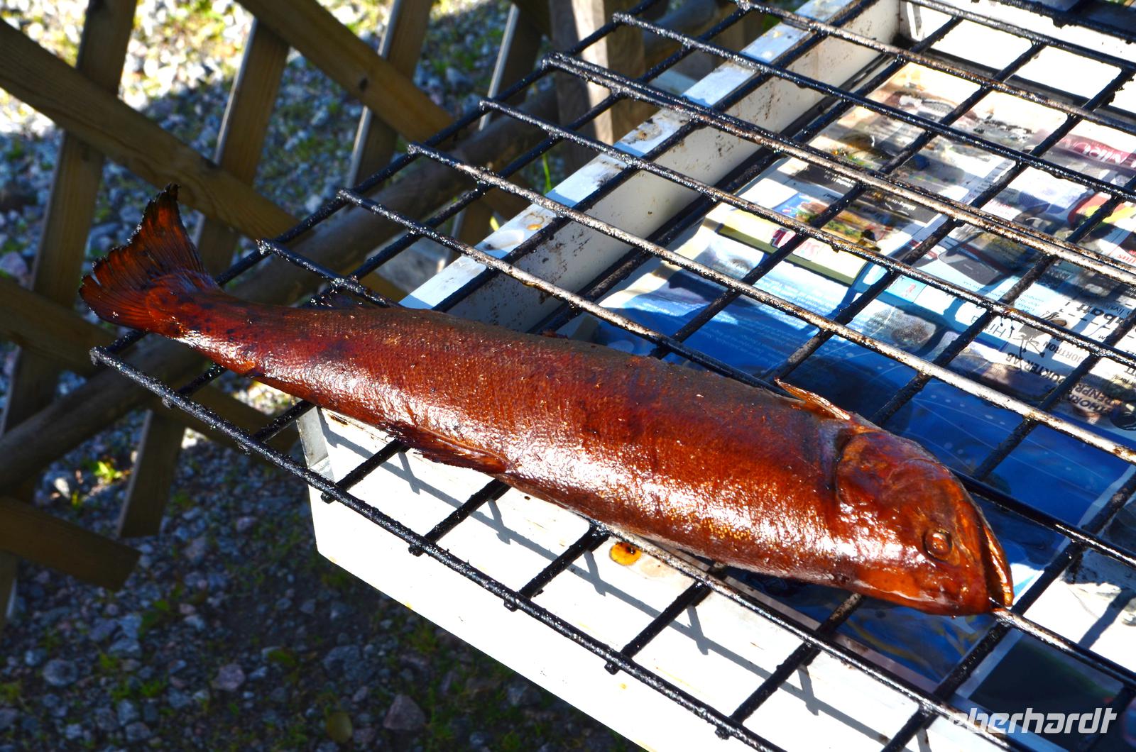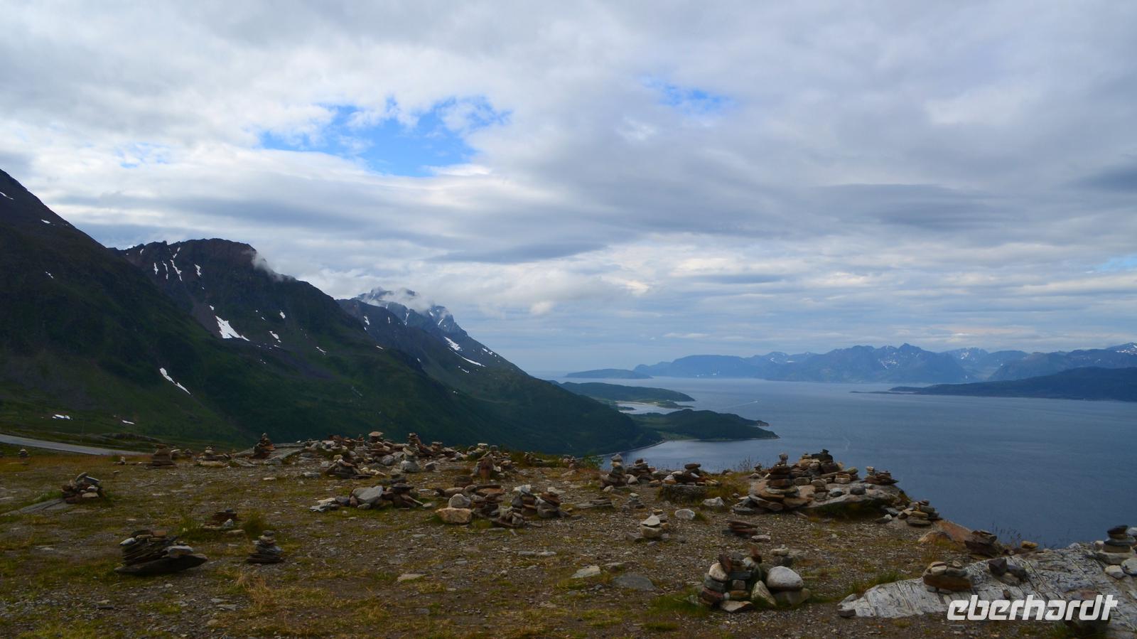 In einer Bucht nach dem Olderfjord finden wir einen schönen Rastplatz. Die Sonne lacht und wir bauen den Grill auf um für alle leckere Bratwürste zu braten.