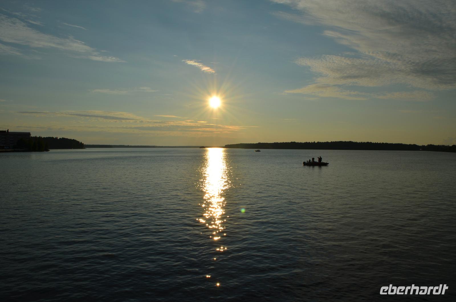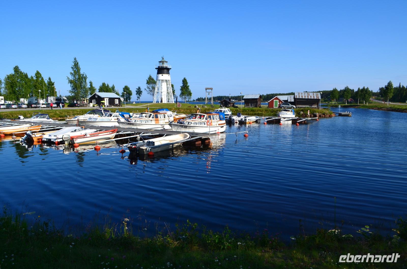 Später halten wir noch bei Jävre am Leuchtturm, auf den wir auch hinaufklettern können - eine schöne Aussicht über diese Bucht des Bottnischen Meerbusens. Am Abend erreichen wir die Stadt Luleá, die durch ihren Erzverladehafen bekannt ist. Noch zu später Stunde sitzen oder spazieren wir in hellem Sonnenschein an der schönen Ufermagistrale der Stadt.