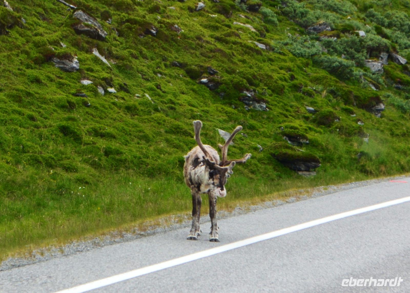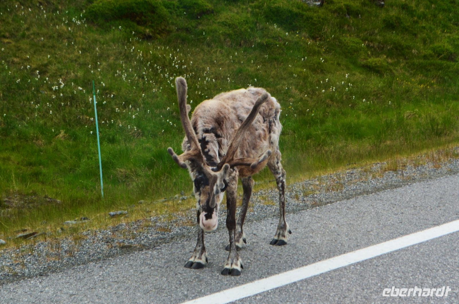 Auf der Uferstraße dann plötzlich Rentiere und nochmals Rentiere.