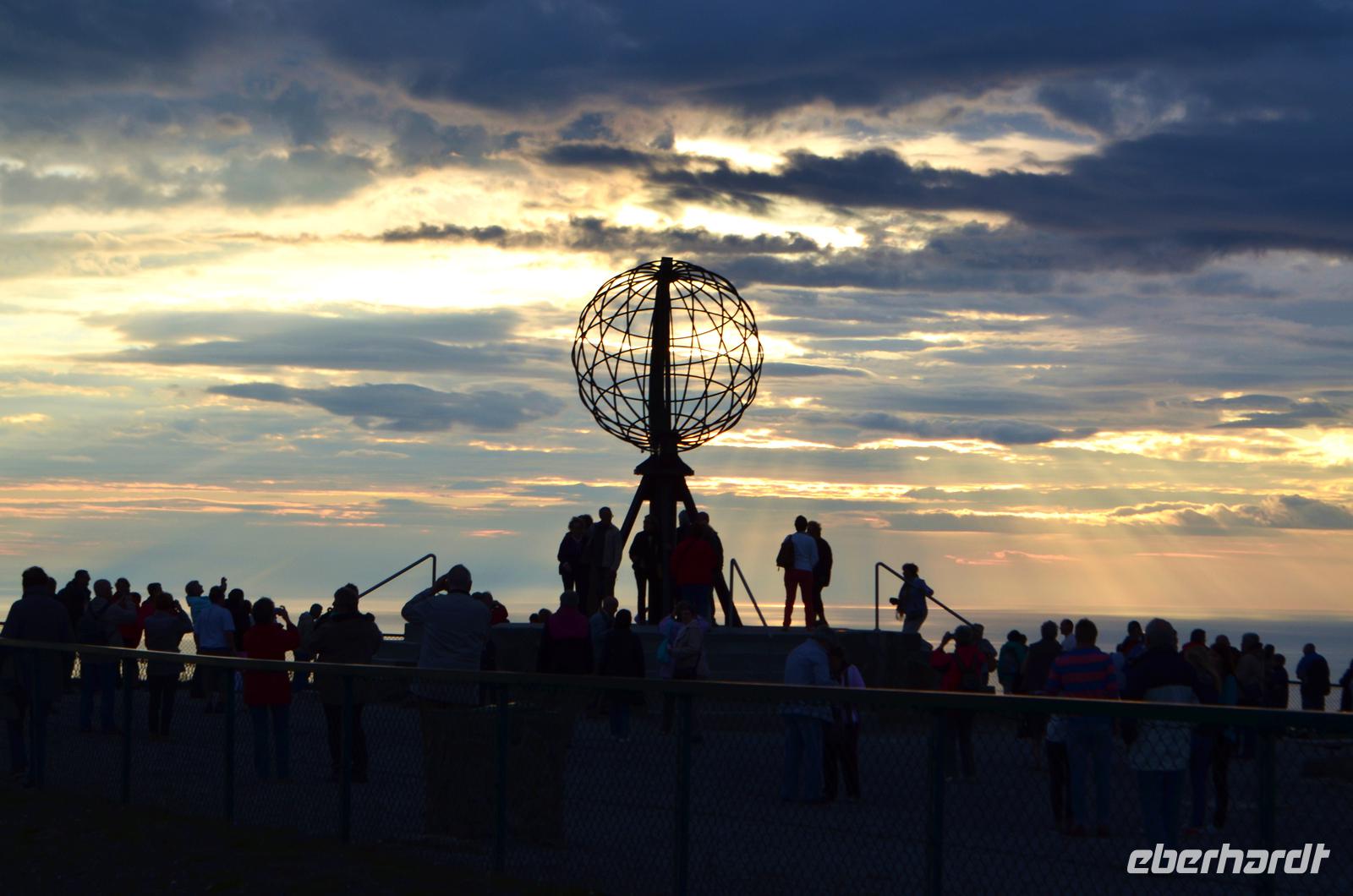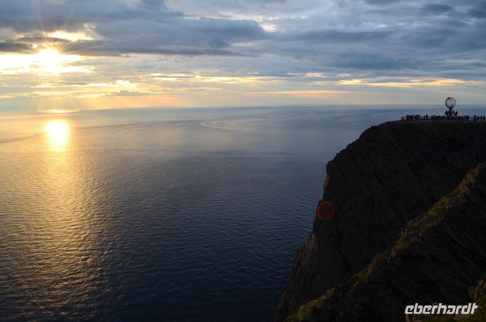 Mitternachtssonne am Nordkap - wir gehören zu den 20% jährliche Besucher, die dieses Glückserlebnis haben. Im attraktiven Gebäude des Centers selbst gibt es, mehrere Etagen tief in den Felsen gebaut, Gastronomie, Geschäfte, Ausstellungen und ein Multivisionskino, wo wir den sehenswerten Film über die tolle Landschaft hier zu allen Jahreszeiten anschauen.