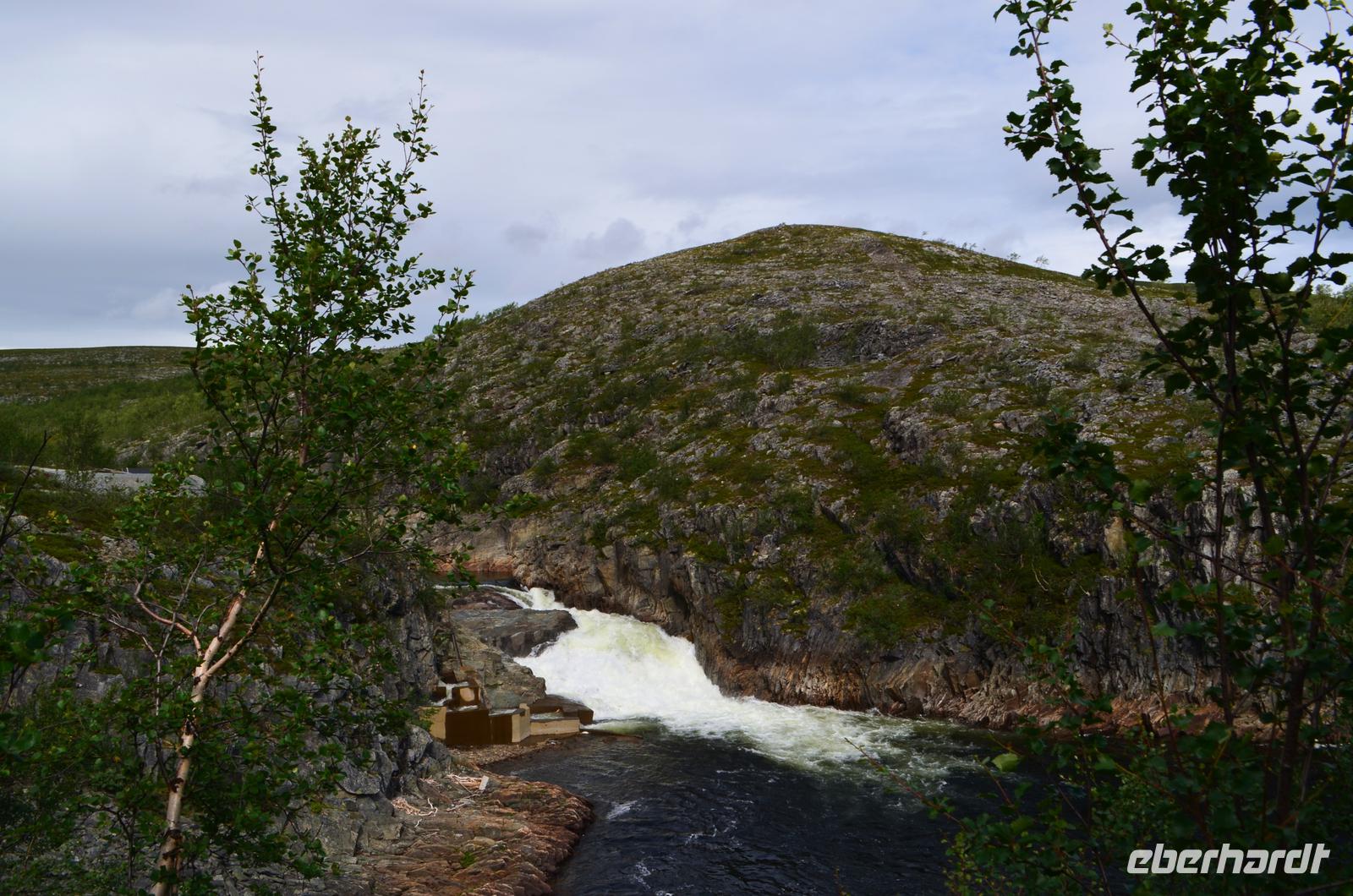 Schließlich erreichen wir mittags Norwegen, mit Karasjok, der Samihauptstadt, wo wir am Informationszentrum halten um den Handwerkern bei der Arbeit zuzusehen. Mittag machen wir mit selbst bereiteten „Fettschnitten mit Saurer Gurke" am Samimuseum. Doch auch andere Gäste werden von unserem Imbiss angelockt - Mücken.