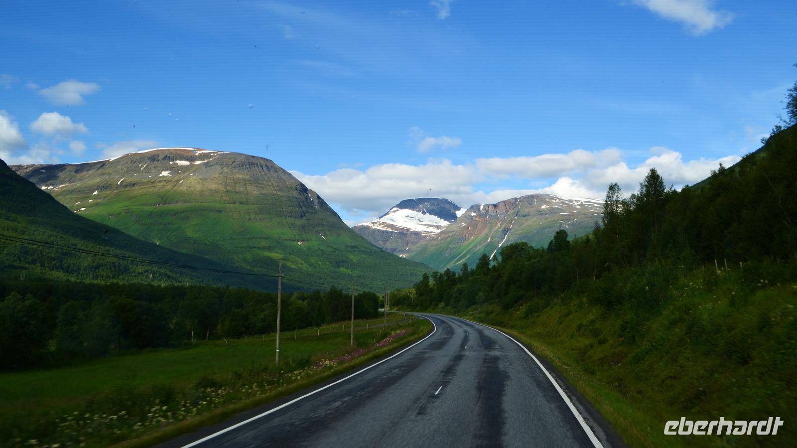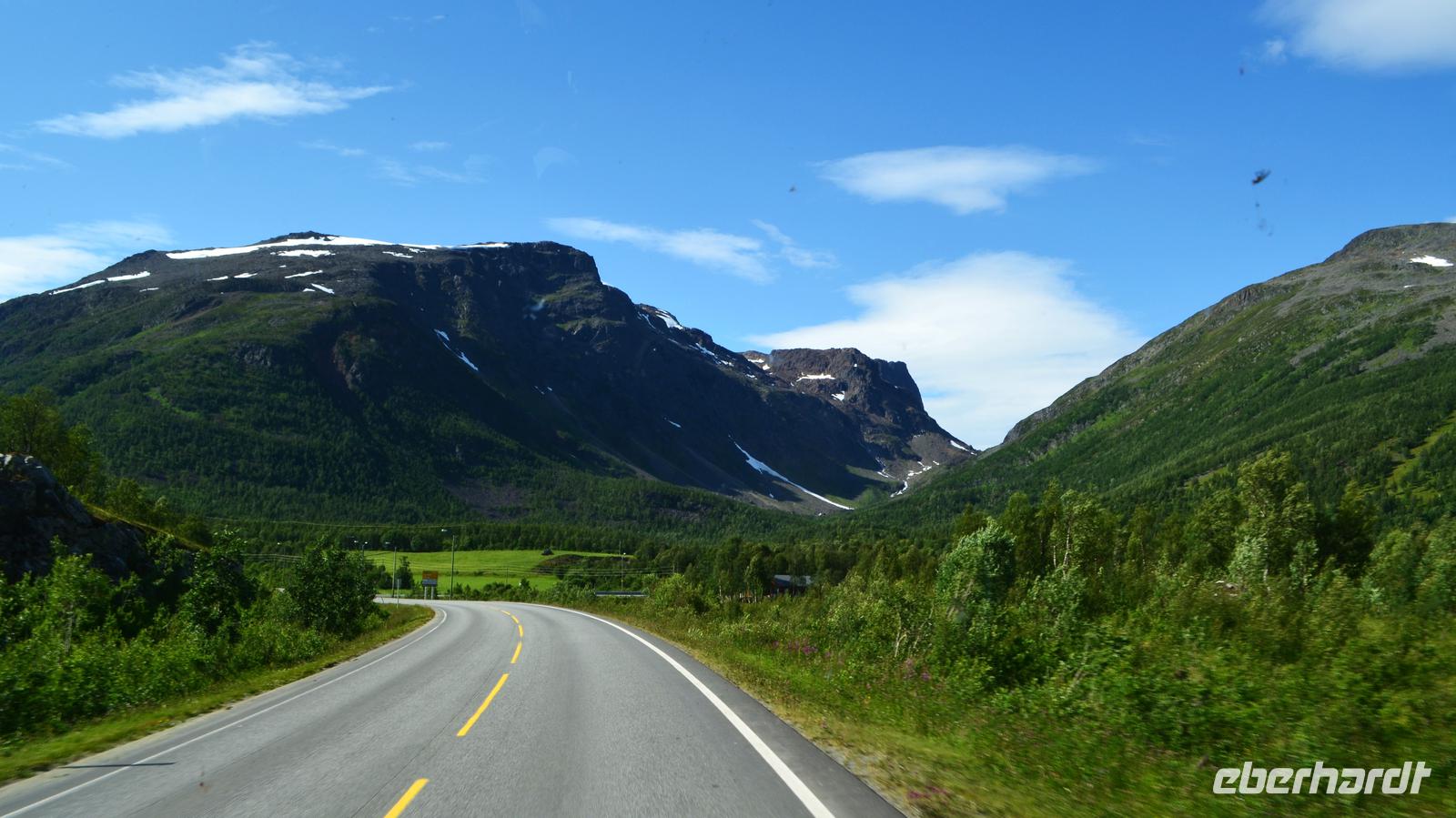 Weiter geht es, vorbei an der Marmorstadt Fauske über das Saltfjell mit dem norwegischen Polarkreiszentrum und wieder hinab nach Mo i Rana. Hier nimmt uns das Hotel Meyergarden auf und bietet uns ein gutes Nachtlager.