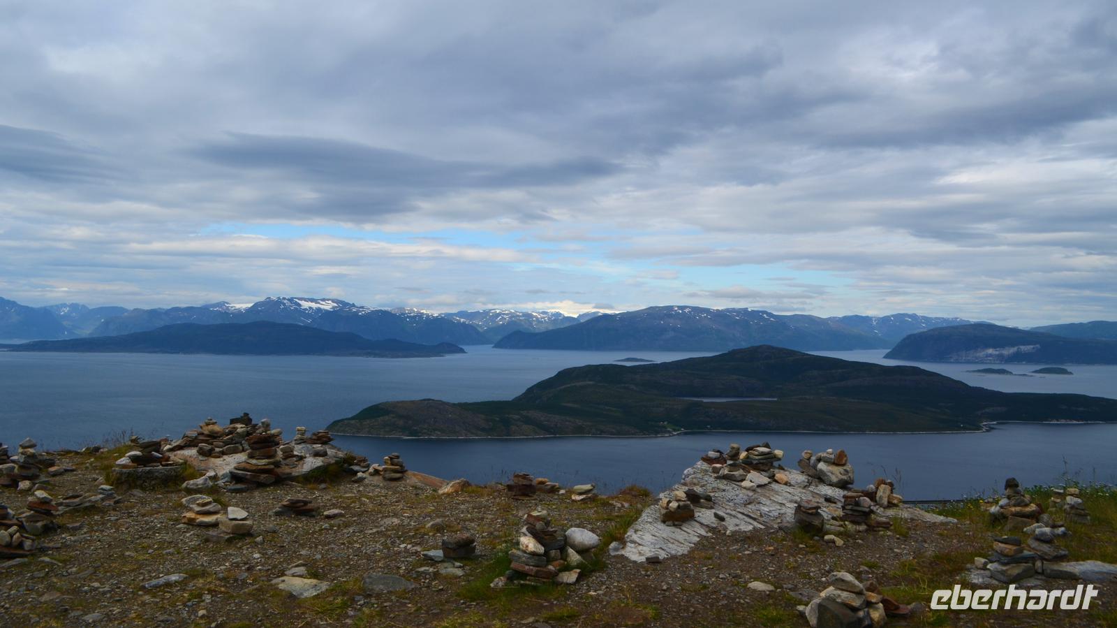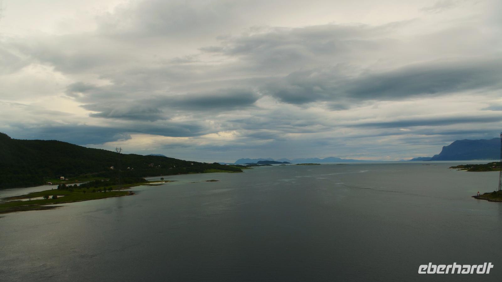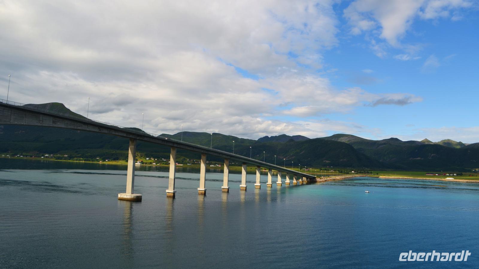 Heute fahren wir durch das sagenumwobene Helgeland - mit der gewaltigen Helgelandbrücke, mit dem prägnanten Bergmassiv der Sieben Schwestern, dem Naturschutzgebiet Vega-Archipel, dem roten Berg, dem Hutberg (Torghatten) - wir sehen endlich einen Elch!