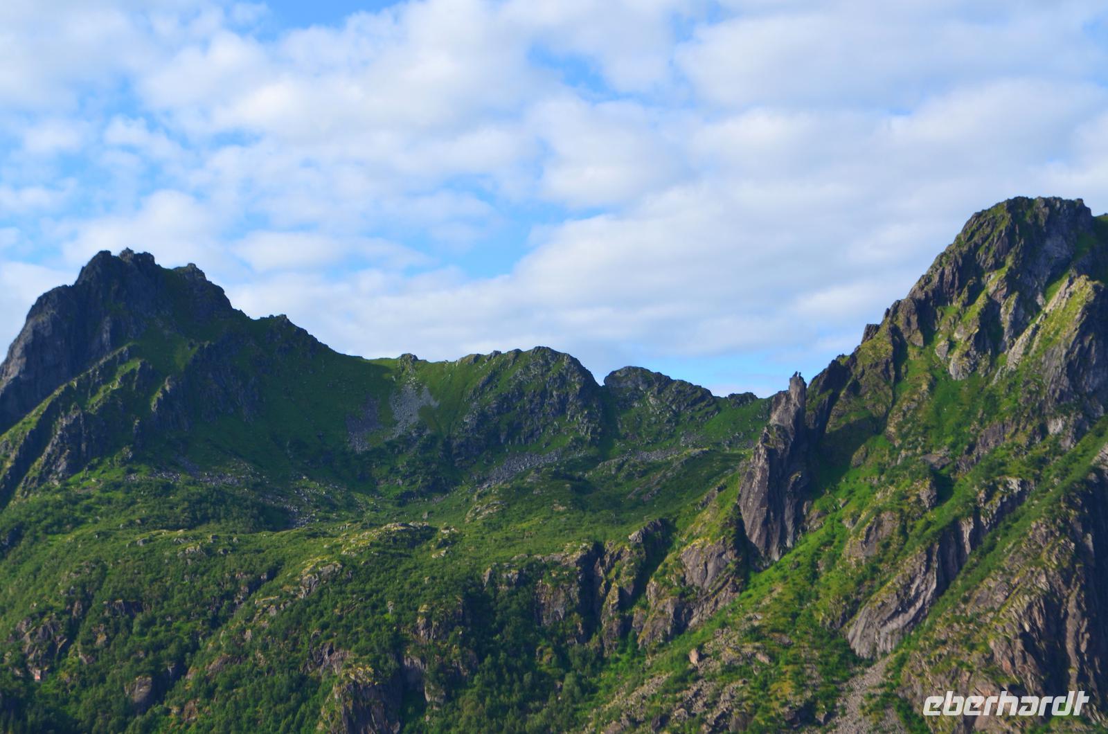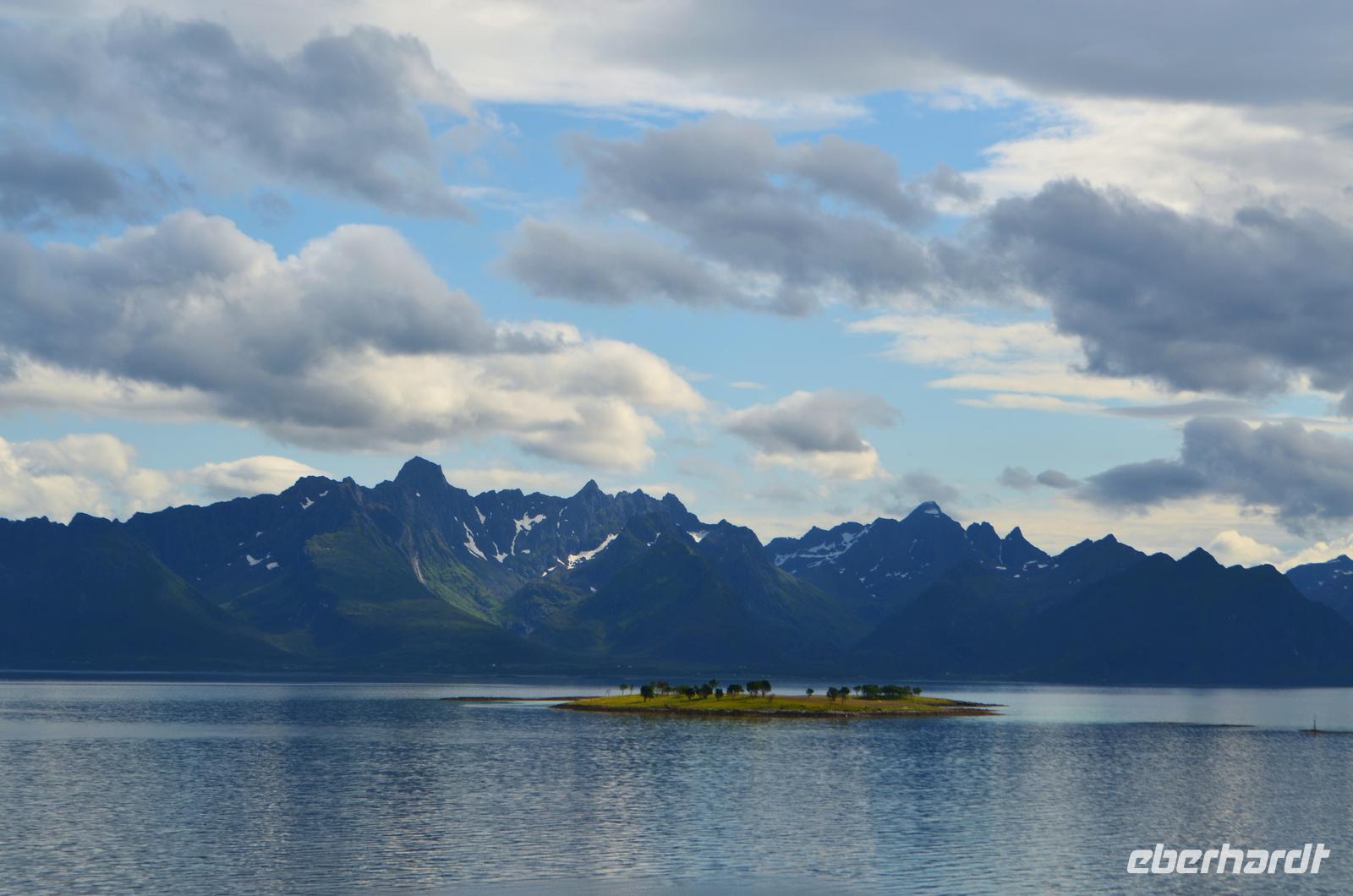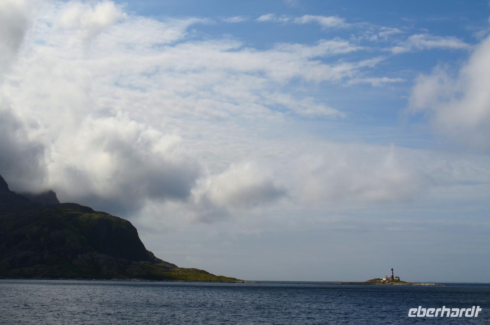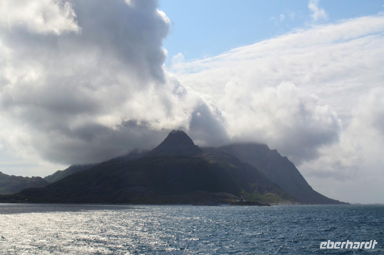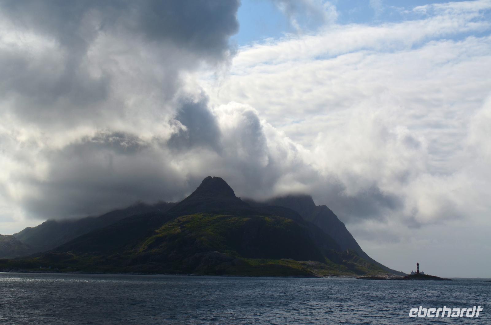 Am Morgen etwas Regen - aber die Sicht auf die grandiose Bergwelt ist frei. Wir fahren am Balsfjord vorbei, weiter durch die Berge und über die Fjelle von Troms gegenüber von Narvik am Ofotfjord entlang und dann - die Vesteralen mit Stockmarknes - dem Hurtigrutenmuseum und guter Sicht auf die Gipfelwelt der Vesteralen und der Lofoten. Unser Hurtigrutenschiff ist eines der modernen Flotte, die M/S „Nordlys" und sie steuert gerade den Hafen an, als wir ankommen. Damit können wir ihre Ankunft noch schön auf unseren Foto- und Filmgeräten festhalten. Der nächste Höhepunkt der Reise steht bevor - die schöne Fahrt durch den Raftsund, hinein in den engen Trollfjord und dann weiter durch die Inselwelt der Lofoten bis Svolvær - herrlicher Sonnenschein jetzt und die Fahrt einfach unbeschreiblich schön.