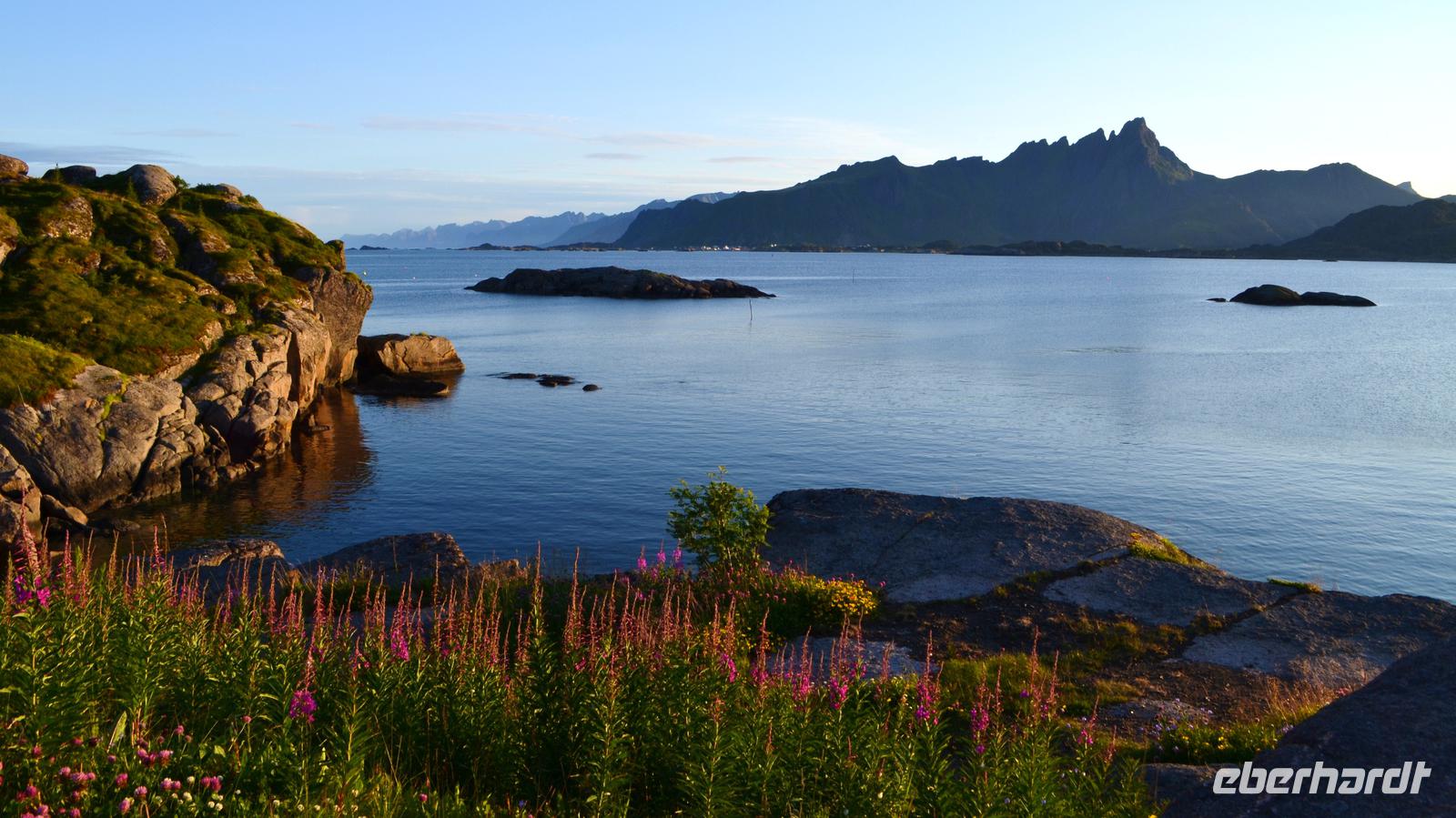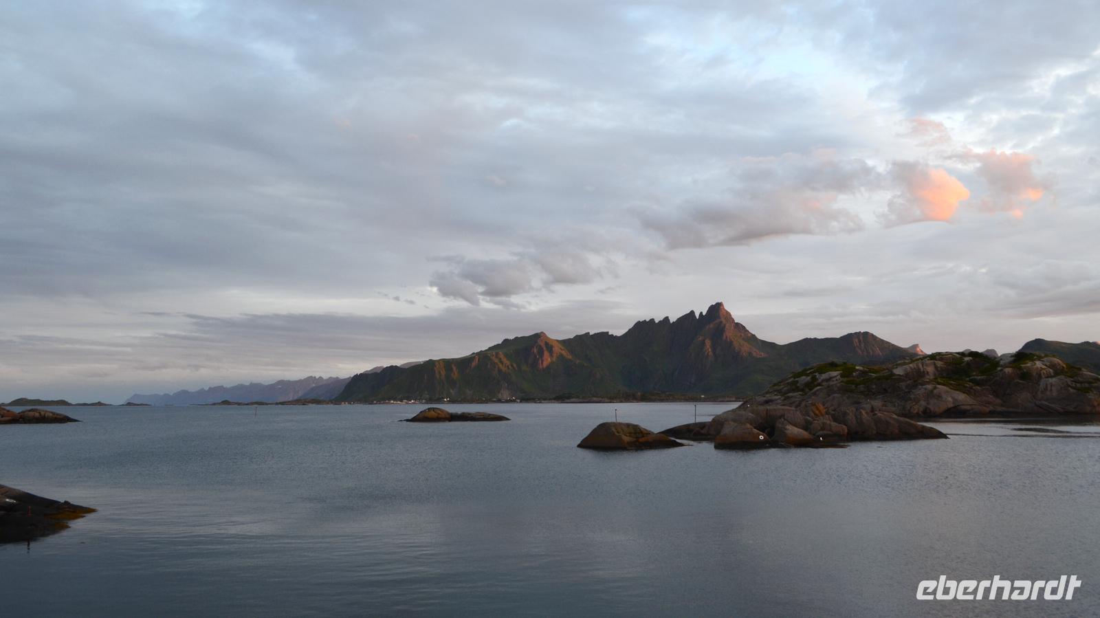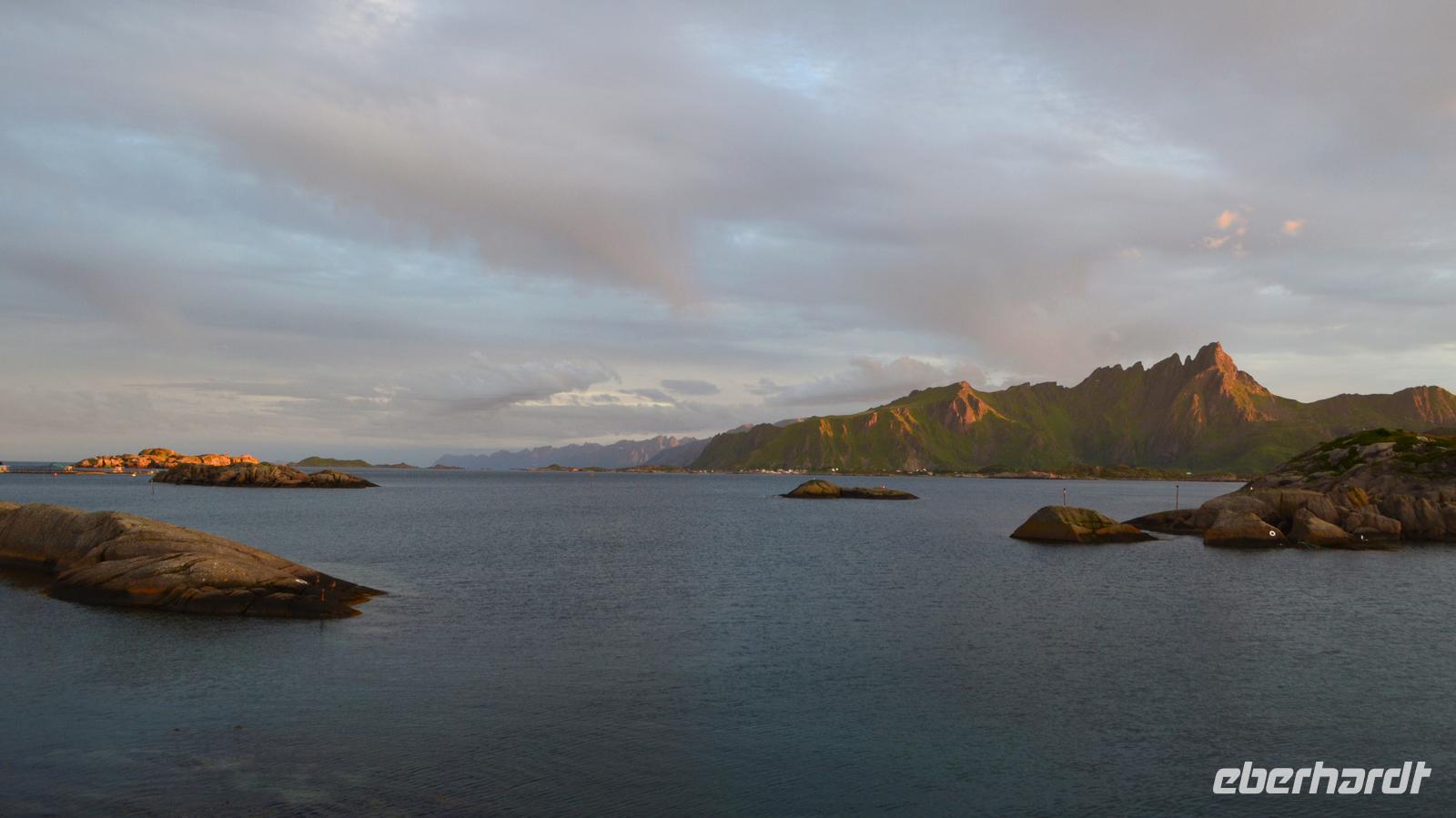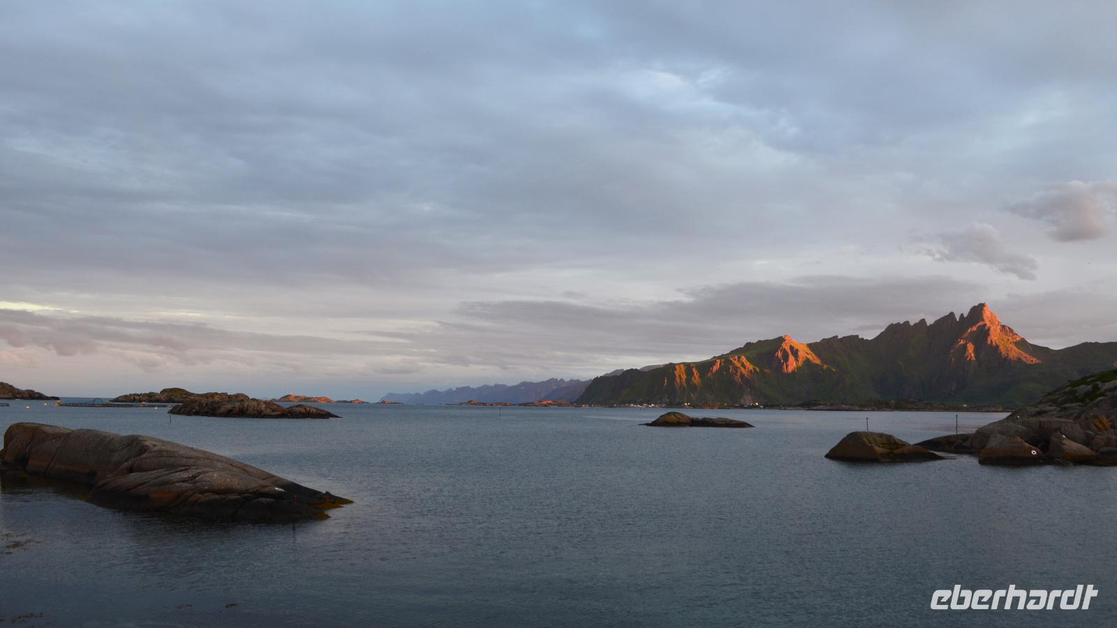 Die Lofoten sind ein weiterer, echter Höhepunkt der Reise, das zeigt sich auch als wir in Svolvaer wieder in unseren Reisebus steigen und zur Übernachtung zu den Rorbuhütten von Mortsund über die Inseln fahren. Die Häuschen mit allem Komfort und dazu die herzliche Begrüßung in Statles Robucenter. Uns fehlt es an Nichts und die Sonne taucht die Landschaft in wundervolles Licht und tolle Farben.
