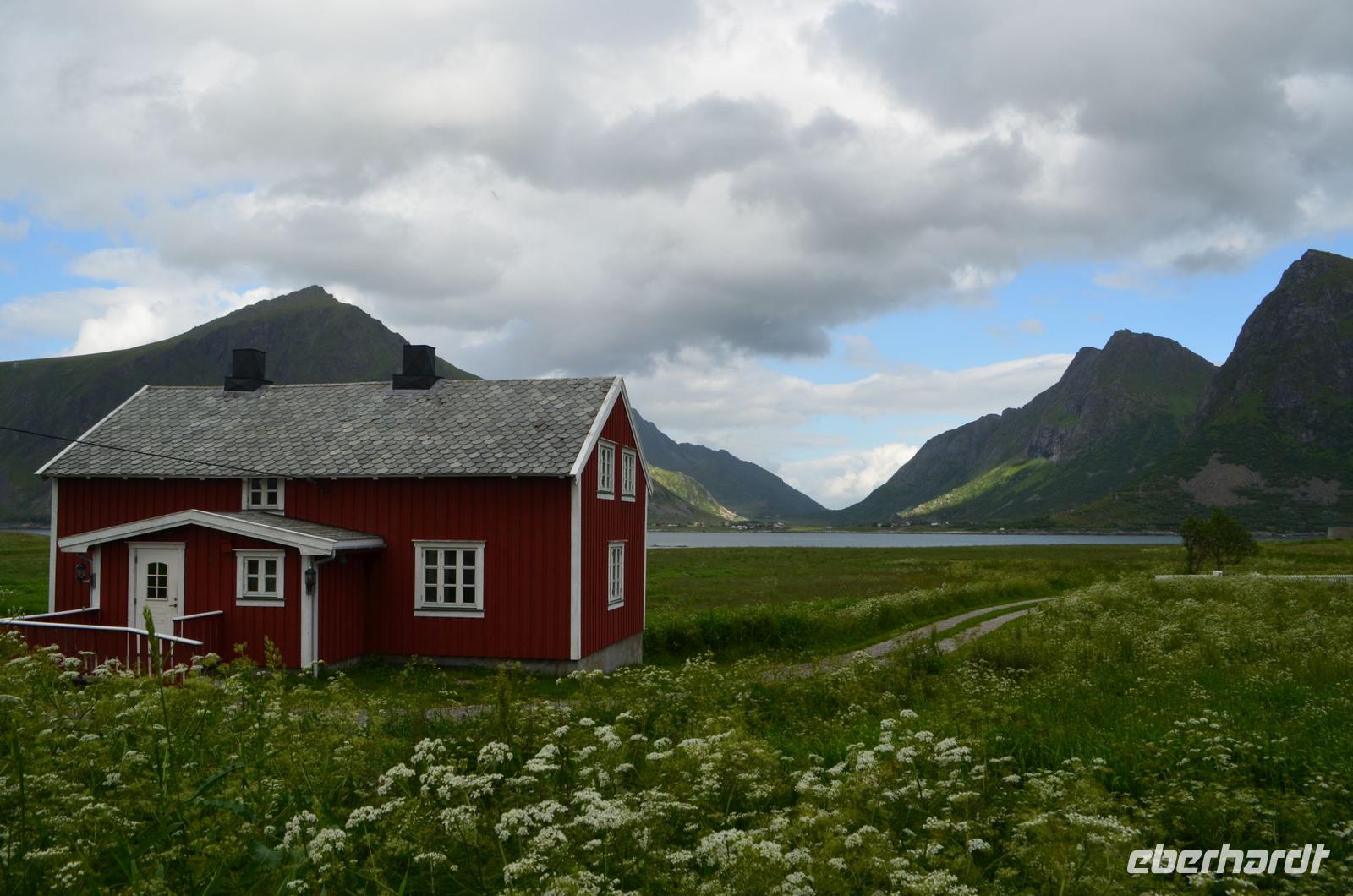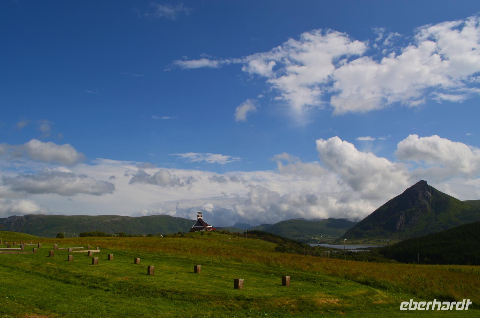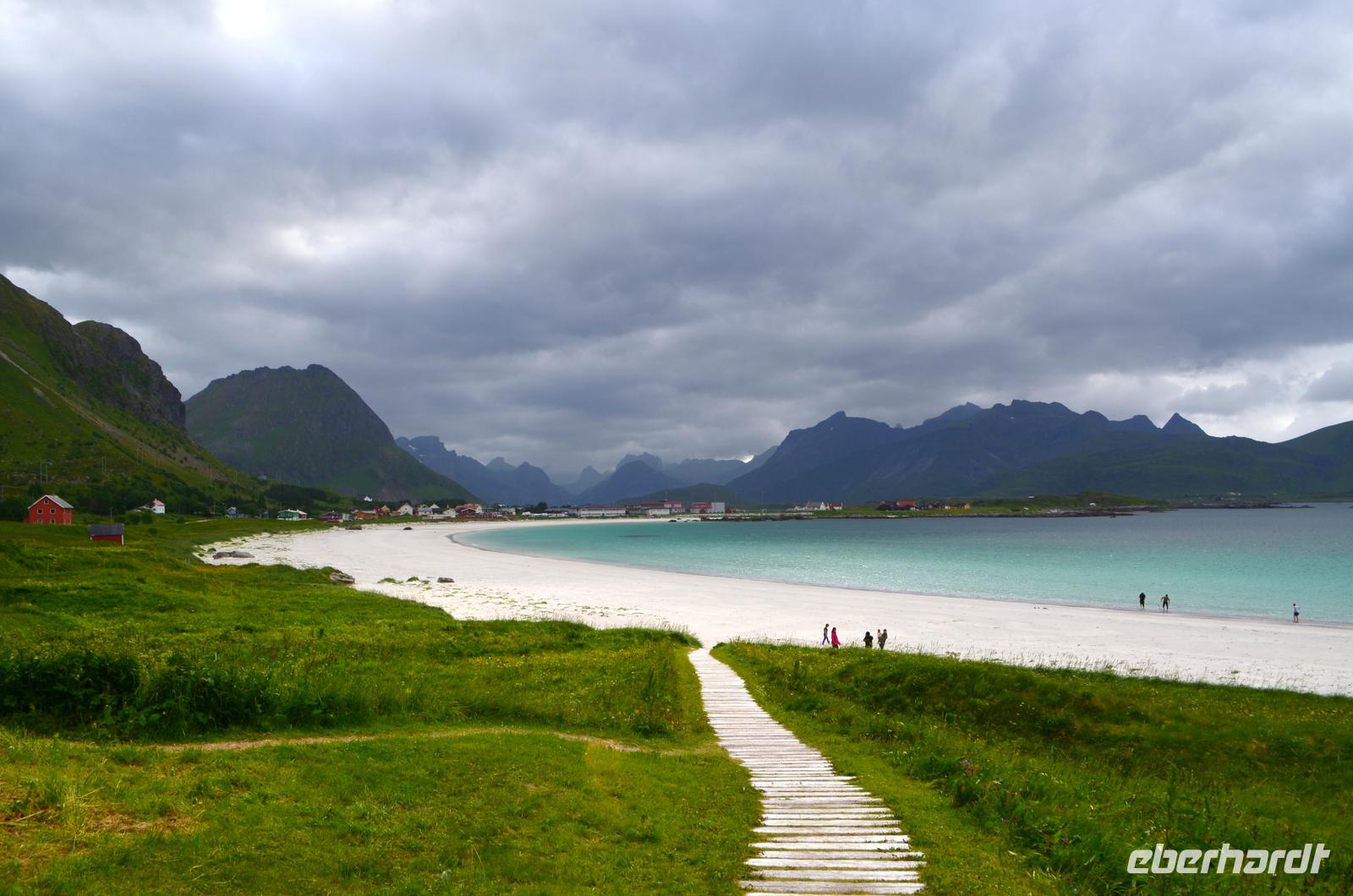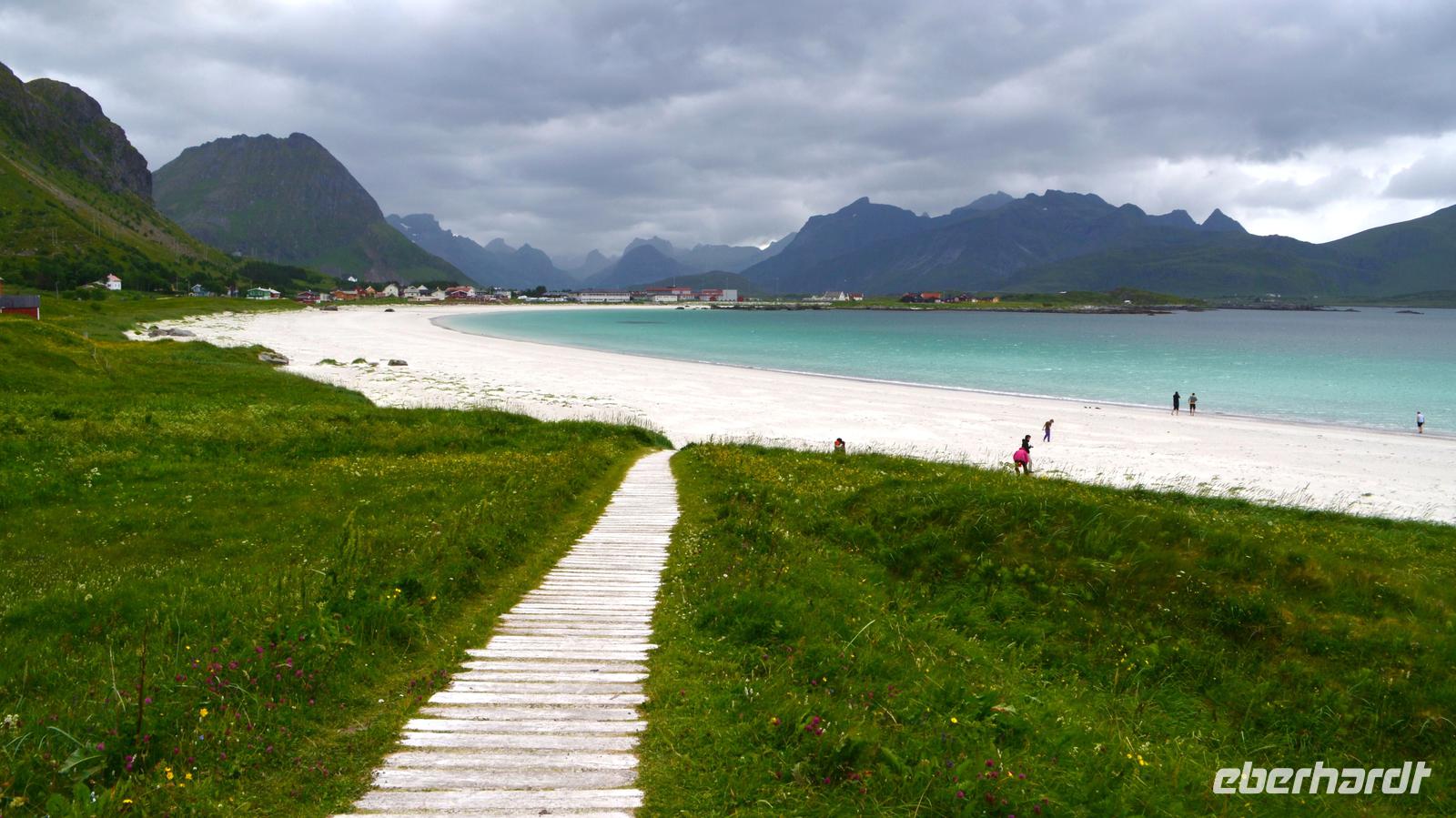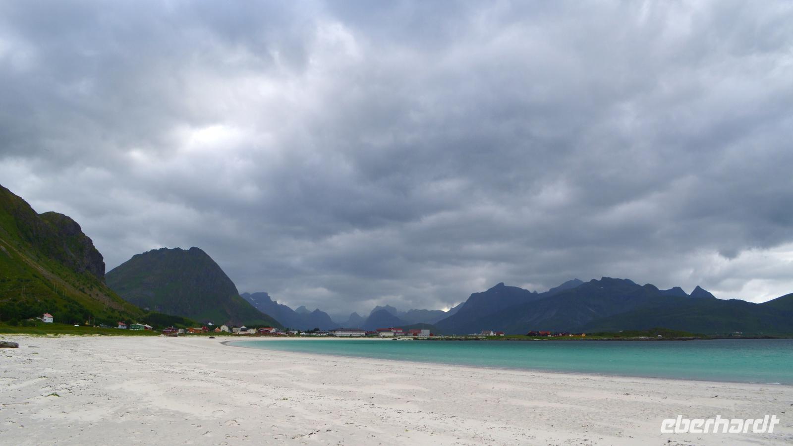 Am Nachmittag dann bei wieder schönem Wetter die Fahrt zu den westlicheren Inseln, die Besichtigung der hübschen Kirche in Flakstad und ein Besuch des herrlichen Sandstrandes von Ramberg.