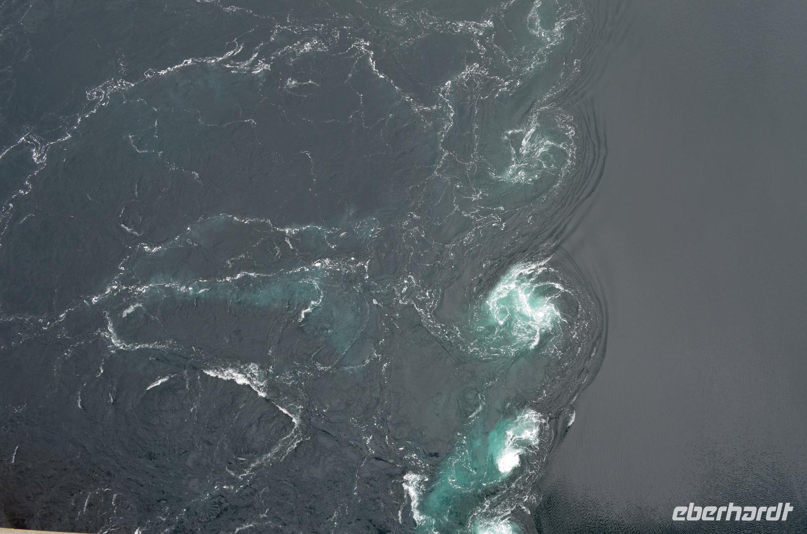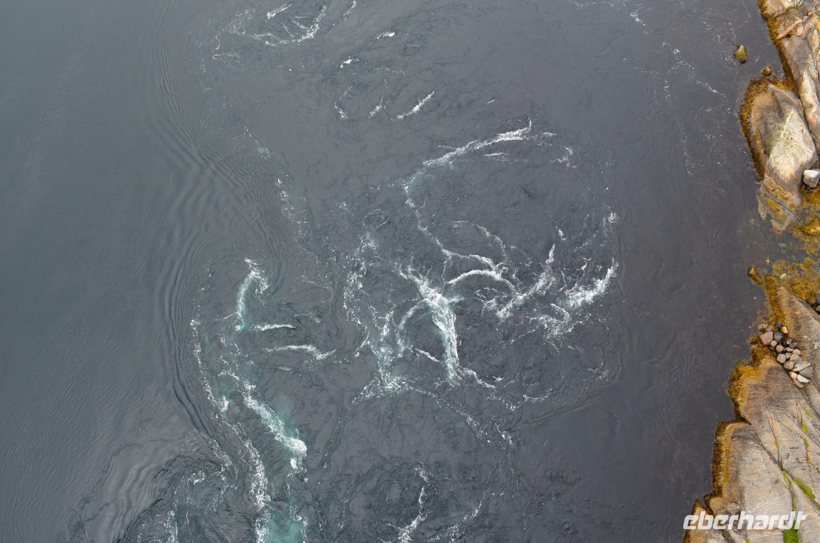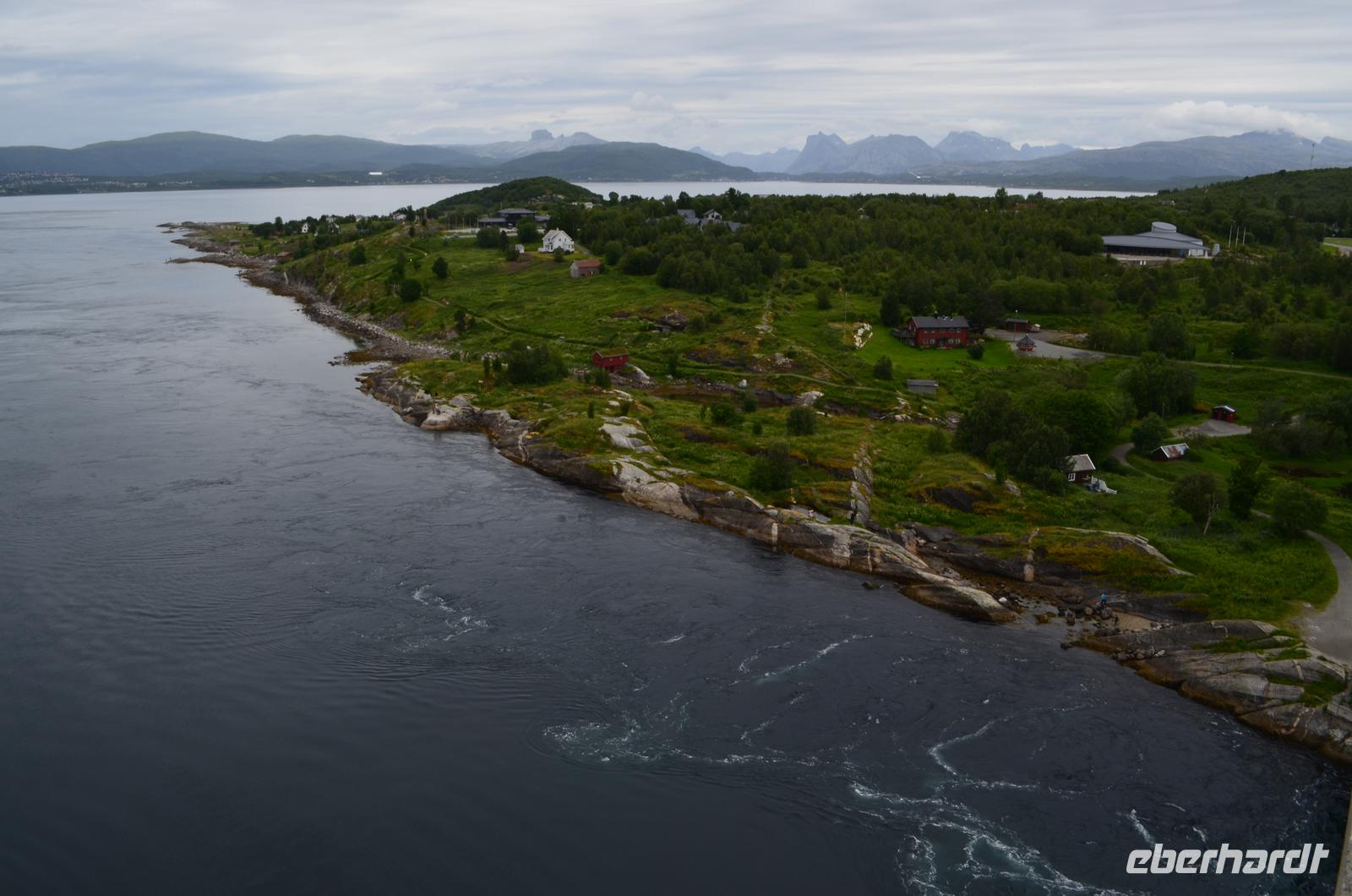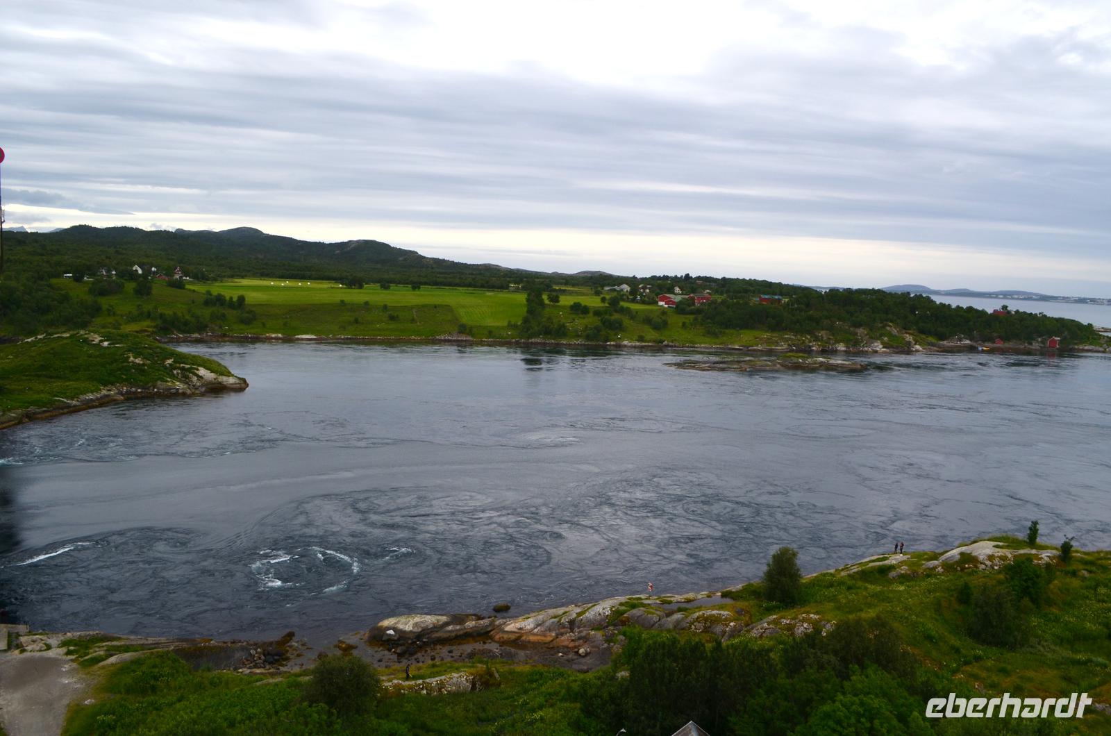 Die weitere Fahrt an den nächsten Tagen abwechselnd mit Bus und Fähren entlang der Küste, zuerst die Überfahrt von Moskenes nach Bodø, die Fahrt zum Saltstraumen - dem größten Gezeitenstrom der Welt. Wir schauen in die reißende Strömung und die schäumenden Strudel.