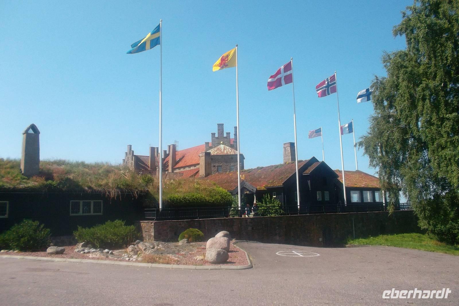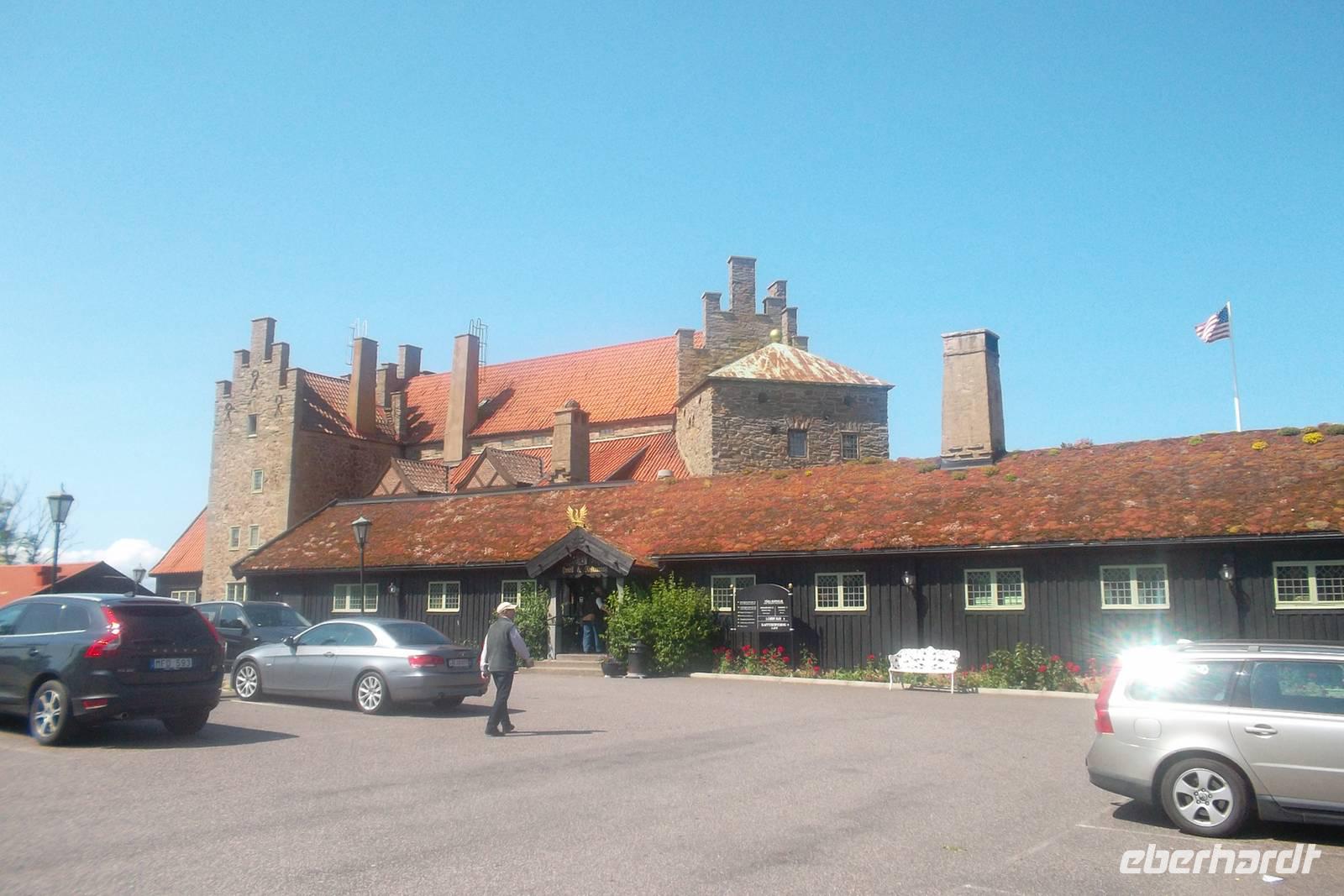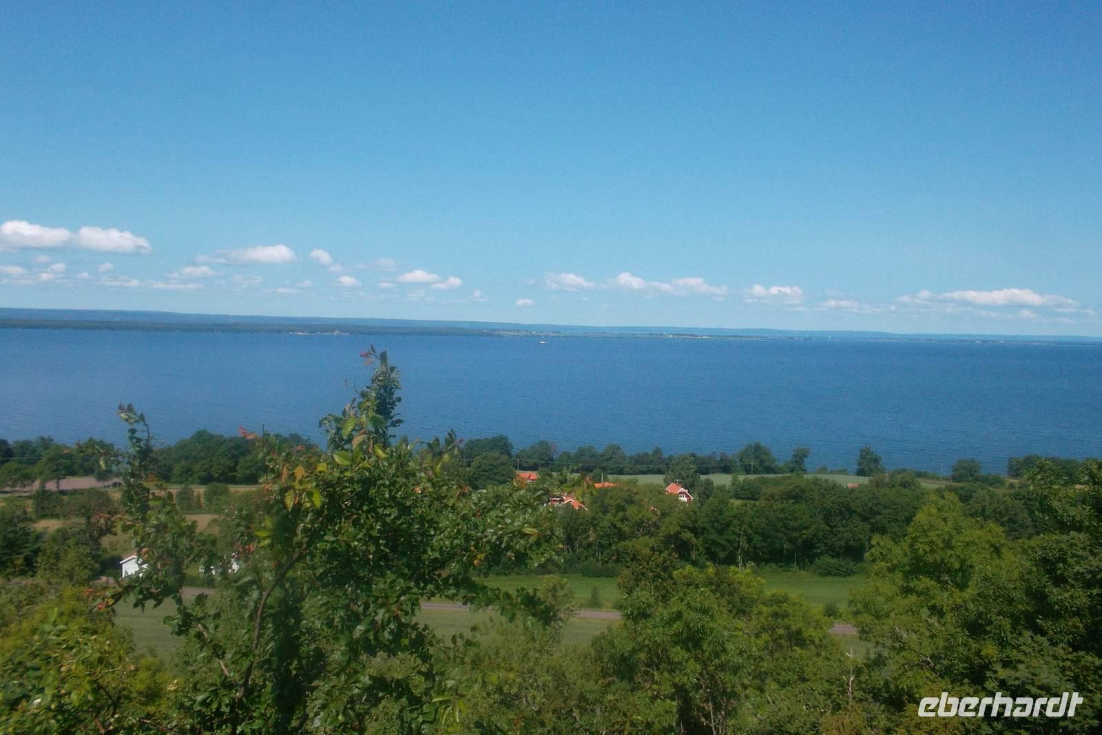 Vorbei am Vergnügungszentrum Liseberg rollten wir quer durch Schwedens Felsen , vorbei an den Städten Borås - bekannt für Textilproduktion - und Ulricehahm nch Jönköping und Husquarna am Vätternsee. Der zweitgrößten See Schwedens ist etwa fünfmal so groß wie der Gardasee und bietet herrliche Ausblicke - wie etwa den an der hübschen Raststätte „Gyllene Yttern". Es ist ein zum Hotel umgebautes alten Schloß, von dessen Terrasse man tolle Blicke zur Insel Visingö hat, wo wir die erste Kaffee- und Toilettenpause des Tages einlegten.