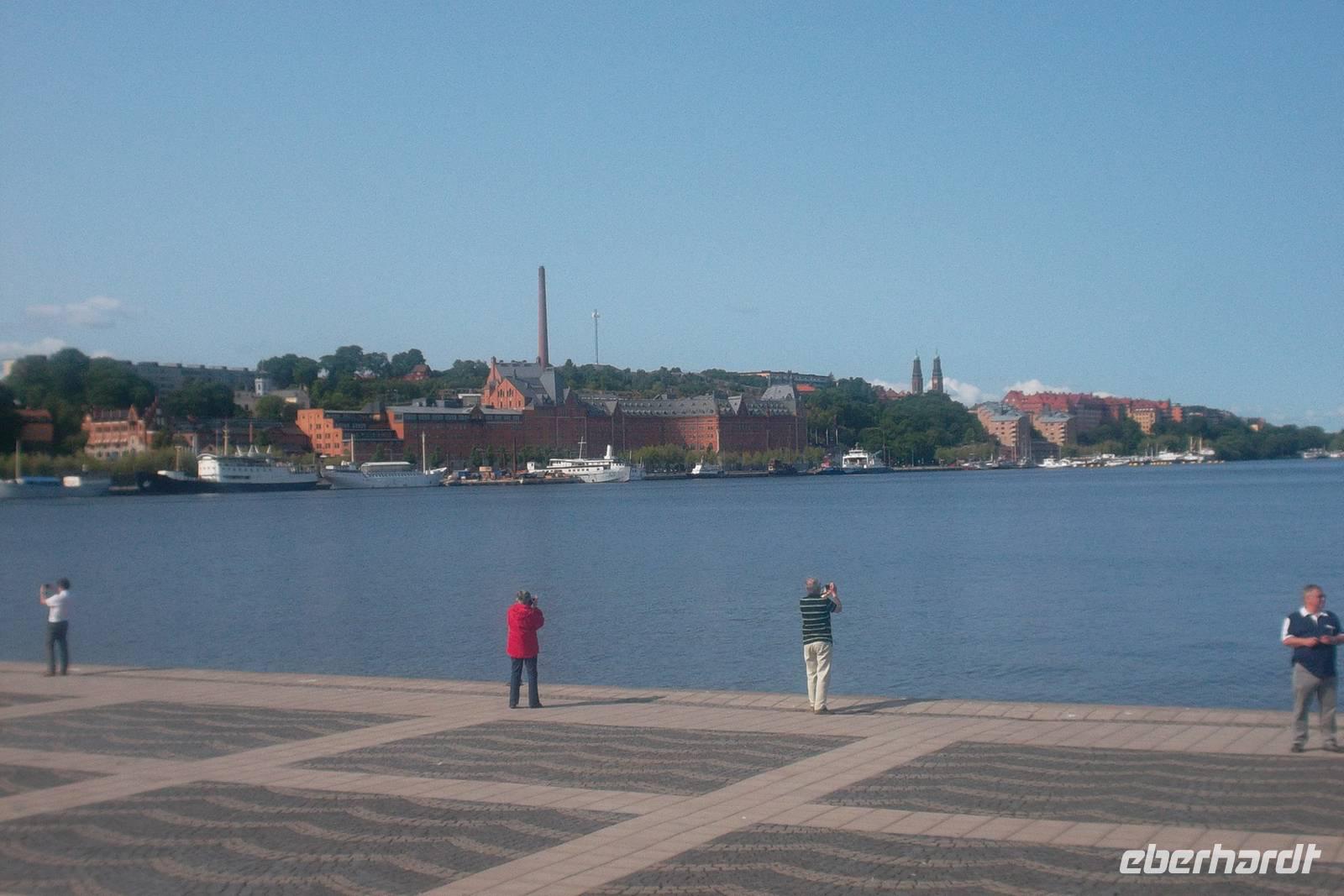 Eine Stadtrundfahrt mit einer recht und kompetenten Stadtführerin began den heutigen Tag und wir trafen „Gun", ein „echtes Stockholmer Mädel" am Rathaus, Das bildete auch den ersten Besichtigungspunkt, bevor wir durch die Neustadt fuhren und dann vorbei an Parlament und Königsschloß zunächst den schönsten Aussichtspunkt über die schwedische Hauptstadt im Ortsteil Södermalm erreichten. Von hier hat man einen tollen Überblick über ganz Stockholm man sieht sowohl Altstadt und Schloß als auch die Neustadt, die verschiedenen mit der Seefahrt verbundenen Einrichtungen und die „Museumsinsel" mit Nordischem und Wasa-Museum und das Vergnügungszentrum Gröna Lund. Beim Halt vor dem Schloss sahen wir bei einem kleinen Bummel durch die die Altstadt die kleinste Statue Schwedens, den Alten Markt mit der Schwedischen Akademie, wo jährlich über den Literatur-Nobelpreis entschieden wird und einen historischen Runenstein, in die Hauswand eines Altstadtgebäudes eingelassen. Die Domkirche steht neben dem gewaltigen Schloss, einem der größten Europas, wo wir uns noch den Schlosshof ansehen konnten. Krönender Abschluss unserer Stockholm-Tour war natürlich das Wasa-Museum. Wie in jedem Jahr waren alle Teilnehmer begeistert, denn hier wird ein komplettes Schiff aus der Zeit des Dreißigjährigen Krieges gezeigt, Das hervorragend gestaltete Museum beherbergt die „Wasa" - das 1628 neuerbaute Flaggschiff und der Stolz der schwedischen Flotte, das aufgrund von Baufehlern bereits auf ihrer Jungfernfahrt im Stockholmer Hafen sank. Das jahrhundertelang vom Schlamm und Wasser der Ostsee konservierte Schiff wurde Anfang der sechziger Jahre des 20. Jahrhunderts nahezu völlig intakt gehoben, Als Paradebeispiel für tolle Museumsgestaltung erzählt die fast zur Kultstätte mutierte Einrichtung die Geschichte von Bau, Sinken und Hebung des Schiffes, das das gesamte Gebäude füllt und nahezu mit allen Sinnen genossen werden kann.