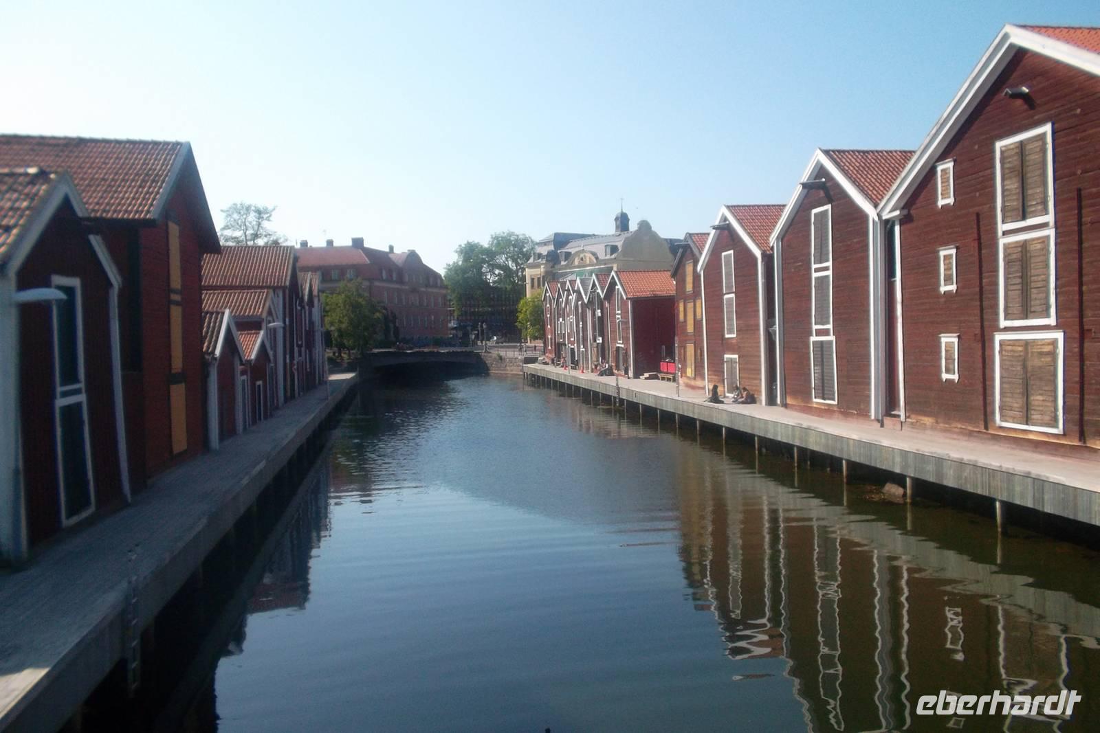 Vom Wasa-Museum brachen wir auf gen Norden, denn auch heute hatten wir noch einige Kilometer vor uns. Vorbei an Uppsala, Gävle und Söderhamn ging es immer geradeaus, unterbrochen von einer Pause an einer Raststätte, in der ein chinesisches Restaurant höchst aufwendig ein Stück China mitten in Schweden nachgestaltet hatte. Ein besonderes Extra im Sinne der Eberhardtschen „Richtig Reisen!"-Philosophie machten wir noch zur letzten Pause - einen Abstecher zu den Hafenspeichern von Hudiksvall. Als einzige „historische" Überbleibsel von diesem einst wichtigen Holzhafen an der Ostsee erinnern sie an das Ende des 18. Jahrhunderts und stehen mit ihrem besonderen Ambiente komplett unter Denkmalschutz. Abends erreichten wir dann Sundsvall, in deren Stadtzentrum unser Hotel lag - Grund genug, um nach dem Abendessen noch einen Spaziergang zum Hauptplatz der ganz im Jugendstil gestalteten Stadt zu machen.