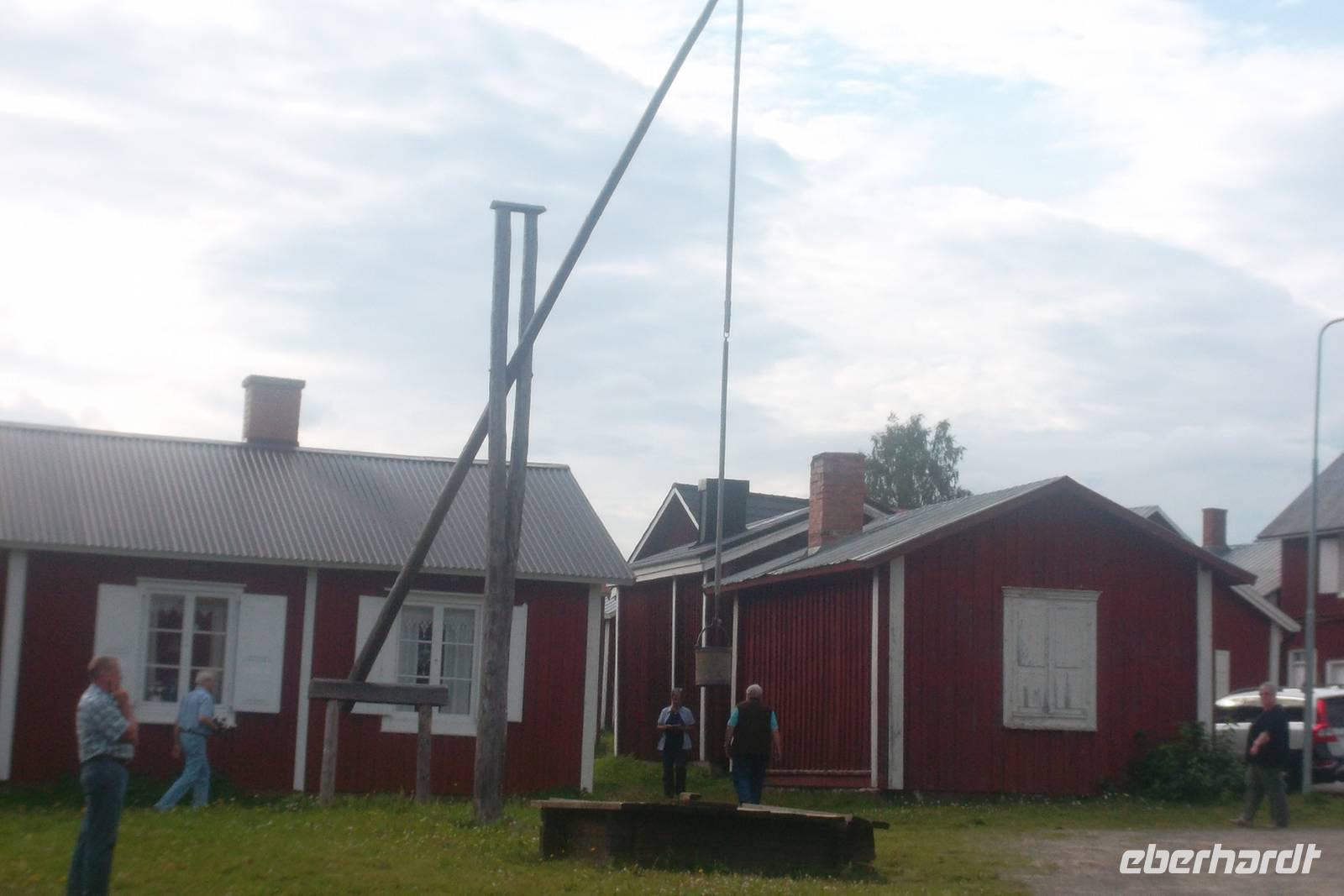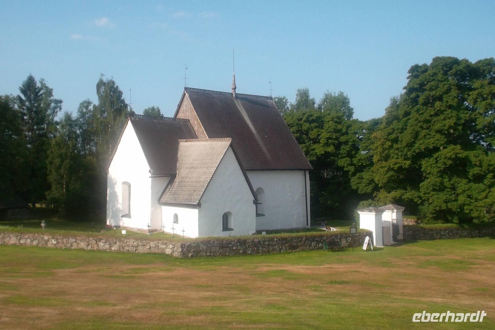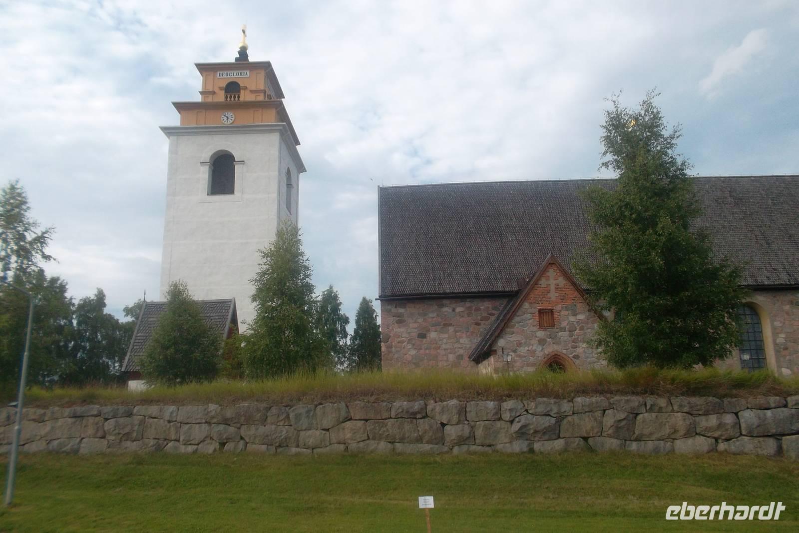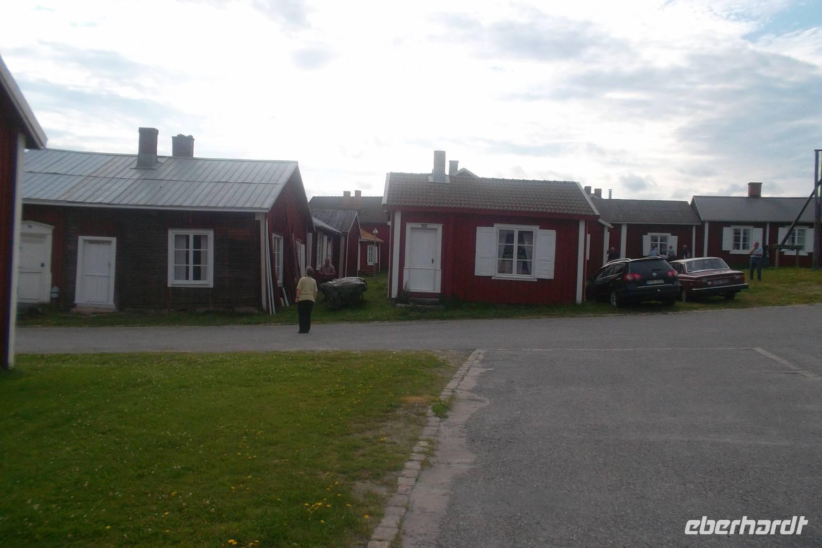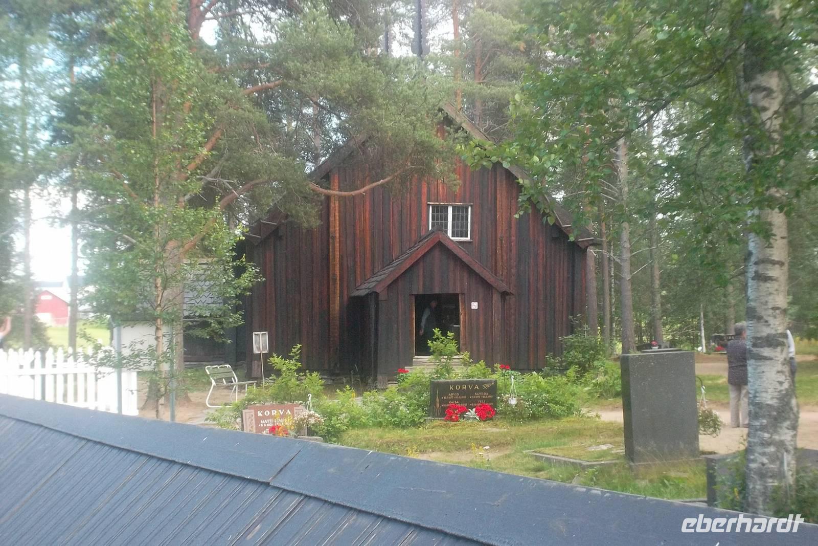 Die Kaffeepause am Nachmittag sah uns bei einem Abstecher in das interessante Kirchendorf Lövanger. Die Leute in Schweden und Norwegen wohnten - und wohnen bis heute - weit verstreut in ihren Gehöften. Die alten Transportmittel konnten nicht solche Strecken wie heute überwinden und daher war es nicht jeden Sonntag für alle entfernt wohnenden Bauern möglich, die Kirche zu besuchen. Daher wurden früher nur zu bestimmten Tagen oder Kirchenfesten allgemeine Gottesdienste abgehalten, die alle Streugehöfte ansprachen. Zu diesem Anlass gab es ein allgemeines Treffen der weit verstreut Wohnenden nur zweimal im Jahr - im Sommer (einfach) und im Winter (schwierig!), wo die oft strengen Witterungsverhältnisse Reisen mitunter gar nicht erlaubten. Daher besaß jede Familie ein Häuschen oder Schuppen unmittelbar neben der Kirche. Diese kleinen Holzgebäude wurden als Vorratskammer und als Wohnstätte während der Kirchfeste genutzt. Oft - so in Lövanger - haben sich ganze Siedlungen historischer Holzhäuser erhalten, die bis heute einen interessanten Einblick in die skandinavische Geschichte bieten.