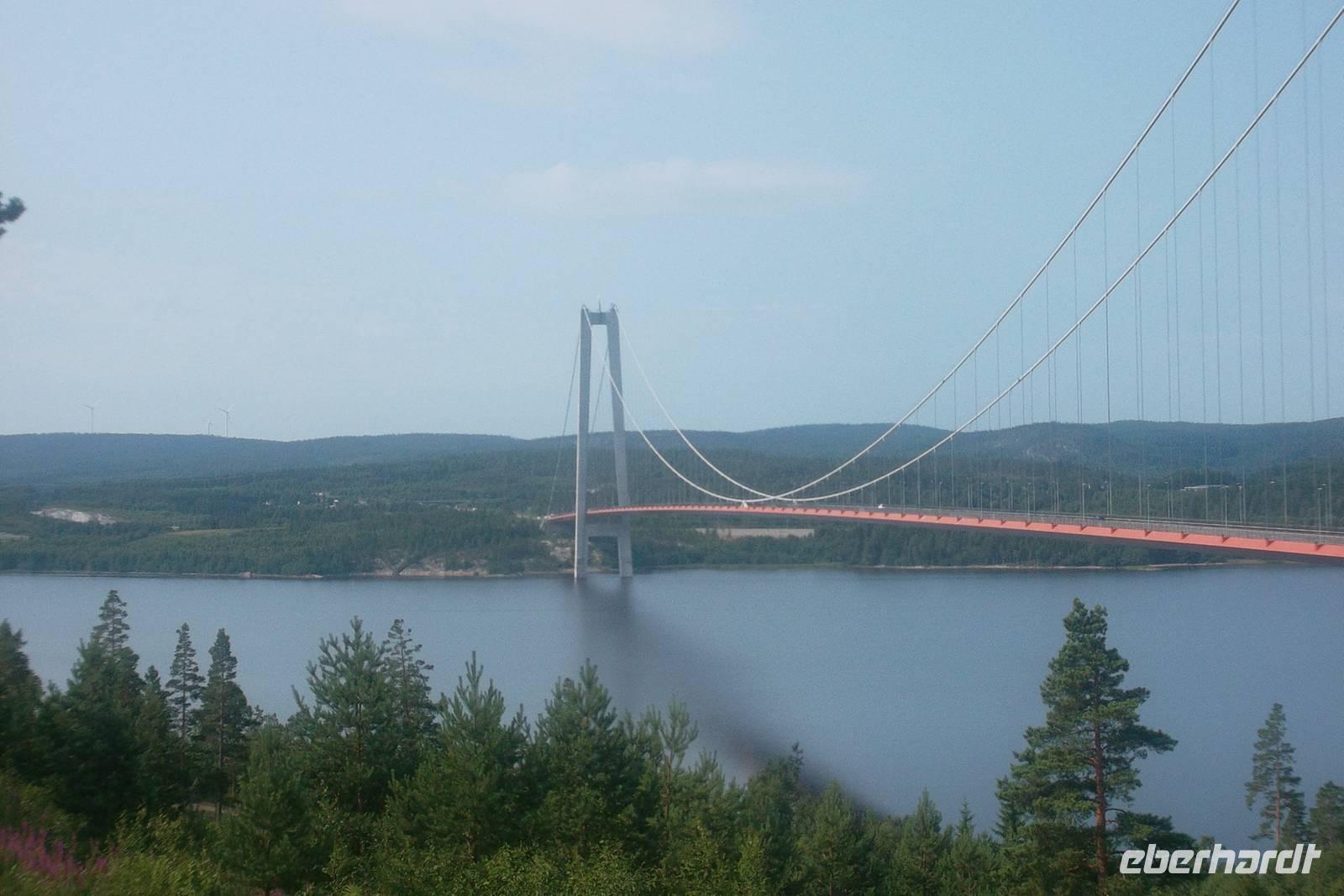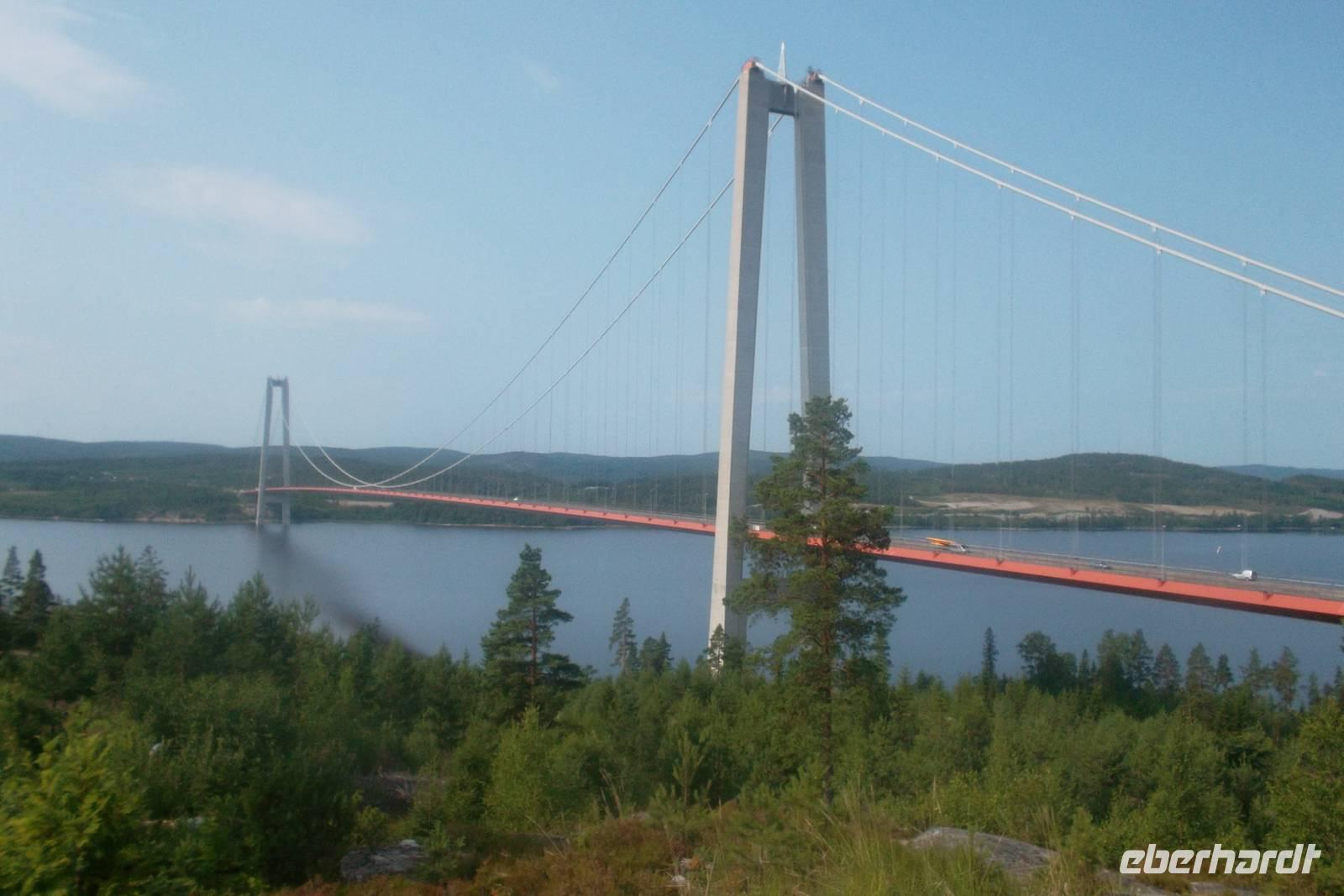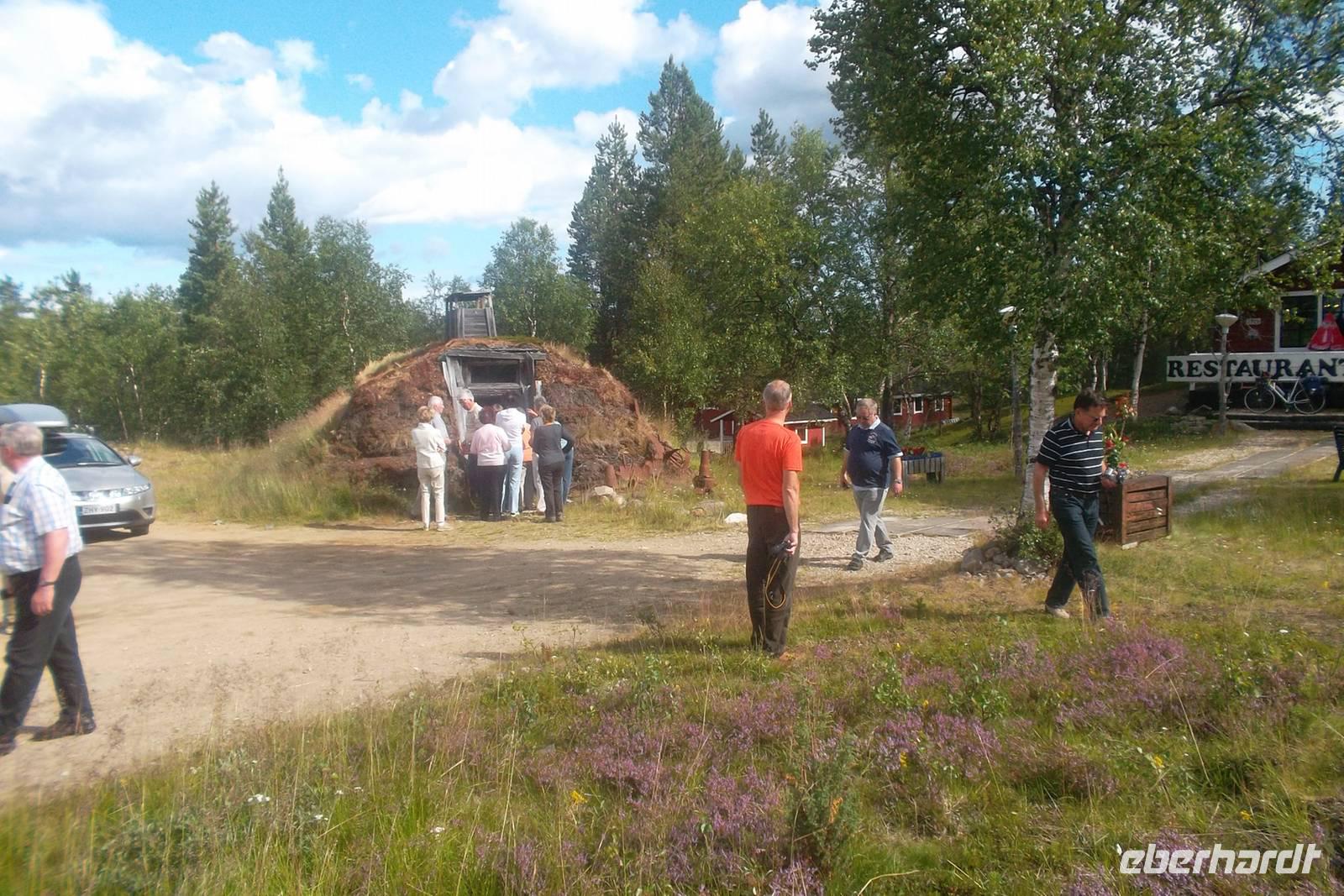 Nach dem Frühstück erlebten wir als Extra-Stopp die historische Kirche von Alnö. Sie zeigt noch in ursprünglicher Gestaltung den Aufbau eines skandinavischen Pfarrhofs - eines Hembygdagård - mit Festplatz und alten Blockhäusern. Daneben stand eine der ältesten Steinkirchen des Landes, traditionell mit Schindeln gedeckt. Auf der Weiterfahrt erlebten wir das geologisch und geografisch außerordentlich interessante Gebiet der „Höga Kusten". Am Ende der letzten Eiszeitstieg der Meeresspiegel der Weltmeere um fast siebzig Meter, aber noch eine weitere Erscheinung veränderte die Landkarte Europas: Das Gewicht der Vereisung, das dann beim Abschmelzen der Milliarden Kubikmeter Eis/Wassrer umfassenden Gletscher plötzlich verschwand, löste die sogenannte nacheiszeitliche Landhebung aus, die sich nirgendwo besser erklären und anschauen lässt wie im Nationalpark „Höga Kusten". Wir durchfuhren ihn mit Halt an der längsten Hängebrücke Schwedens, der Höga-kusten-bru, die mit 1867 m Länge eine der größten Brücken Europas ist. Mehr als 200 m ist das Land nach der letzten Eiszeit - durch den Gegendruck des zähflüssigen Erdinneren - gehoben worden, am höchsten Punkt, dem Skuleberg, sogar 285 m. Nach langer Fotopause und der Möglichkeiten, sich in der Tourist-Information sachkundig zu machen, setzten wir unsere Nord-Reise fort.