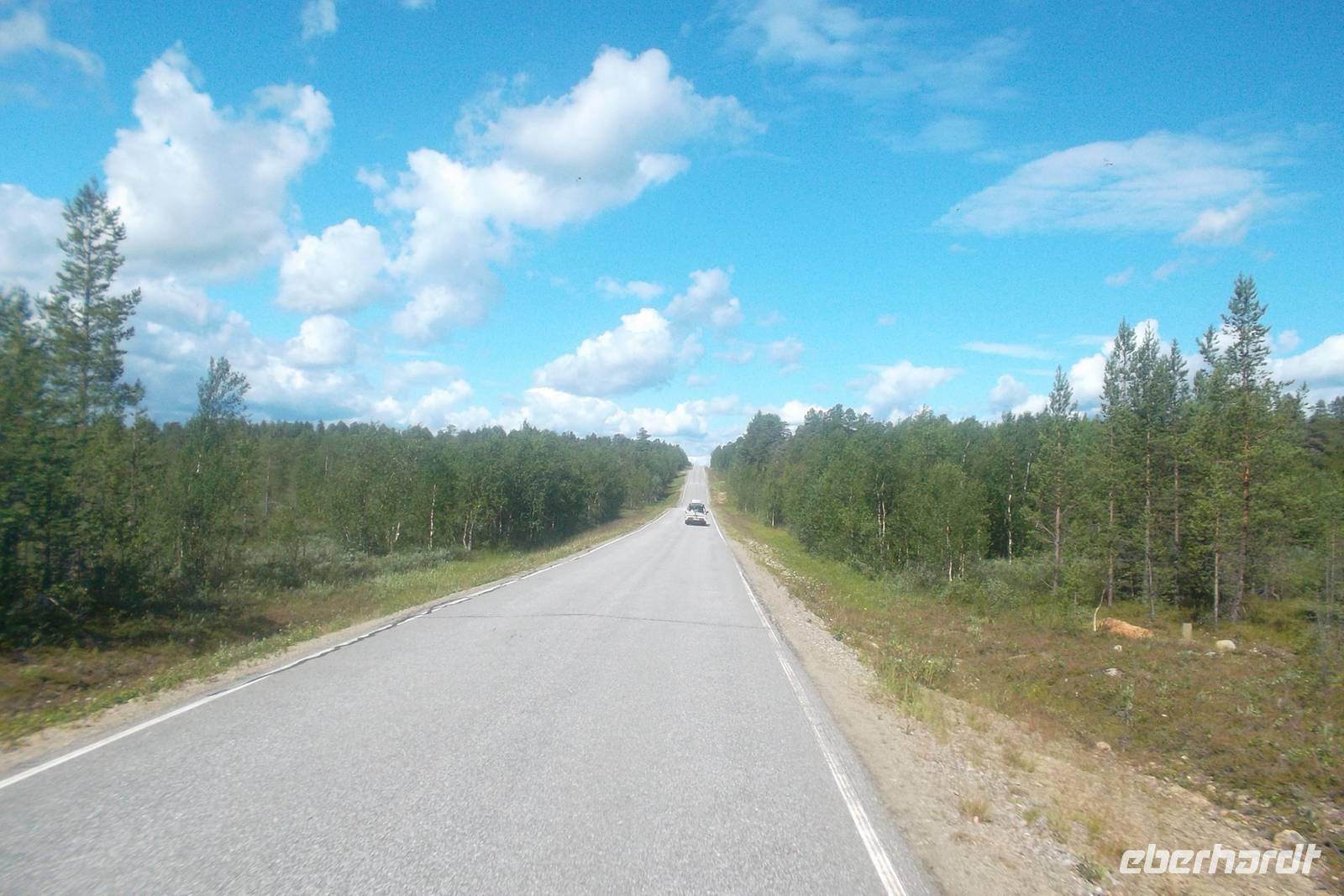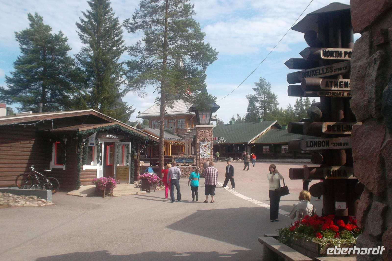 Auf dem heutigen Weg nach Finnland nutzten wir weiter die E 4 um den Nordrand des Ostseeteiles Bottnischer Meerbusen und ich erzählte schon einiges Zu Lappland, der Region, in die wir hineinfuhren. An der Grenze legten wir auf der finnischen Seite des Grenzflusses Torneälv - oder Tornijoki auf finnisch - eine Pause ein und stellten unsere Uhren vor, denn es gibt eine Stunde Zeitverschiebung zwischen schwedischer und finnischer Zeit. Dann ging es weiter in Richtung Polarkreis, nach Rovaniemi, dem Hauptort von Finnisch-Lappland. Die einzige Stadt in diesem Landesteil liegt etwas südlich des Polarkreises. Seit den dreißiger Jahren glaubt man in Finnland - aufgrund einer damals populären Radiosendung - dass sich nördlich von Rovaniemi direkt am Polarkreis des Weihnachtsmannes Domizil und Werkstatt befinden. Während andere seine Heimat am Nordpol vermuteten, hatte damals ein findiger Rundfunksprecher erklärt, durch den in der Nähe gelegenen „ Ohrenberg" (den Namen hat er, weil seine Form an ein menschliches Ohr erinnert), würde der Weihnachtsmann zu Weihnachten die Wünsche aller Kinder erfahren. Diese Auffassung wurde so populär, dass der Weihnachtsmann direkt am Polarkreis ein Blockhütten-Dorf bekam, das heute eine der großen Attraktionen im Norden Finnlands ist. Hunderttausende Gäste sehen sich die „Weihnachtsmann-Werkstatt" jedes Jahr an und natürlich hat sie auch in unserem Programm ihren Platz und unsere Gäste bekamen viel Zeit und Gelegenheit, sich im Postamt des Weihnachtsmannes jetzt schon einen Teil ihrer Weihnachtspost zu erledigen, typische Souvenirs zu kaufen oder sich die „Wichtelgrotte", im Museum , den „Regulator für die Erdumdrehung" anzusehen und natürlich wenn gewünscht für ein Foto mit dem „echten" Weihnachtsmann zu posieren. Auch Fotos vom genauen - übrigens auf dem Boden in mehreren Sprachen aufgemalten - Polarkreis gehören hier bei diesem langen Stopp beim Weihnachtsmann zu den Dingen, die man einfach tun muss!