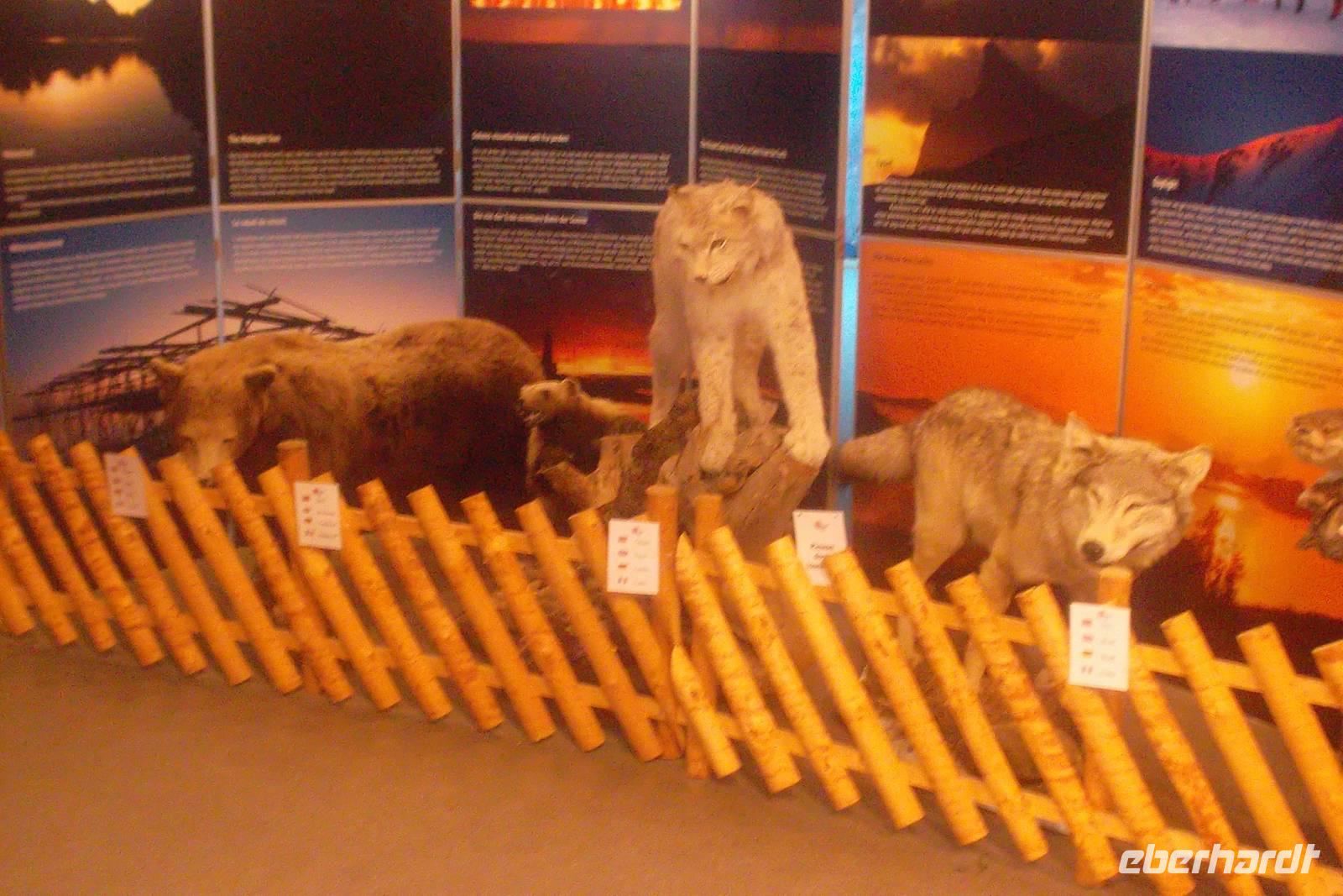 Nachmittags erreichten wir das Festland und fuhren durch Bodø und Fauske zur E 6 und diese weiter nach Süden. Am späten Nachmittag legten wir noch einen Stopp am Polarkreiszentrum ein. Hier im großen Souvenirgeschäft gibt es seit kurzem eine Ausstellung, die alle Tiere der Polarregion in ausgestopftem Zustand zeigt. Nach Aufenthalt hier luden Bus-Chauffeur Gerd Köppe und ich im Namen von Eberhardt TRAVEL zu einem Glas Sekt ein. Wir erhoben unsere Becher auf den Abschluss eines überaus gelungenen Aufenthalts in der Polarregion mit zahllosen Höhepunkten. Später erreichten wir unser Hotel „Meyergården, gelegen im Zentrum der Industriestadt Mo i Rana nahe dem Ranafjord.