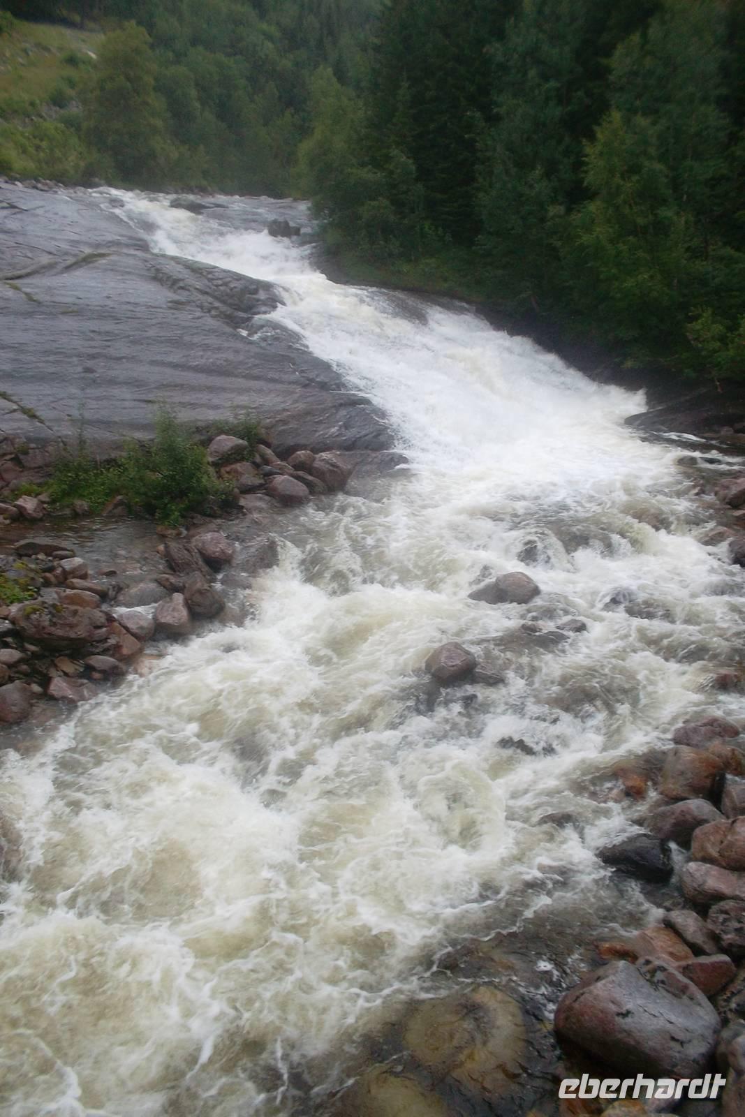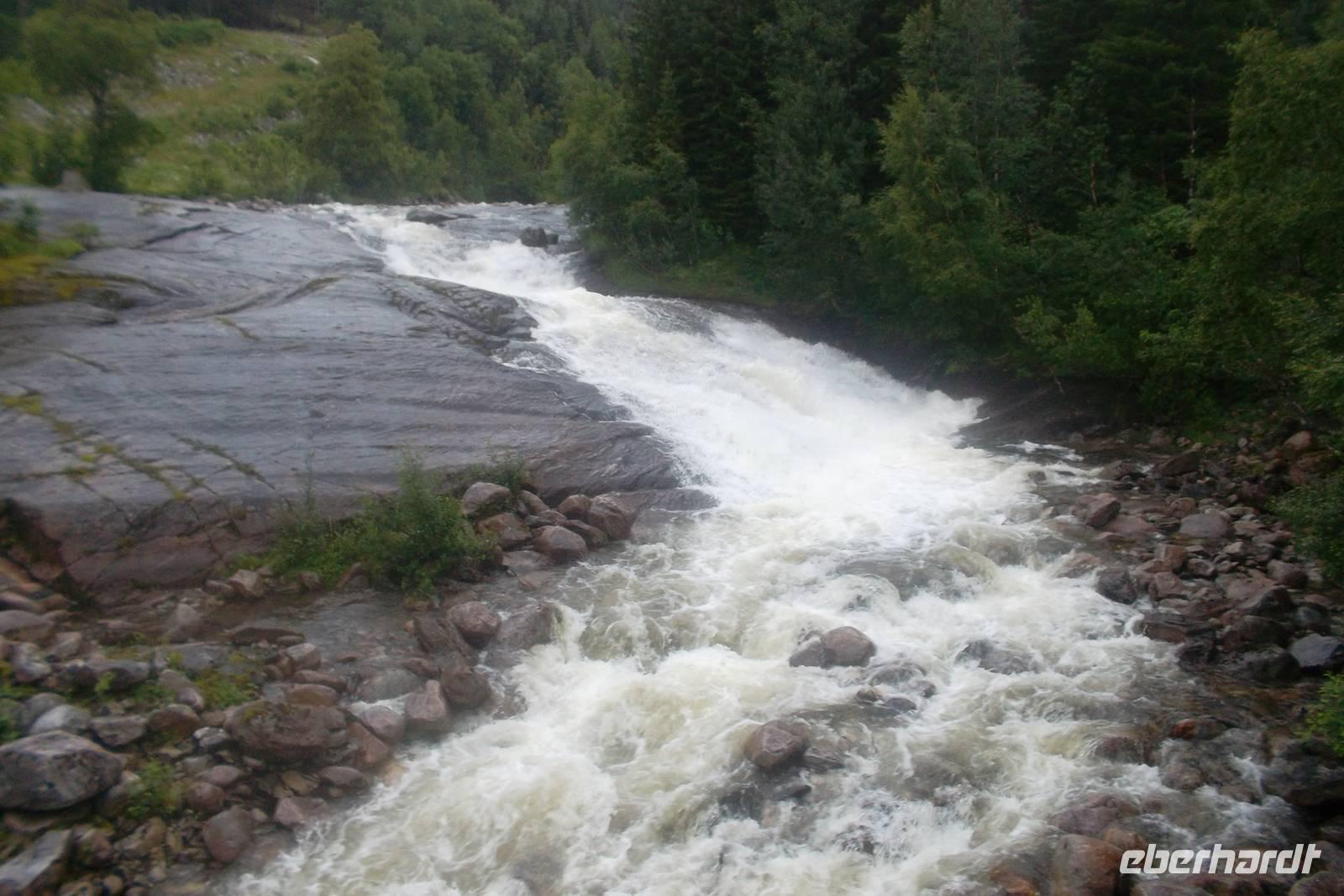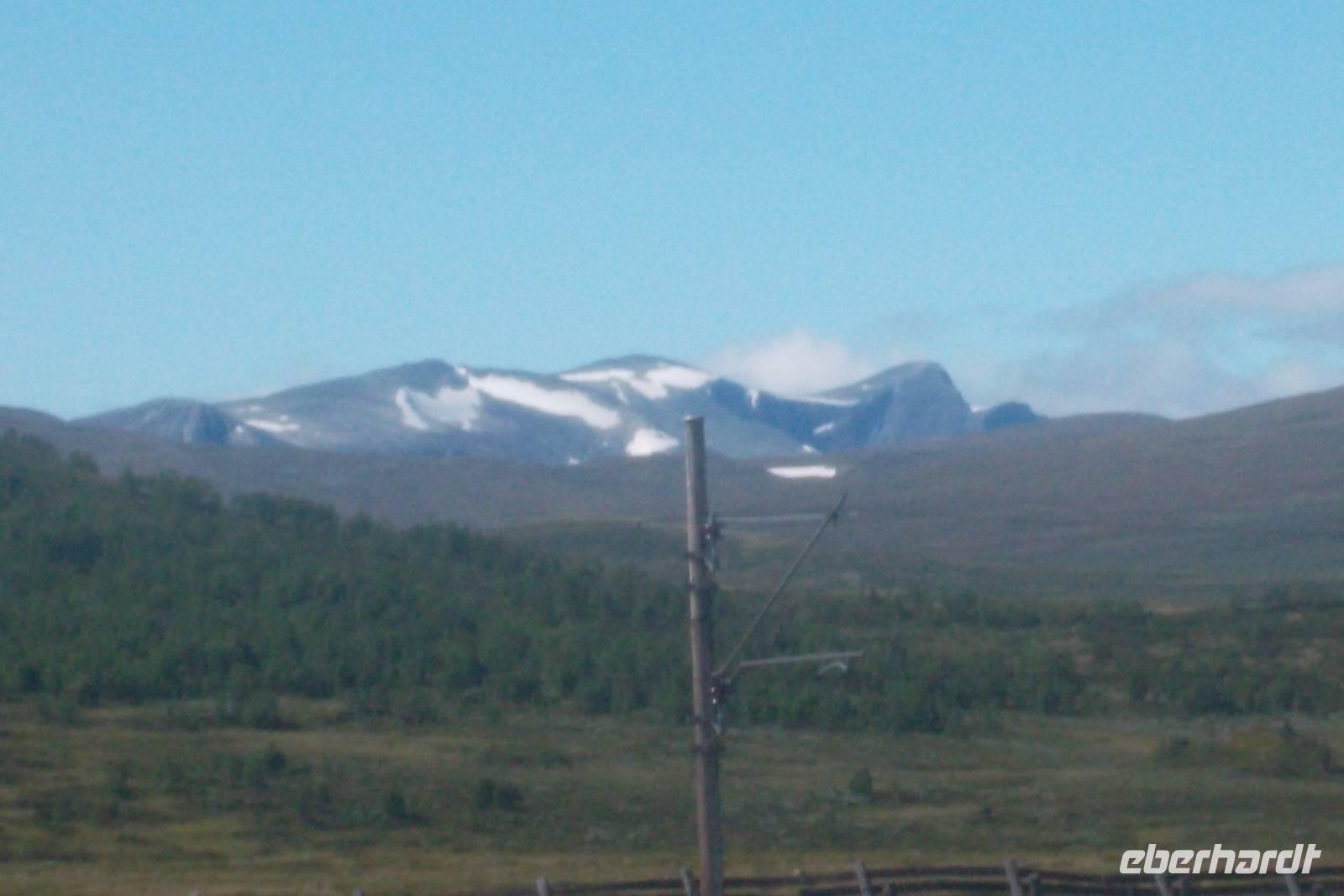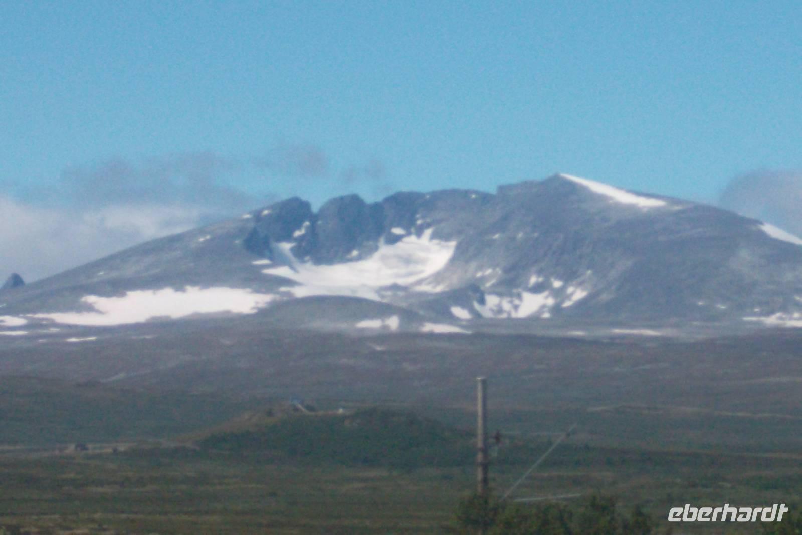 Bei herrlichem Wetter fuhren wir sodann über das Oppdal und das Drivatral zum das Dovrefjell. Hier muss man die Gäste vor den Umtrieben der gefährlichen Trolle warnen - überall hausend sind sie hinterhältig, zauberkräftig und zwischen fünfzig Zentimetern und zwölf Metern groß. Sie sind sehr selten dem Menschen freundlich gesonnen, aber einige - beispielsweise die durchtriebenen weiblichen Huldra - sehen oft hübsch aus, blond und aufreizend und sind sehr durchtrieben. Gefährlich sind alle Trolle, aber etwas Spaß hatten unsere Gäste schon an den Erklärungen und Souvenir-Trolle haben die meisten auch gekauft. Für Norweger aber sind sie wichtig, die Geschichten, Sitten und Gebräuche, die mit den Trollen in ihrem Land zusammenhängen. Die Überquerung des trollgefährdeten Dovrefjells, einer wilden und unwirtlichen Hochfläche, gereichte uns zur Ehre. Wir fanden uns sogar zum Fotostopp nach Dovregubbens Hall ein. Dies ist die Unterkunft des gefährlichsten und wohl auch größten aller Trolle. Da er nicht zu Hause war, konnten wir seine historische Brücke und den ihm zugesprochenen Hof fotografieren. Früher war dieser Ort - Brücke und Gehöft - Bestandteil des historischen Königsweges Trondheim bis Bergen, Stavanger bis Oslo.