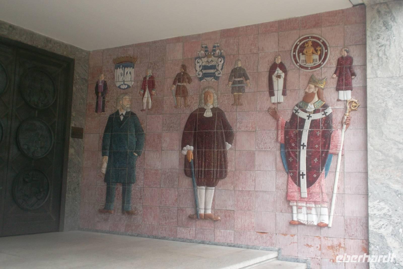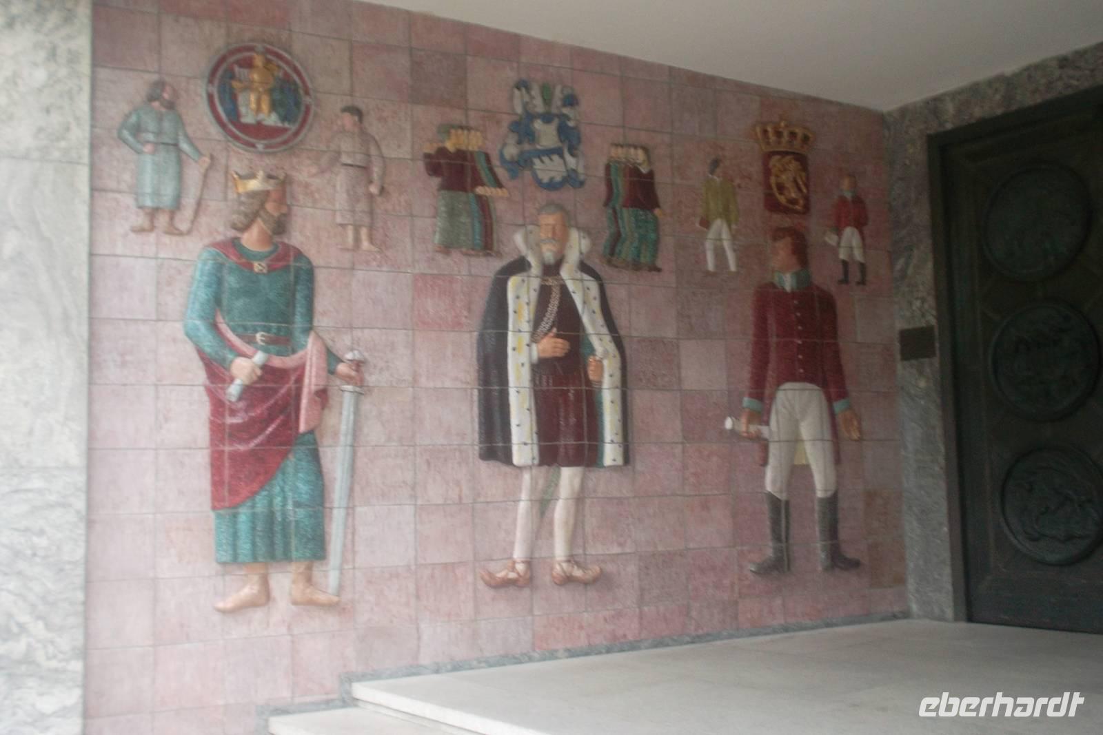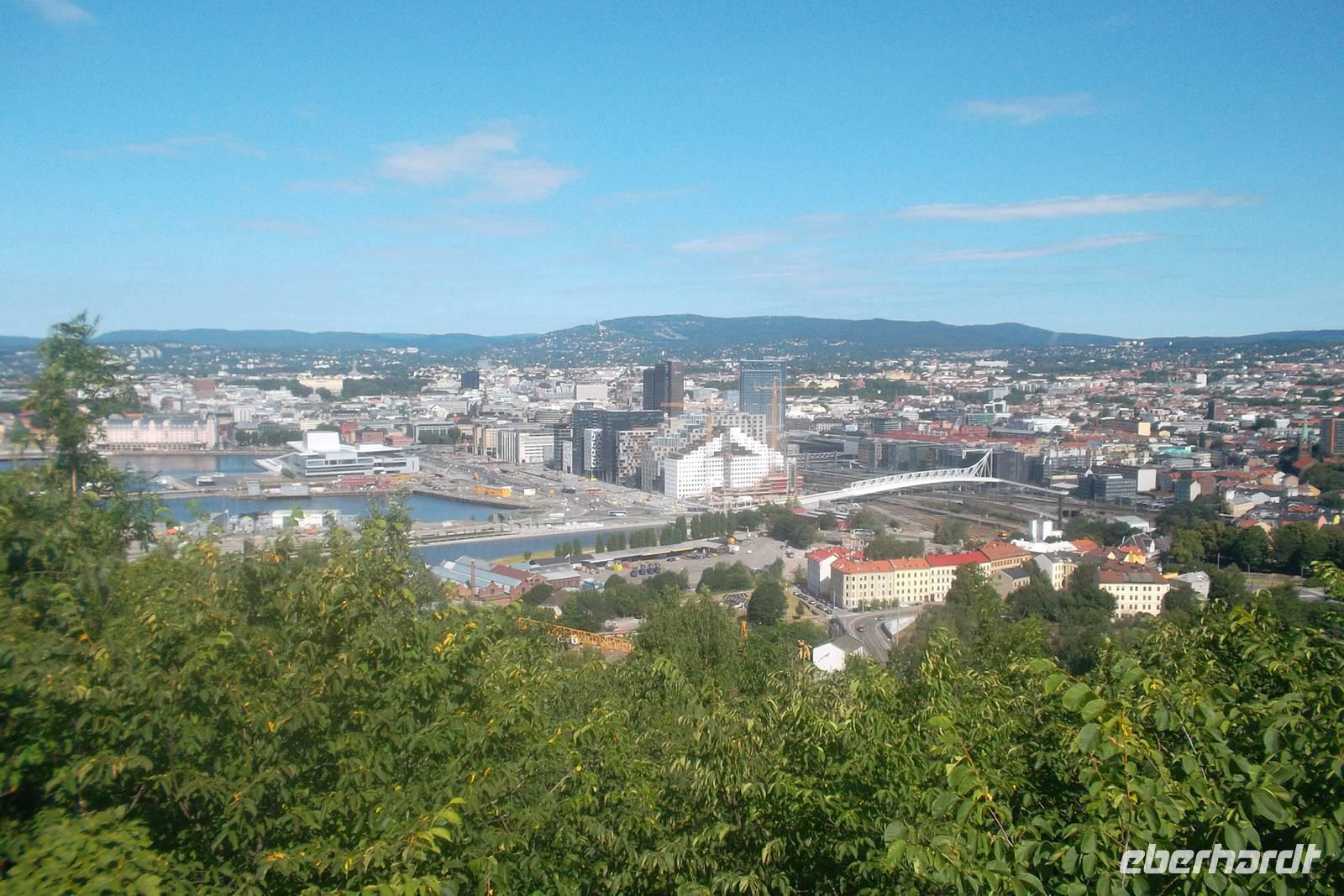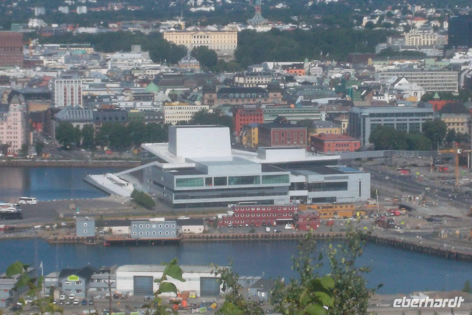 Nach einem Toilettenstopp am Stolz der Norweger-Hauptstadt - der neuen Oper - begrüßten wir Reiseführer Stig Rydland, der uns in Kürze einen Überblick über Oslo gab. Nach dem Besuch eines Aussichtspunktes, der uns „Oslo von oben" zeigte, war es angesagt, mit dem Bus an den wichtigsten Gebäuden, beispielsweise an der Burg åkershus und der steinernen Altstadt vorbeizufahren. 1624 hatte der damals herrschende Dänenkönig Christian IV. im Schutz der Burg einen Neubau in Stein für das gerade abgebrannte Oslo der Holzbauten angeordnet. Die neue Stadt, deren Ort er selbst festgelegt hatte, verfügte er am neuen Standort nur in Stein zu errichten. Er gab dieser neuen norwegischen Hauptstadt seinen Namen und erst 1924 erhielt Christiania ihren ursprünglichen Namen Oslo zurück.