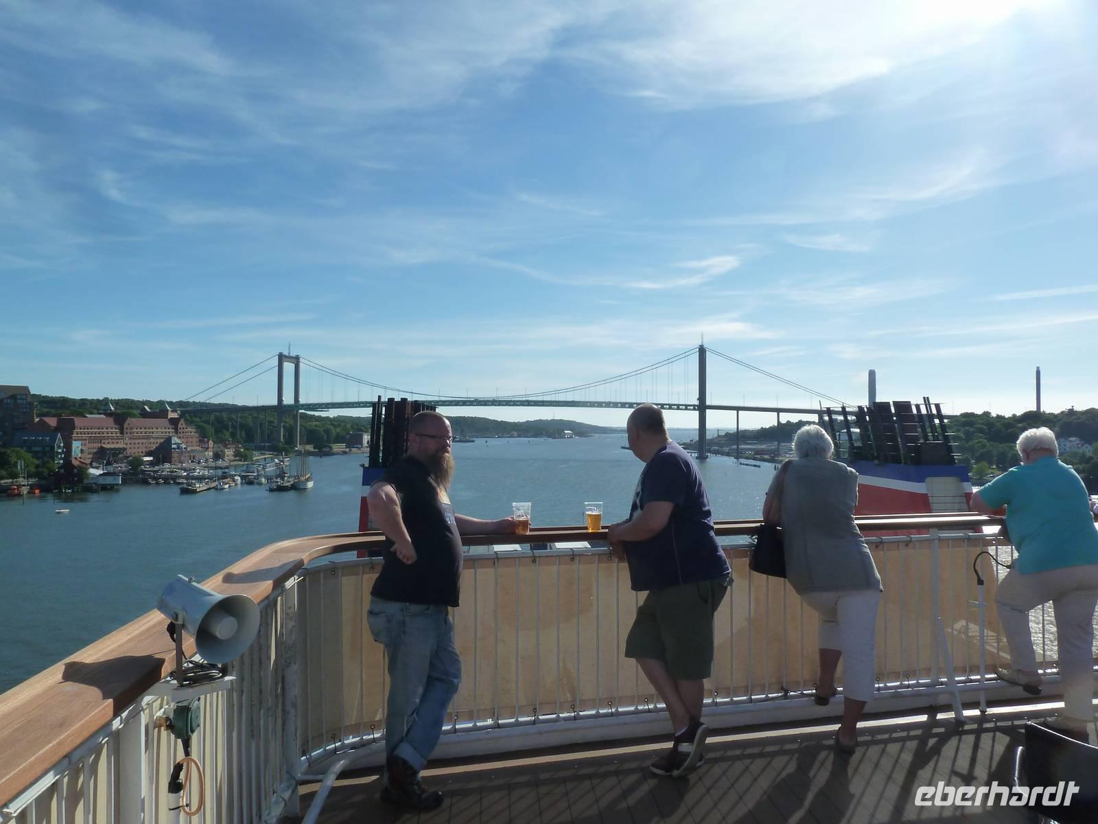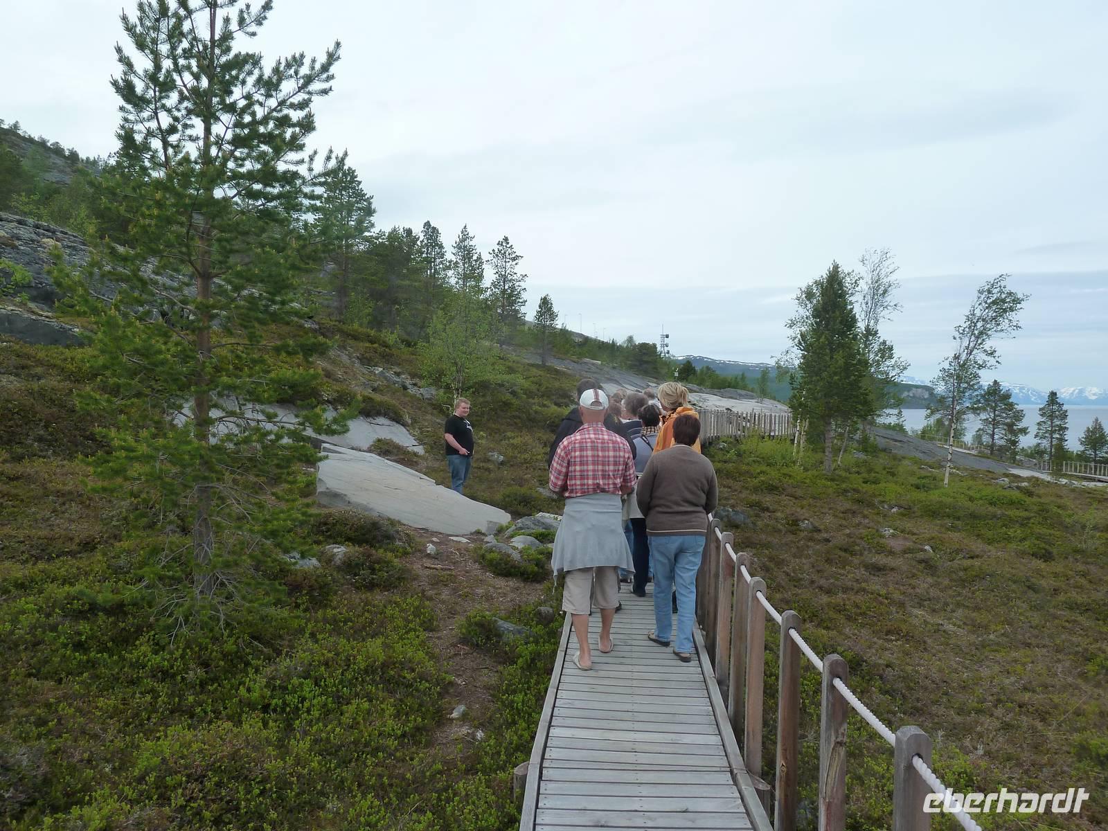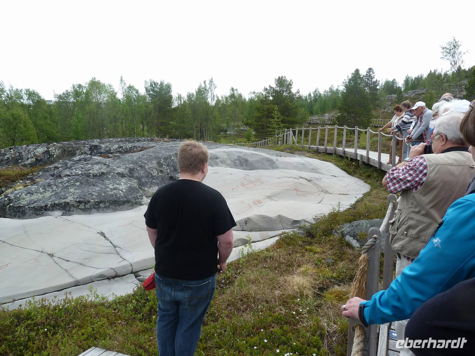 Es ist eine der längsten, aber auch eine der schönsten Reisen in unserem Programm, zu der wir uns da aufmachten. Am Ende des ersten Tages steht die Einschiffung auf dem Fährschiff Stena Scandinavica, doch auf dem Weg dorthin ergibt sich die Gelegenheit in der Nähe von Fehrbellin jenen Ort aufzusuchen, wo die Vormachtstellung Schwedens im nördlichen Mitteleuropa ihr Ende fand und der Aufstieg Brandenburg-Preussens zur Großmacht begann -ein guter thematischer Einstieg in die wechselvolle Geschichte Skandinaviens. Für einen kleinen Stadtbummel in Kiel blieb auch noch Zeit, bevor die Überfahrt mit einem opulenten nordischen Büffet begann, das keine Wünsche übrigließ. Neben Erfrischungsgetränken waren sogar Bier und Wein inklusive. Auf der Fahrt durch die Kieler Förde passiert man das eindrucksvolle U-Boot-Denkmal in Laboe. Die Unermüdlichen blieben sogar bis Mitternacht auf, um die Unterquerung der gewaltigen Belt-Brücke zu erleben. Am darauffolgenden Morgen begrüßten uns die Schären von Göteborg. Bevor wir die bedeutende Hafenstadt verließen, machten wir noch einen Abstecher zur berühmten Mastkyrka, von deren Felsen früher die Eichenstämme herabgerollt wurden, um ihre Festigkeit zu testen. Auf der Fahrt quer durch Südschweden hinüber nach Stockholm besuchten wir den Runenstein von Rök, mit der längsten bisher bekannten Runeninschrift der Welt und warfen so den ersten Blick in die Wikingerzeit. Am Göta-Kanal gibt es eine Schleusentreppe, die ein technisches Meisterwerk des 19. Jahrhunderts darstellt und heute wegen ihrer reizvollen Lage ein beliebtes Ausflugsziel ist. Im Hotel warteten schon die Fluggäste und der Stammfahrer Günther, der mit uns die große Runde machte und angesichts der langen Tagesetappen auf manchmal recht schmalen Straßen Beträchtliches zu leisten hatte, auf uns.