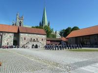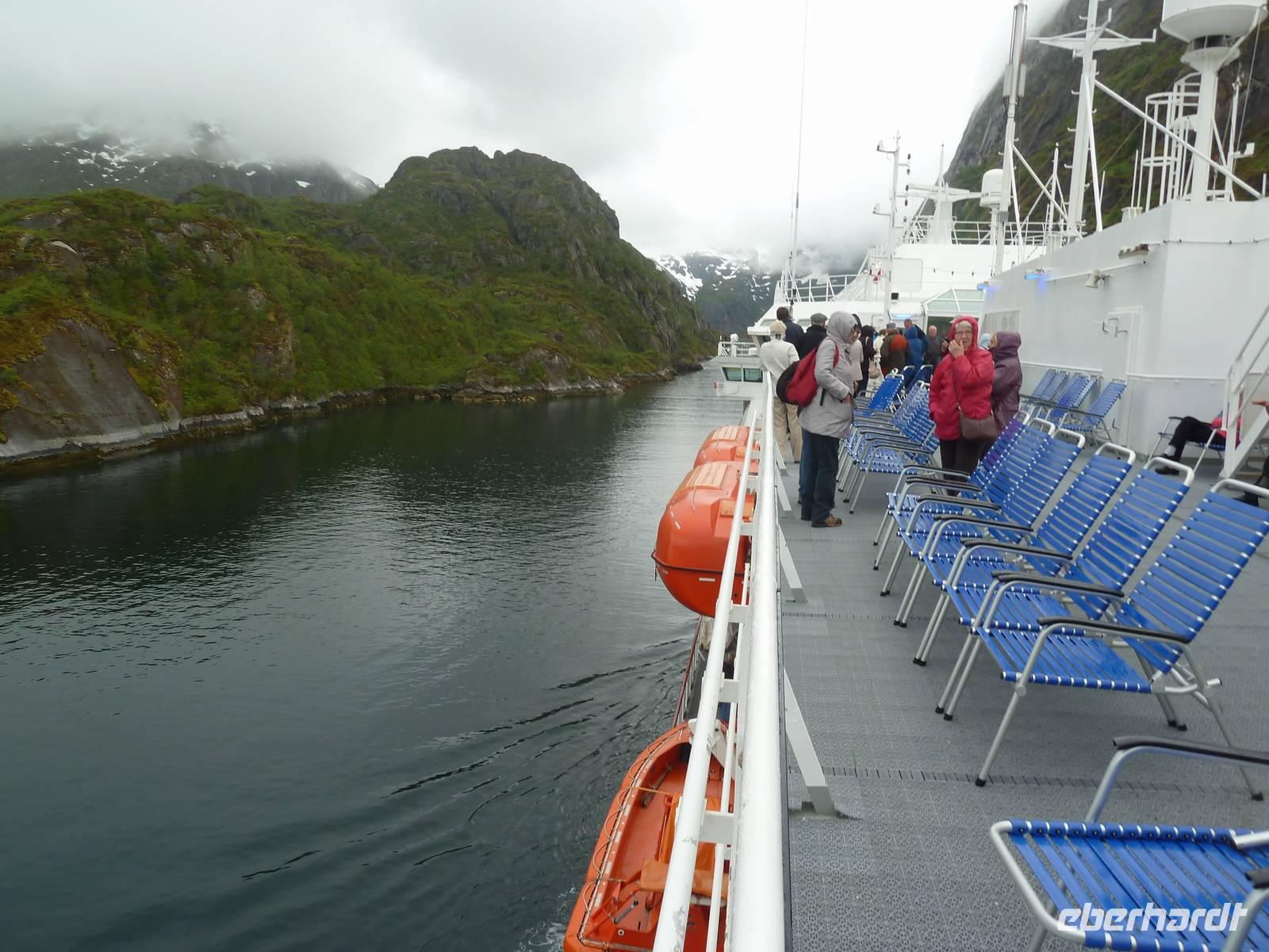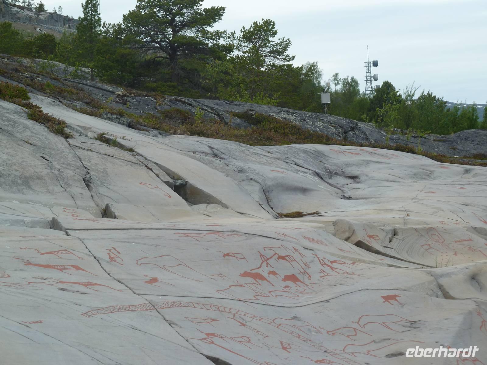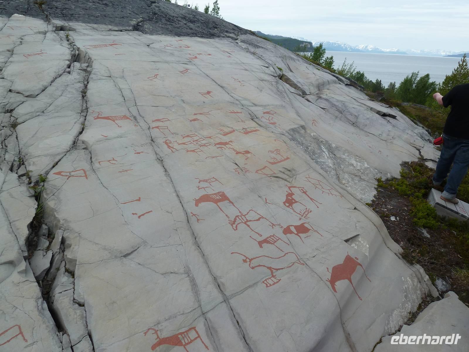 Es ist eine der längsten, aber auch eine der schönsten Reisen in unserem Programm, zu der wir uns da aufmachten. Am Ende des ersten Tages steht die Einschiffung auf dem Fährschiff Stena Scandinavica, doch auf dem Weg dorthin ergibt sich die Gelegenheit in der Nähe von Fehrbellin jenen Ort aufzusuchen, wo die Vormachtstellung Schwedens im nördlichen Mitteleuropa ihr Ende fand und der Aufstieg Brandenburg-Preussens zur Großmacht begann -ein guter thematischer Einstieg in die wechselvolle Geschichte Skandinaviens. Für einen kleinen Stadtbummel in Kiel blieb auch noch Zeit, bevor die Überfahrt mit einem opulenten nordischen Büffet begann, das keine Wünsche übrigließ. Neben Erfrischungsgetränken waren sogar Bier und Wein inklusive. Auf der Fahrt durch die Kieler Förde passiert man das eindrucksvolle U-Boot-Denkmal in Laboe. Die Unermüdlichen blieben sogar bis Mitternacht auf, um die Unterquerung der gewaltigen Belt-Brücke zu erleben. Am darauffolgenden Morgen begrüßten uns die Schären von Göteborg. Bevor wir die bedeutende Hafenstadt verließen, machten wir noch einen Abstecher zur berühmten Mastkyrka, von deren Felsen früher die Eichenstämme herabgerollt wurden, um ihre Festigkeit zu testen. Auf der Fahrt quer durch Südschweden hinüber nach Stockholm besuchten wir den Runenstein von Rök, mit der längsten bisher bekannten Runeninschrift der Welt und warfen so den ersten Blick in die Wikingerzeit. Am Göta-Kanal gibt es eine Schleusentreppe, die ein technisches Meisterwerk des 19. Jahrhunderts darstellt und heute wegen ihrer reizvollen Lage ein beliebtes Ausflugsziel ist. Im Hotel warteten schon die Fluggäste und der Stammfahrer Günther, der mit uns die große Runde machte und angesichts der langen Tagesetappen auf manchmal recht schmalen Straßen Beträchtliches zu leisten hatte, auf uns.