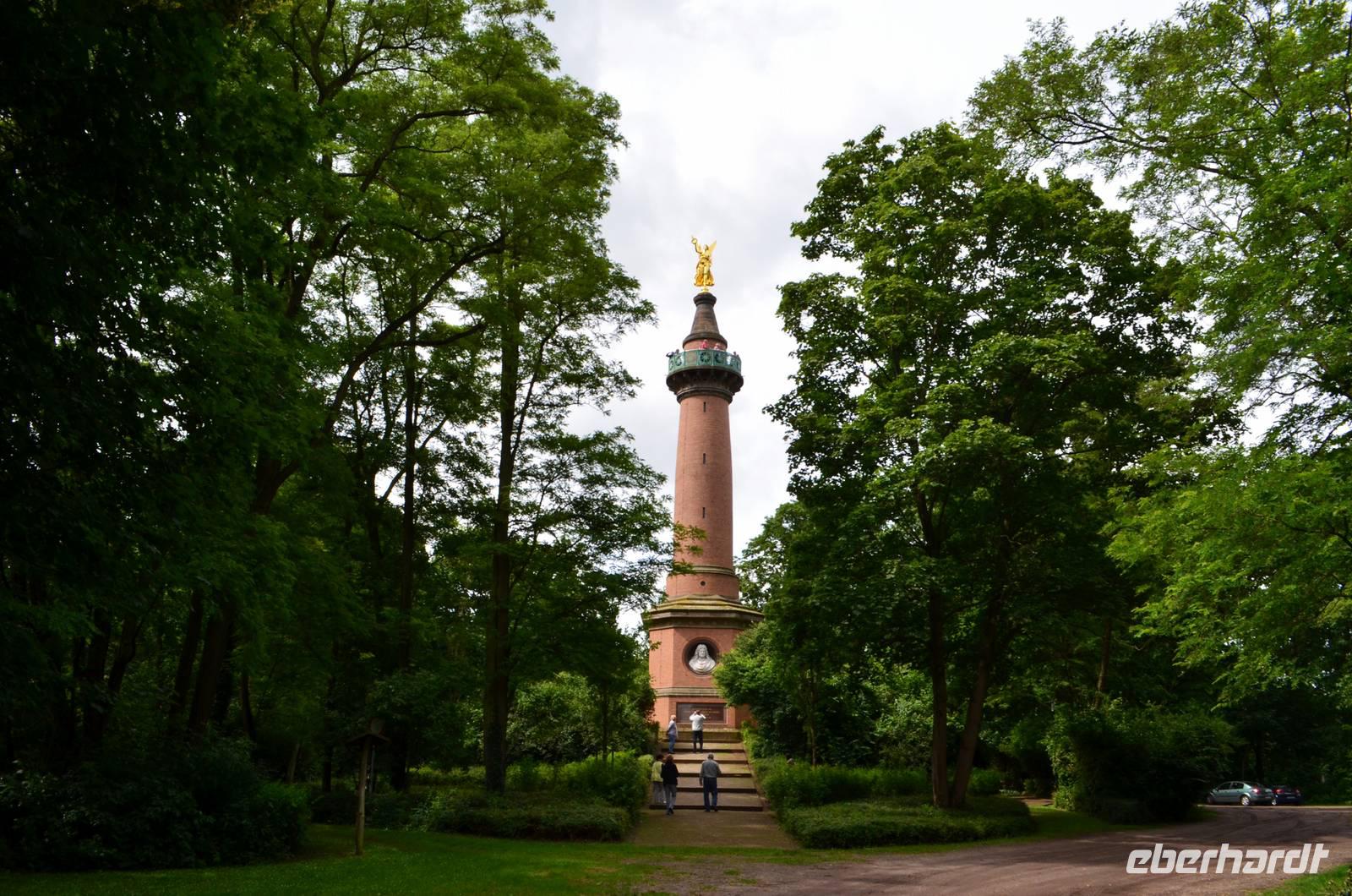 Unser erstes Ziel an der Strecke sind das Kleine und das Große Denkmal in Hakenberg. Dahin machen wir den ersten Abstecher - hin zum Denkmal des alten Kurfürsten Friedrich Wilhelm dem Großen von Brandenburg. Er hat hier 1675 mit seinen Truppen in der „Schlacht von Fehrbellin" die Schweden geschlagen, die in seinem Land plünderten. Wir klettern auf die Aussicht im Denkmal und genießen den schönen Ausblick bei herrlichem Sonnenschein ins brandenburgische Land.