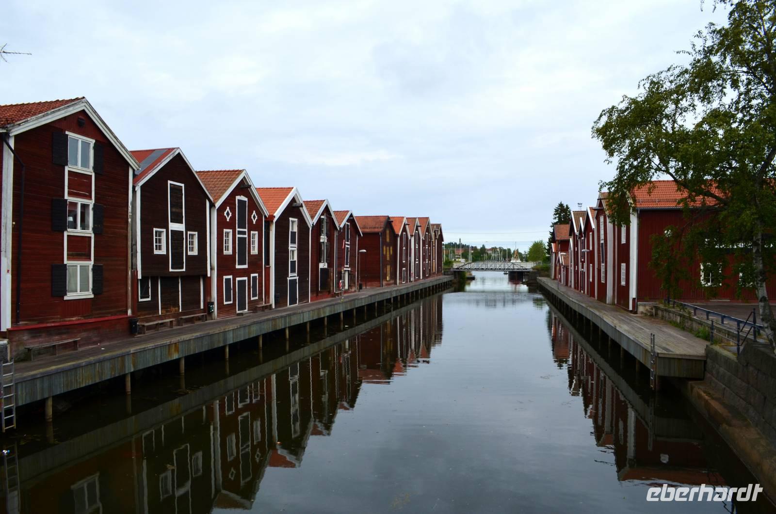 Dann stärken wir uns noch und am Nachmittag beginnt die Weiterfahrt entlang der schwedischen Ostseeküste nach Norden, vorbei an Uppsala, hinauf zum Städtchen Hudiksvall, mit den historischen Speichern und weiter nach Sundsvall, der Stadt mit den Drachen über den Hauseingängen, die gleichzeitig unser Tagesziel ist. Gewaltige Betriebe der Holzverarbeitung und der Papierindustrie prägen die trotzdem schöne Umgebung der Stadt.