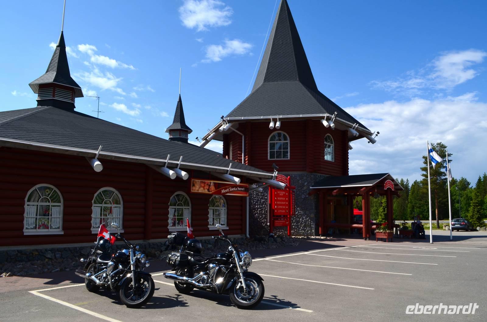 Der Tag beginnt wieder sonnig. Wir fahren durch Wälder mit zahllosen Mooren, Seen und Flüssen. Hoffen die ersten Rentierherden der Sami zu entdecken. Erster Halt ist am großen Einkaufspark der Stadt Tornio, direkt an der schwedisch-finnischen Grenze. Von hier geht es mittags weiter in den Norden hinauf. Schließlich treffen wir bei Rovaniemi auf den Polarkreis und das Weihnachtsdorf, wo beim Weihnachtsmann erste Vorbereitungen und Überraschungen für das Fest am Jahresende getroffen werden.