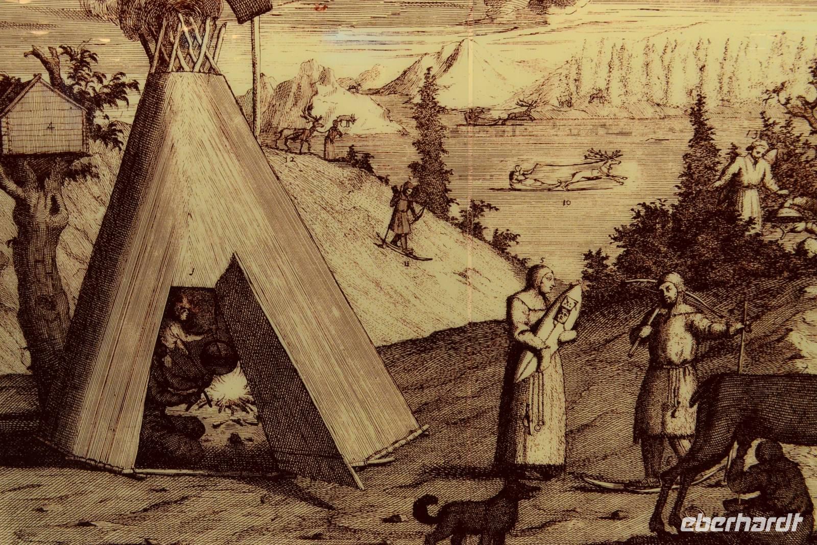 Heute fahren wir hinein in die Tundra Finnlands. Mitten darin, eingebettet in dichte Birken- und Kiefernwälder, der riesige Inarisee. Wir machen einen Fotostopp am drittgrößten See Finnlands und fahren dann zur Bärenhöhle weiter. Natürlich kraxeln wir alle bis hinauf auf die Aussicht. Schließlich erreichen wir mittags die Stadt Inari, die finnische Samihauptstadt, wo wir das wirklich sehenswerte Siida-Museum besuchen. Die Natur des Nordens, die Geschichte und das Leben der Sami werden uns hier nahegebracht.