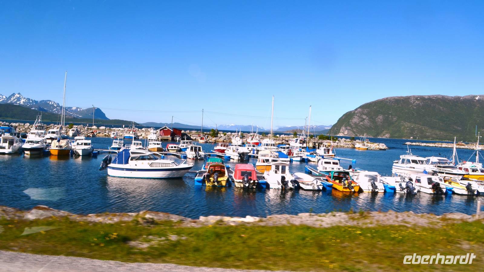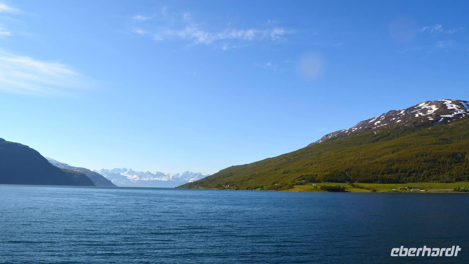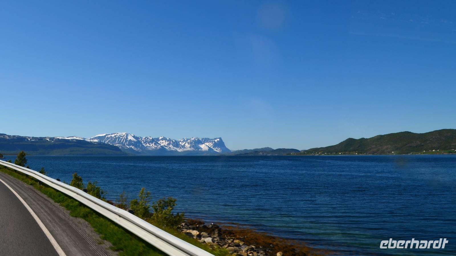 Weiter geht es, das romantische Saltdalen hinauf und über das noch mit viel Schnee bedeckte Saltfjell mit dem norwegischen Polarkreiszentrum. Nach einem gemeinsame „Skol" mit eberhardt-Sekt lassen wir kurz das im hohen Norden erlebte Revue passieren. Wieder vom Fjell hinab gelangen wir nach Mo i Rana. Hier nimmt uns das Hotel Meyergarden gastfreundlich auf. Einige besuchen noch den Heymannen im Fjord.