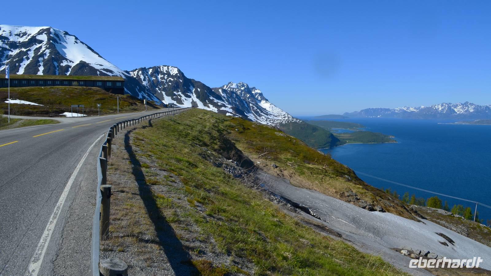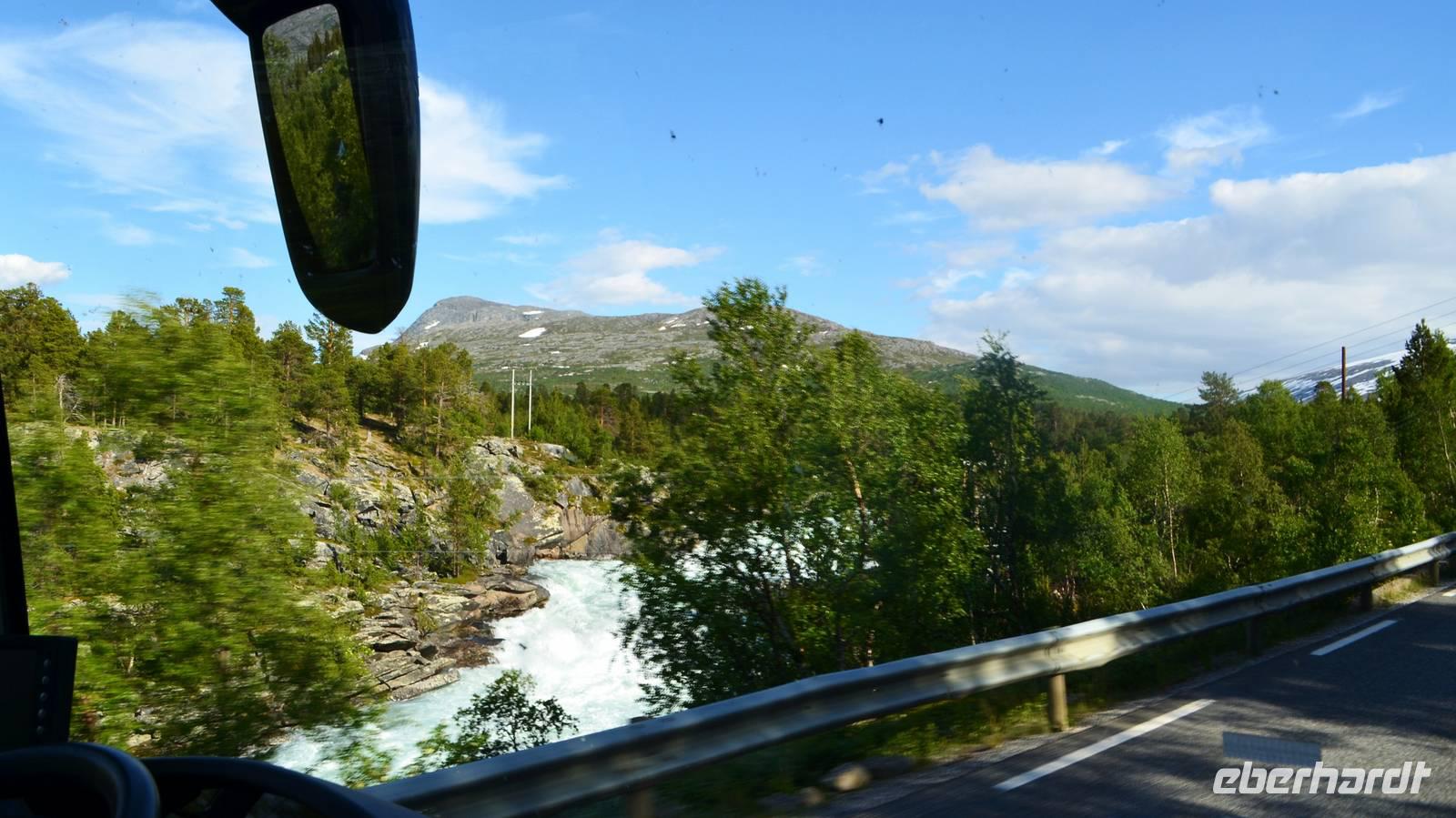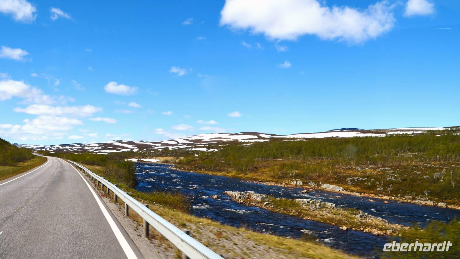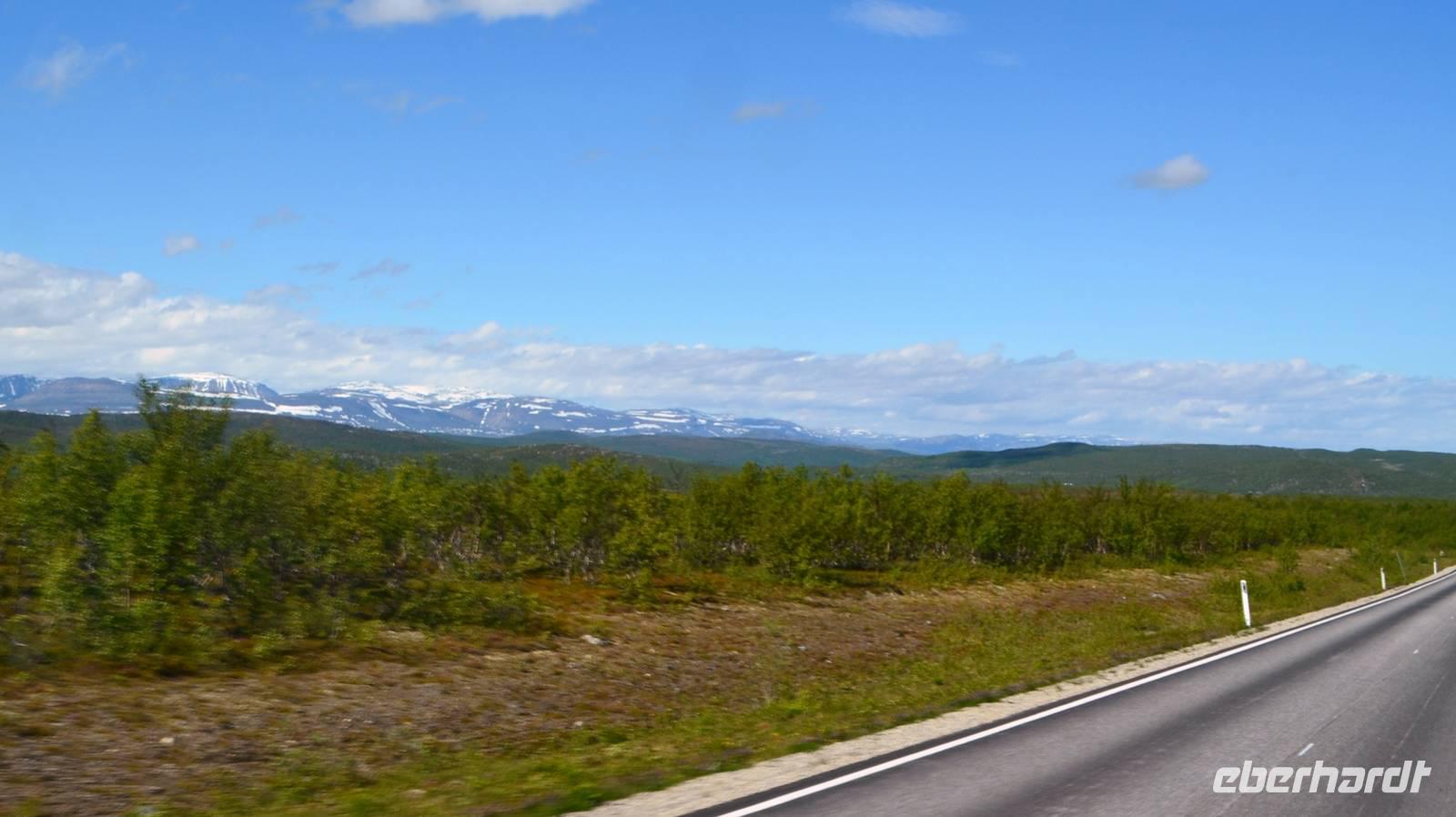 Weiter geht es, das romantische Saltdalen hinauf und über das noch mit viel Schnee bedeckte Saltfjell mit dem norwegischen Polarkreiszentrum. Nach einem gemeinsame „Skol" mit eberhardt-Sekt lassen wir kurz das im hohen Norden erlebte Revue passieren. Wieder vom Fjell hinab gelangen wir nach Mo i Rana. Hier nimmt uns das Hotel Meyergarden gastfreundlich auf. Einige besuchen noch den Heymannen im Fjord.