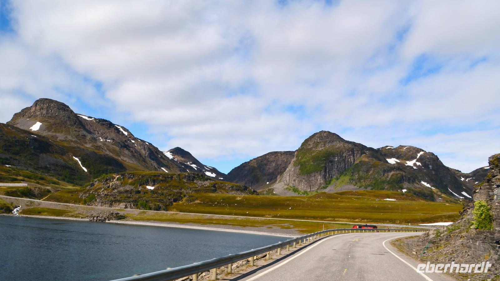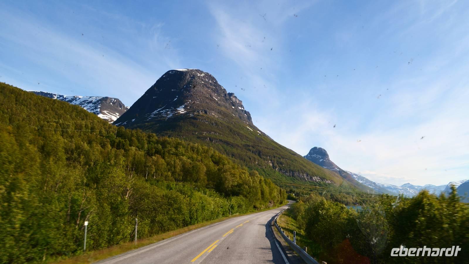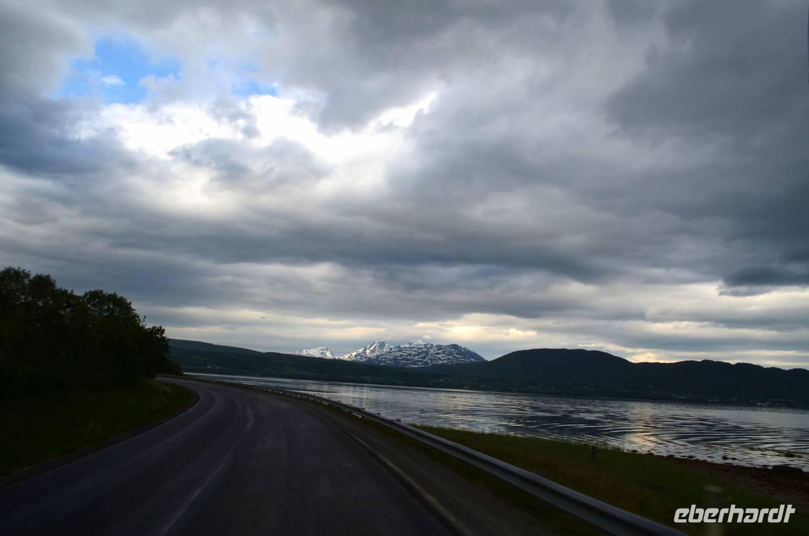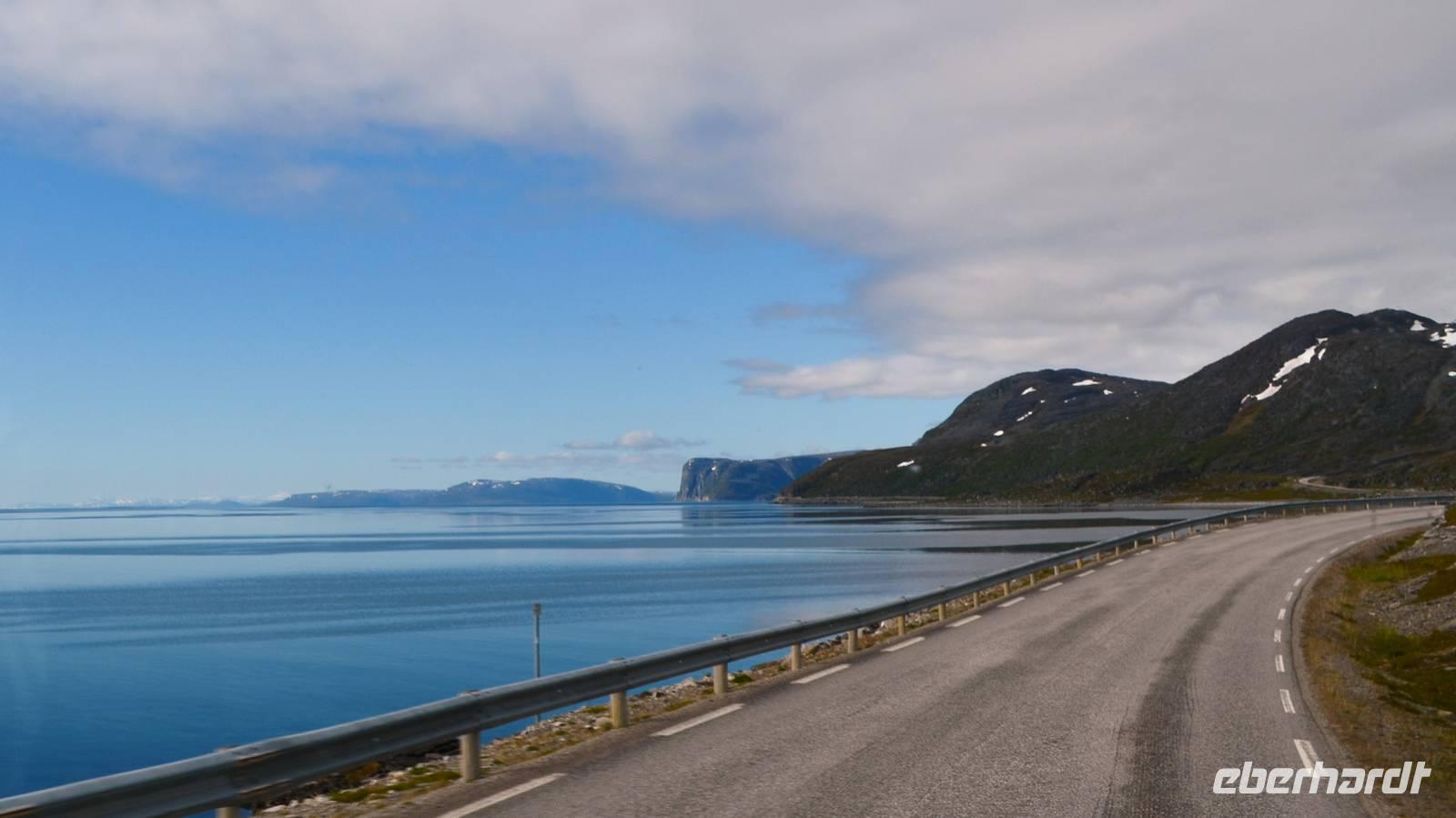 Später, ganz im Norden angekommen, erreichen wir die ersten hohen Berge und den Porsangerfjord.