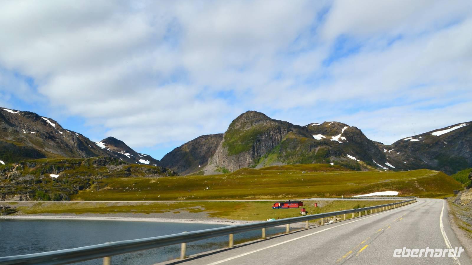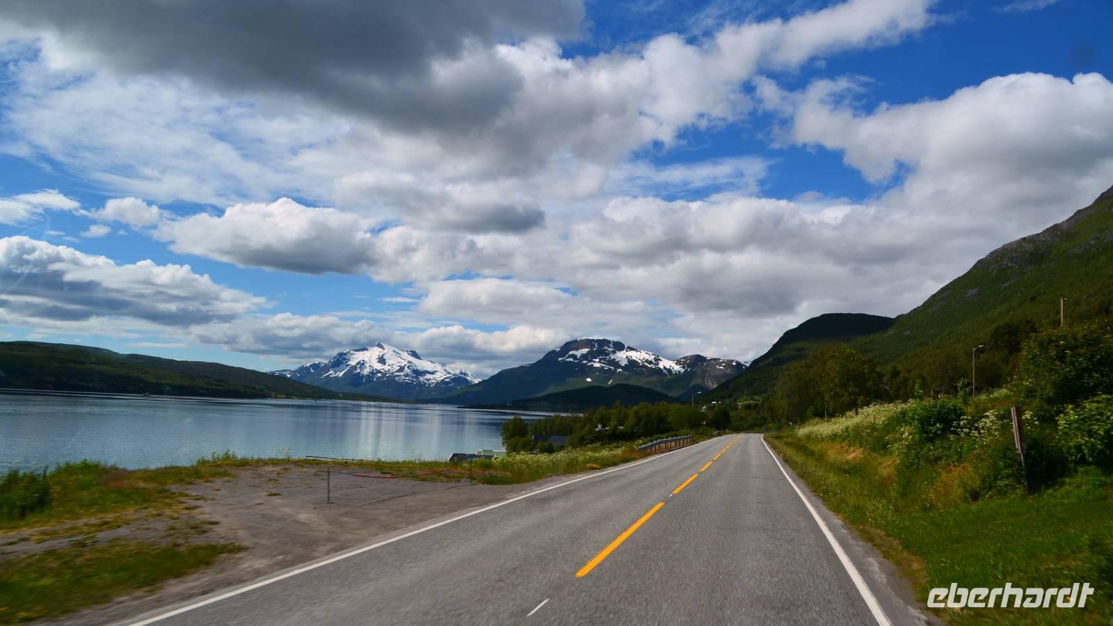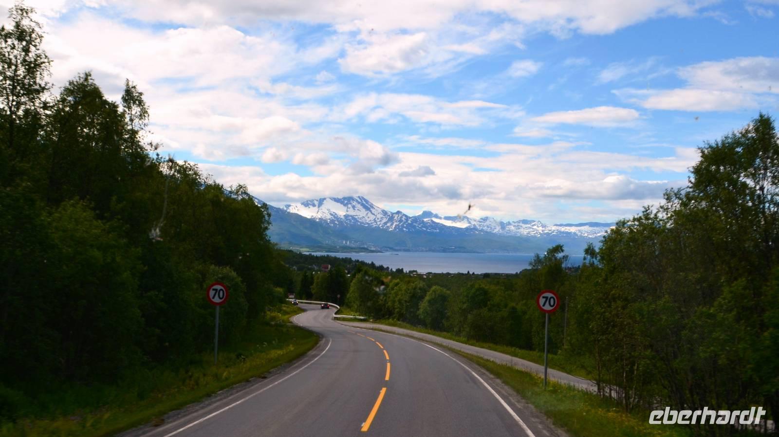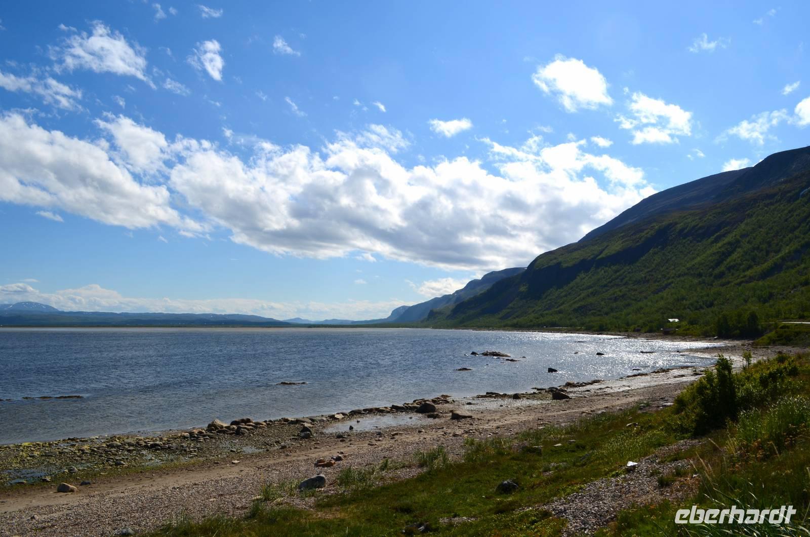 Später, ganz im Norden angekommen, erreichen wir die ersten hohen Berge und den Porsangerfjord.