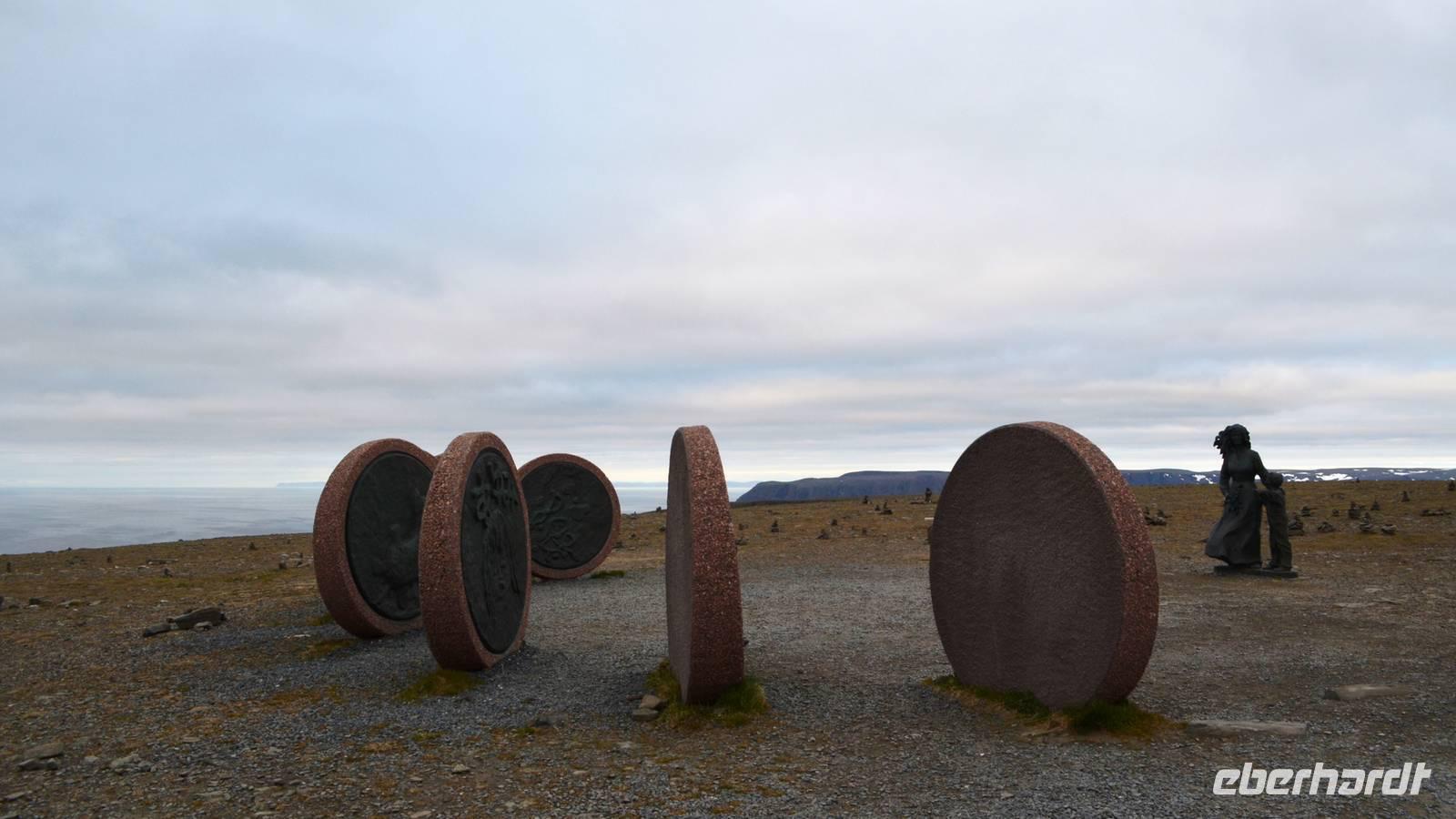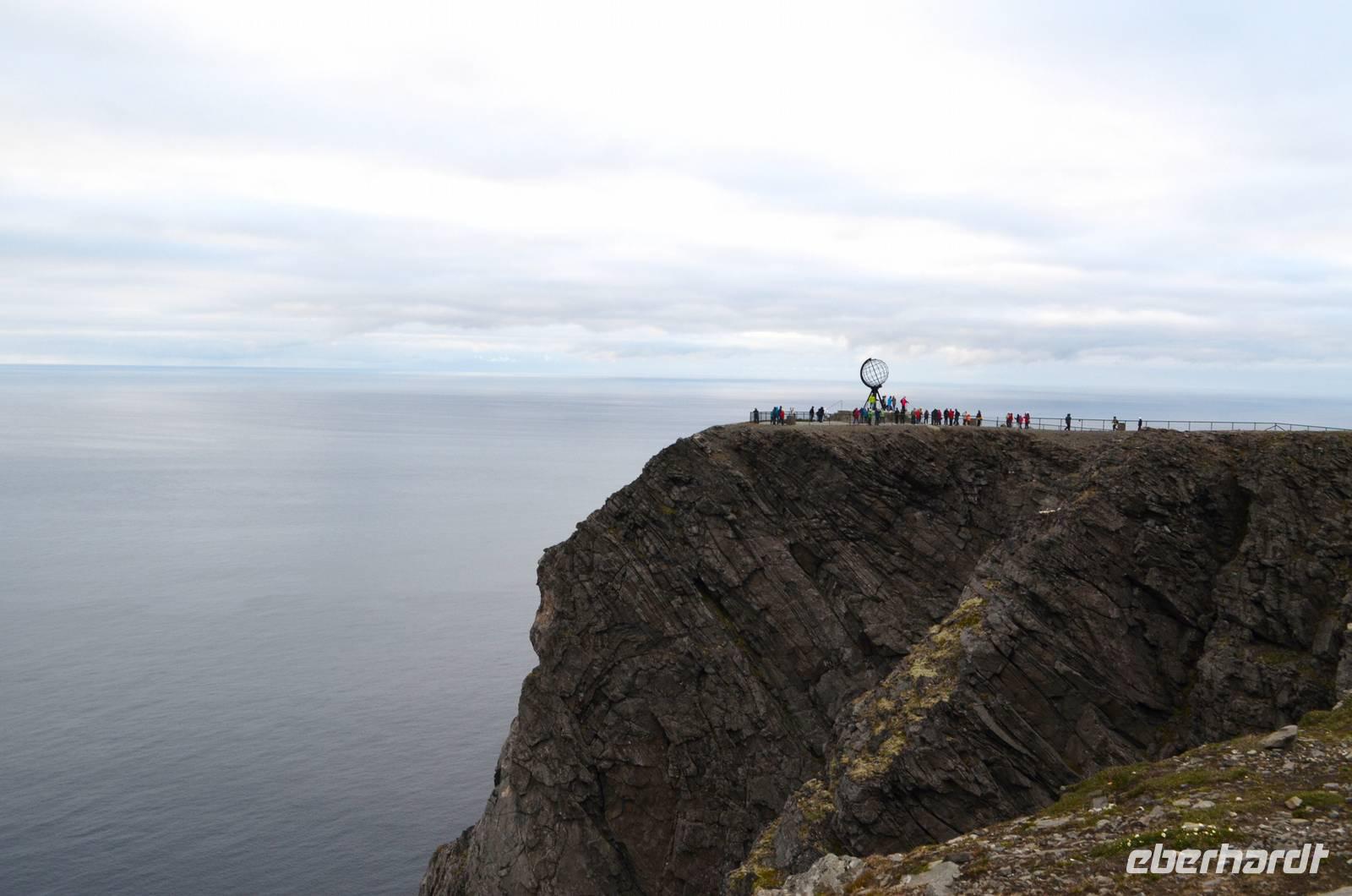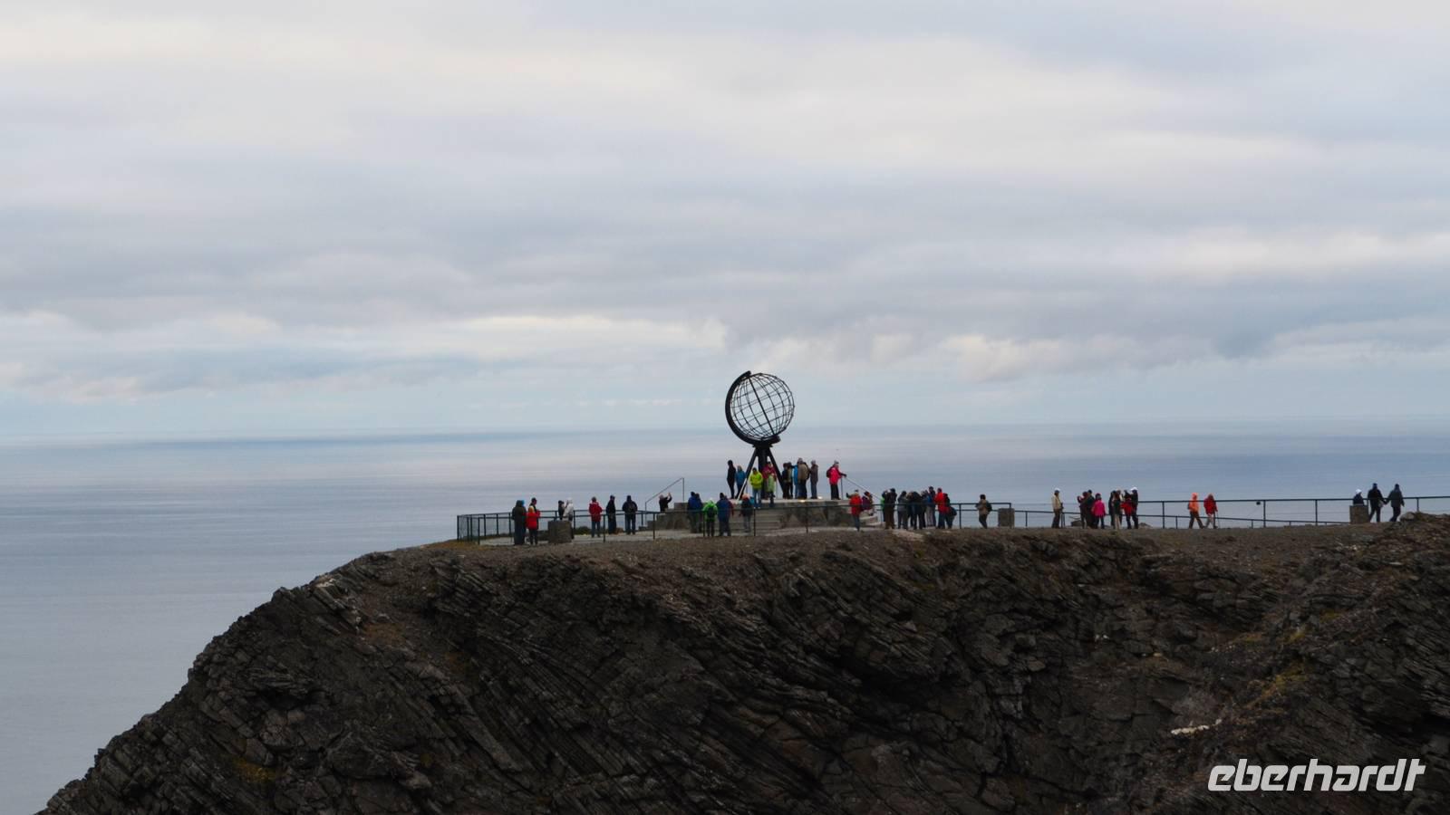 Es ist 21 Uhr und 50 Minuten als unser Bus, jetzt mit dem polnischen Fahrer Pavel vom Nordkapservice, die Hochfläche der Insel erreicht. Und die Sonne scheint noch, die Buchten spiegeln das Licht und wir fotografieren das Nordkaphorn. Über dem Nordkap aber eine dichte Wolkendecke.